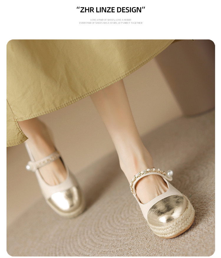 【珍珠饰扣】百搭玛丽珍鞋厚底渔夫鞋女夏季浅口单鞋女士单鞋女鞋 920000