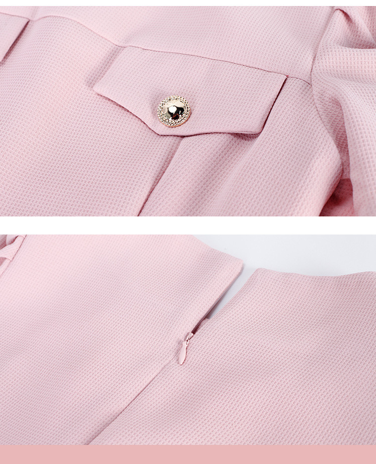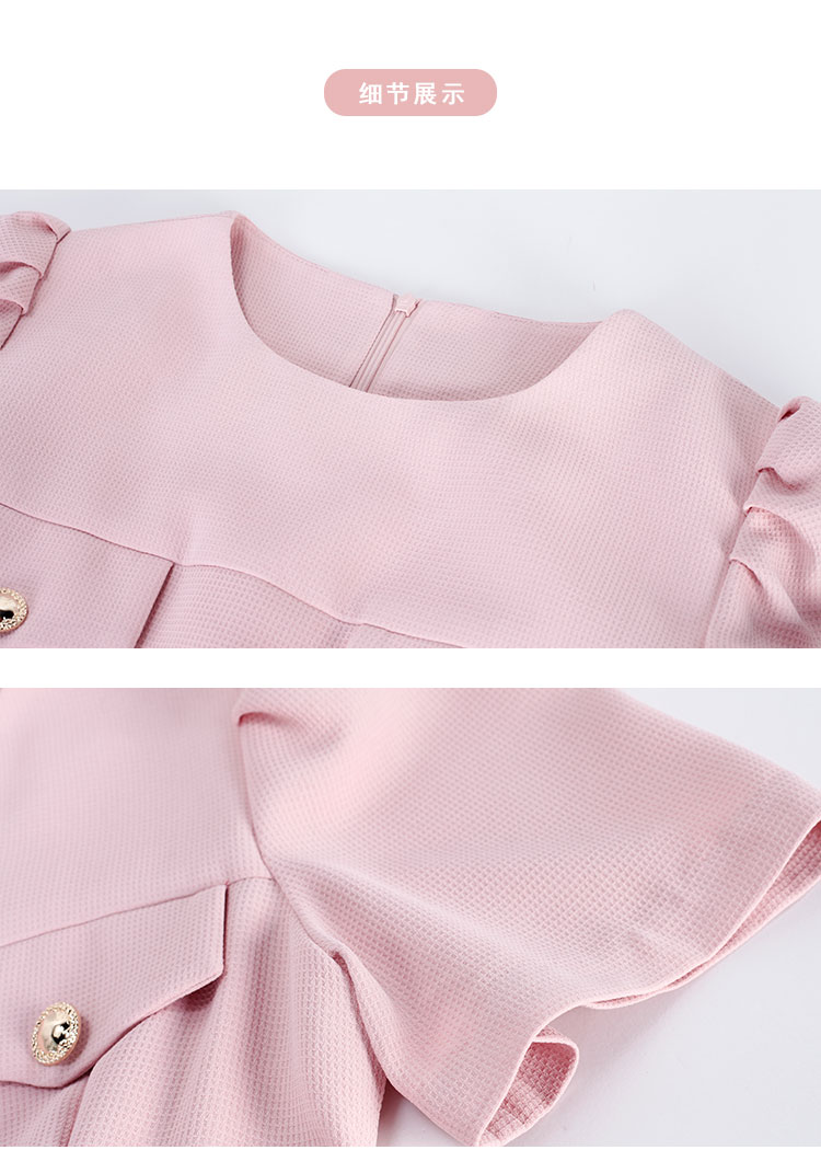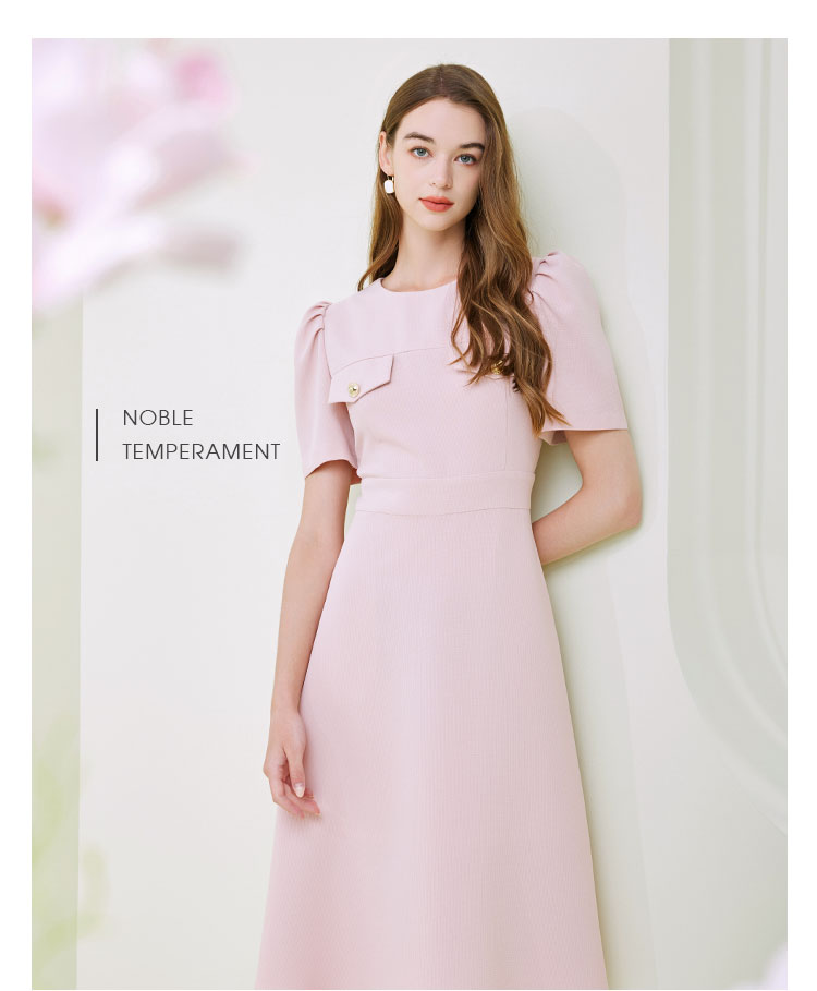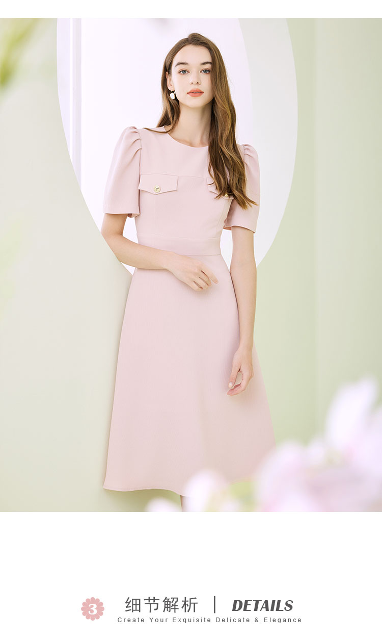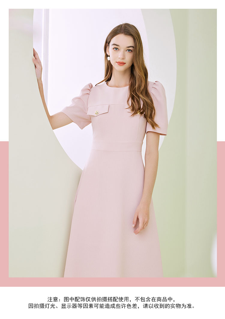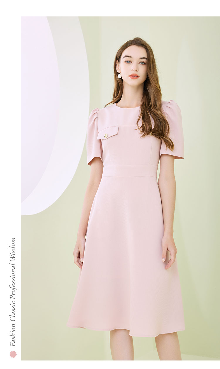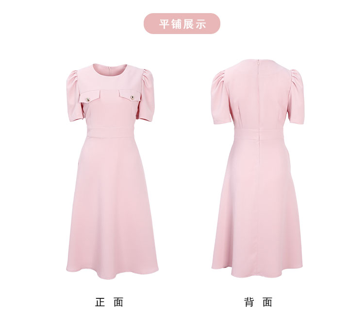 商品名称:圆领装饰口袋收腰大摆中长裙OL风春夏连衣裙 609695