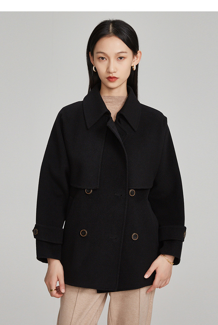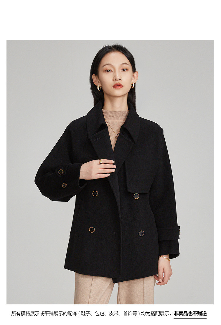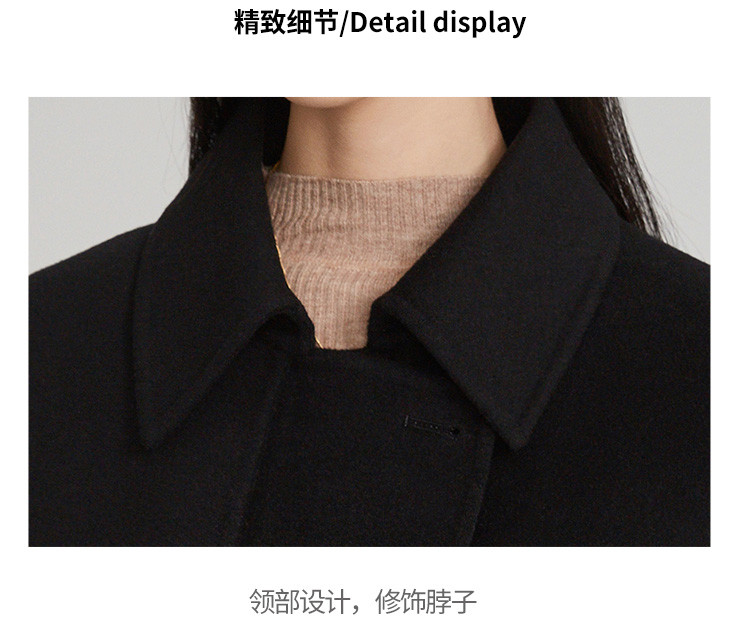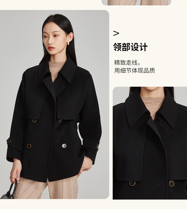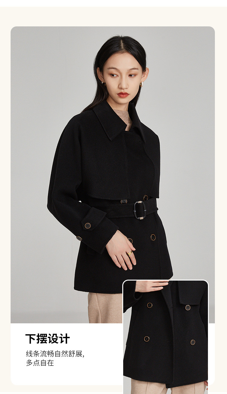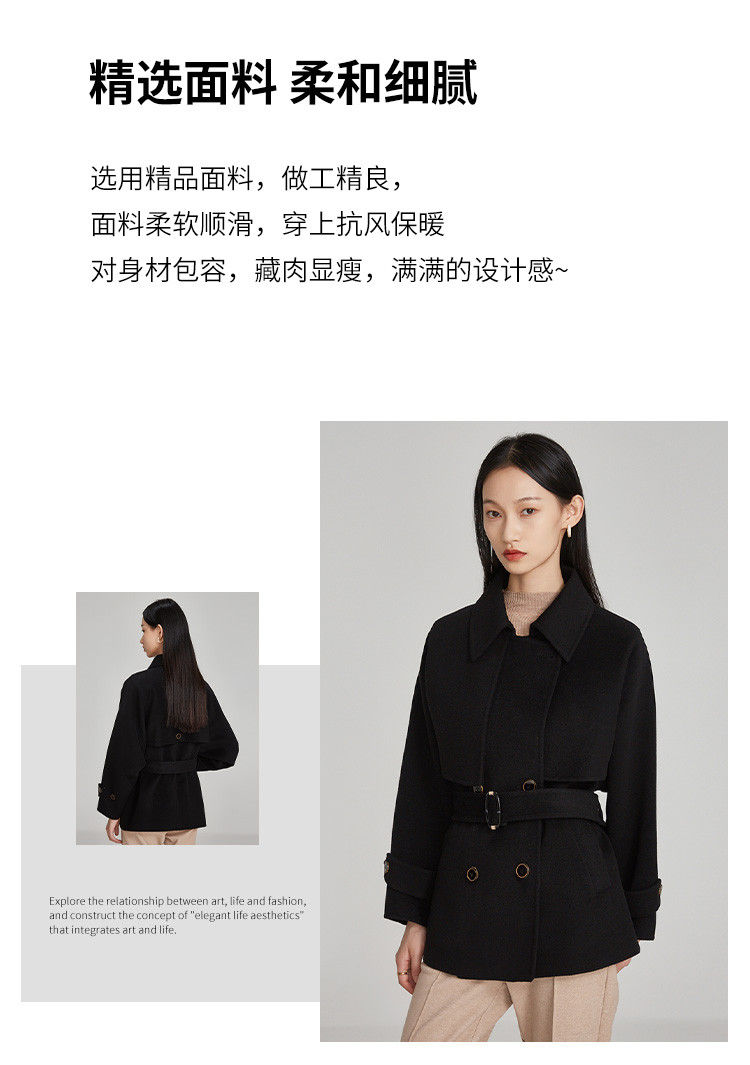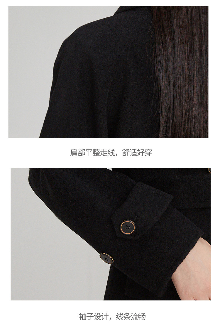 商品名称:春秋小个子时尚休闲系带羊毛大衣女式中长款双面呢外套 943071