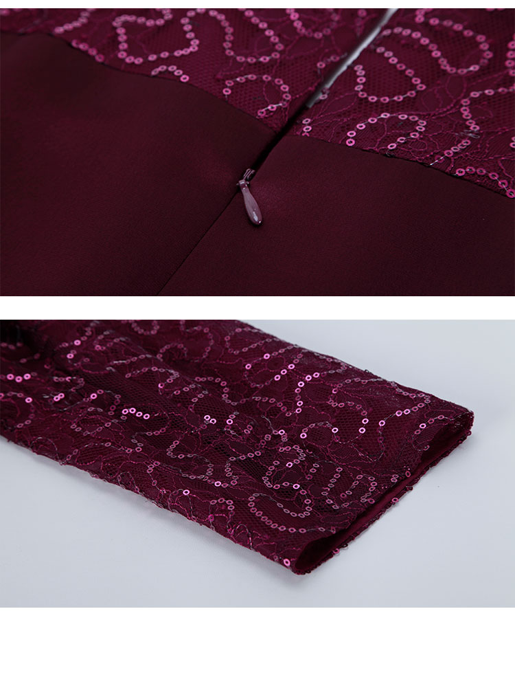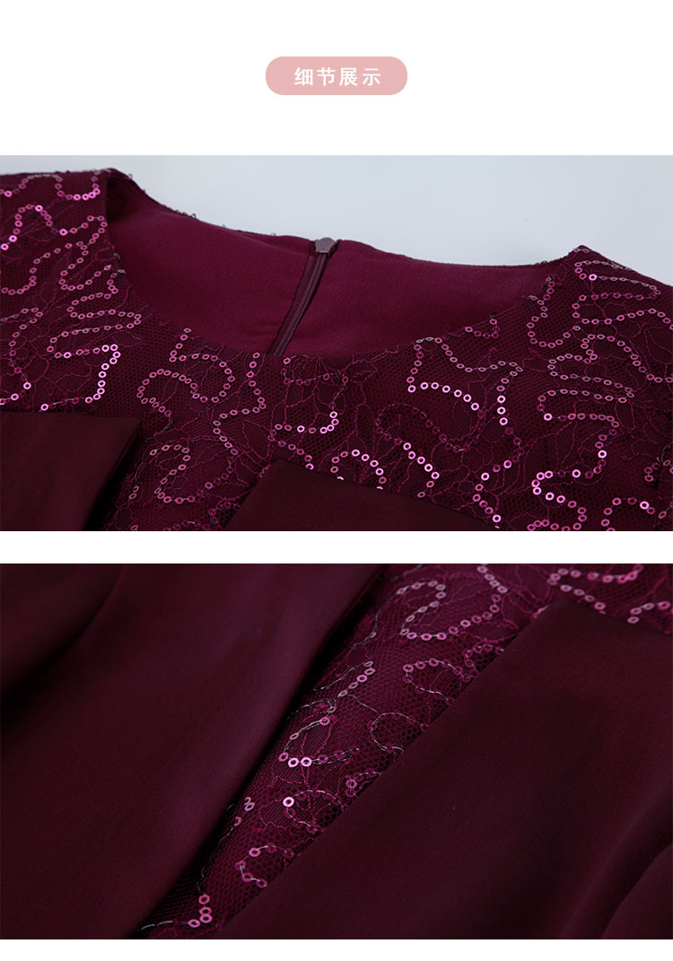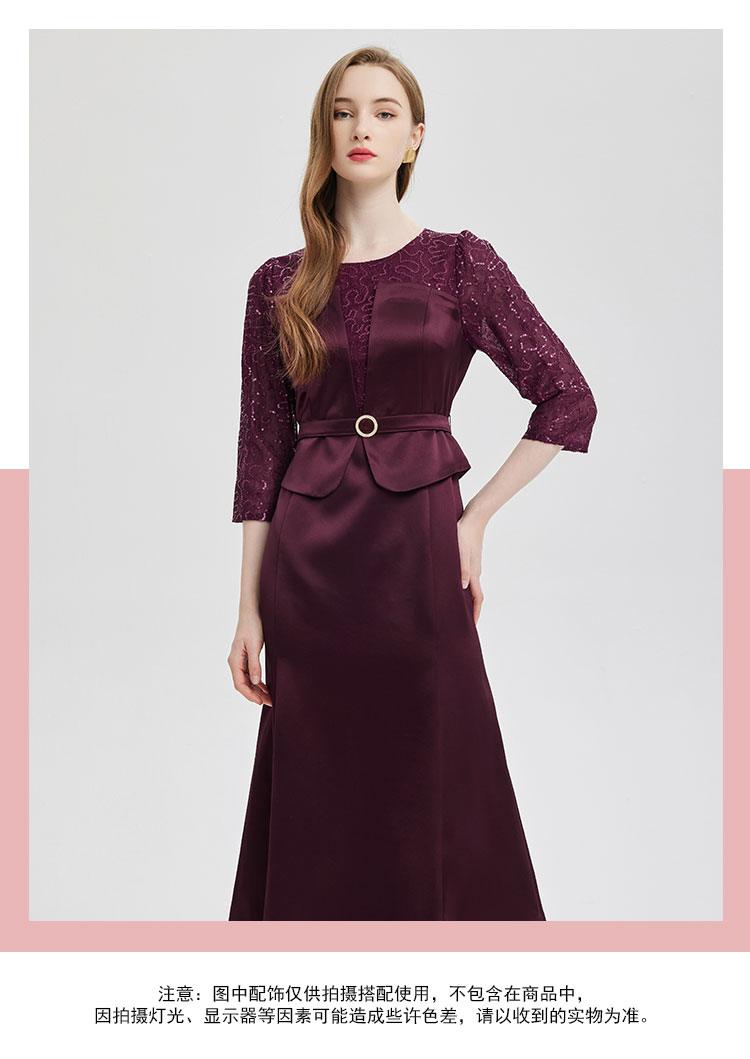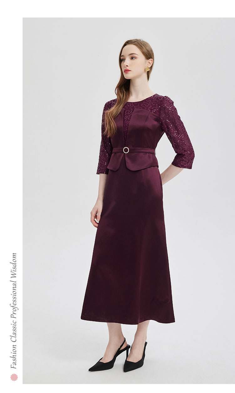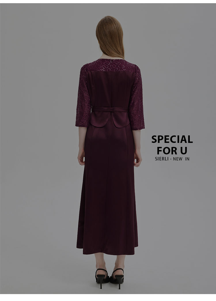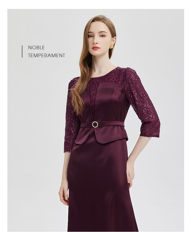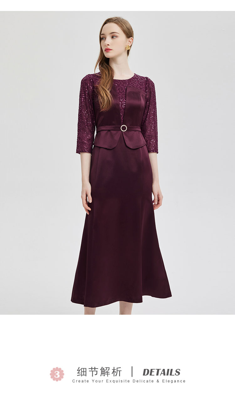 2024法式浪漫拼接蕾丝假两件式七分袖奢华简约高级礼服连衣裙 119455