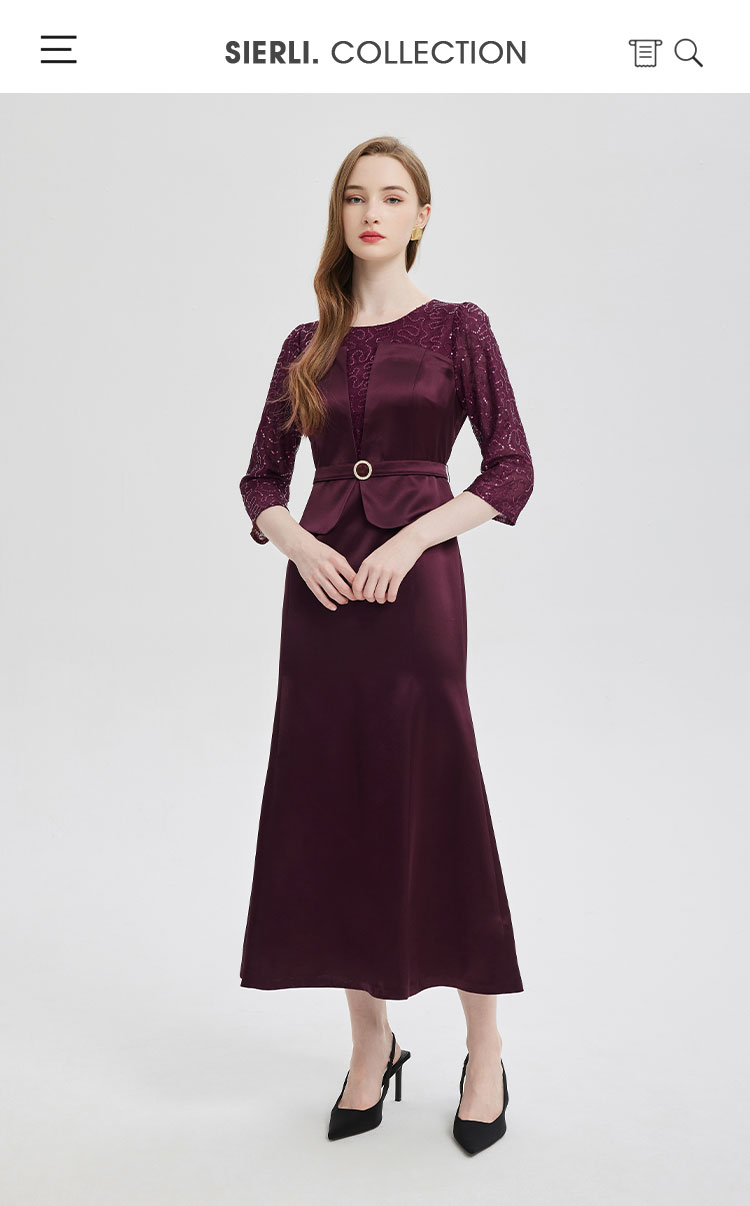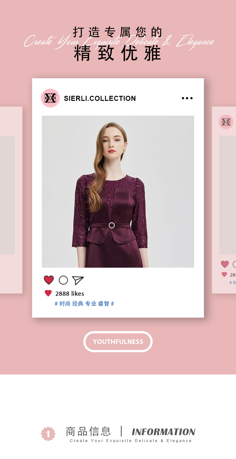 商品名称:2024法式浪漫拼接蕾丝假两件式七分袖奢华简约高级礼服连衣裙 119455