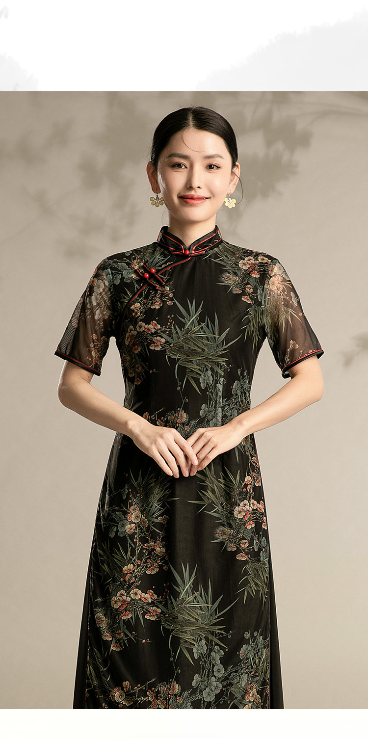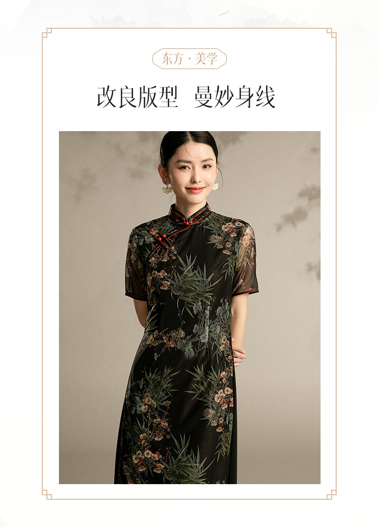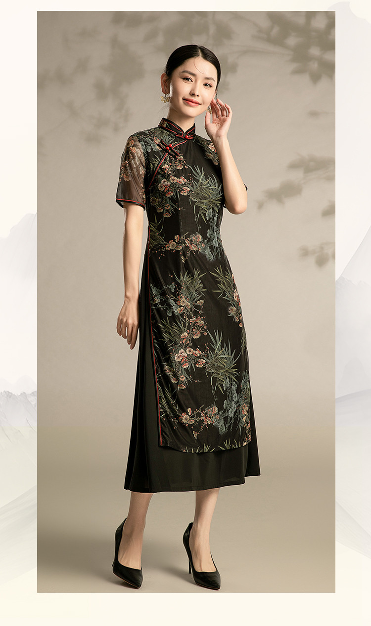 中式改良国风旗袍连衣裙春夏复古中国风显瘦旗袍 430559
