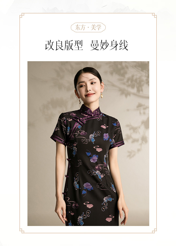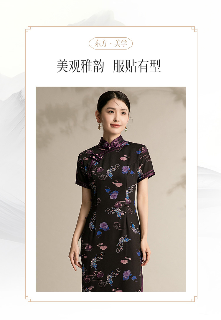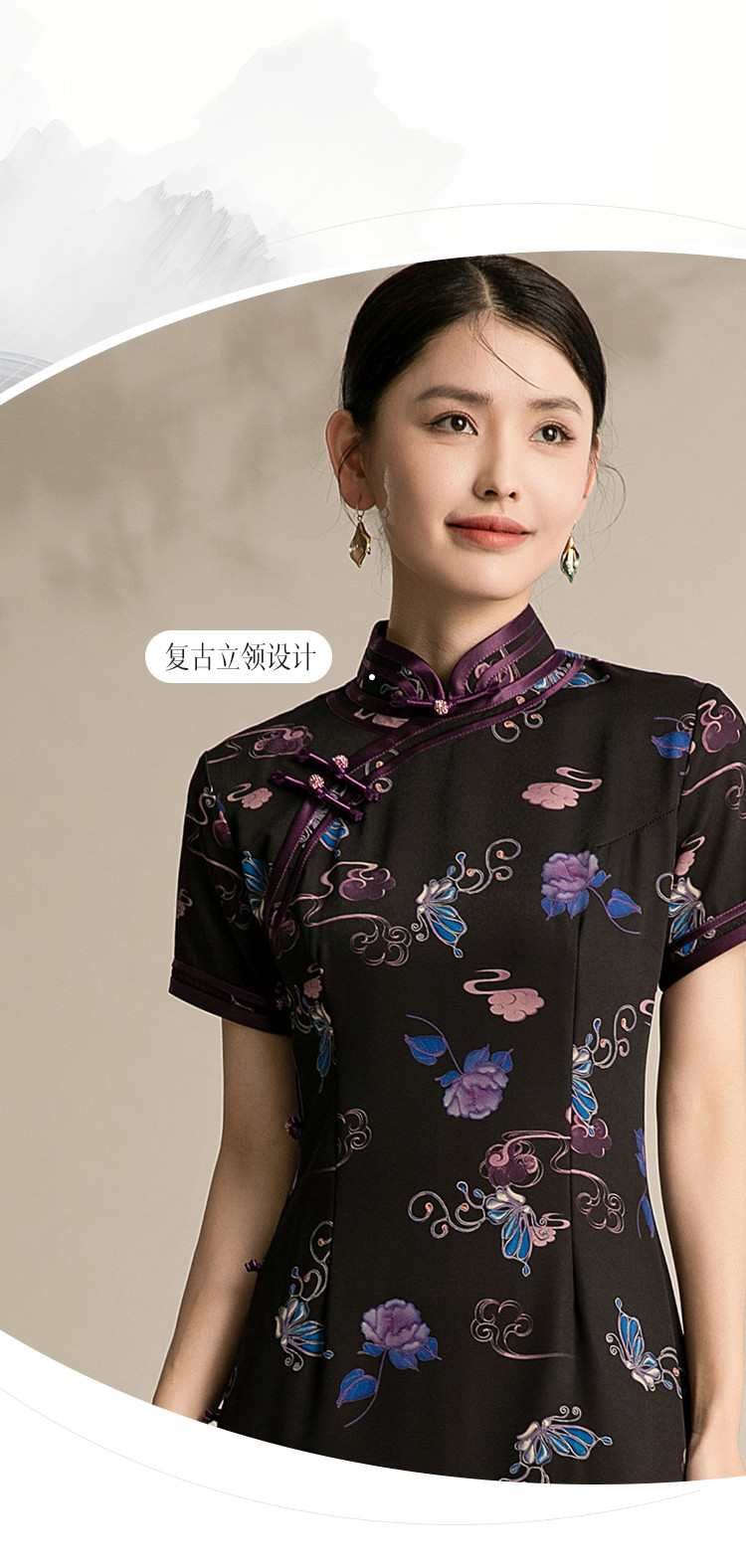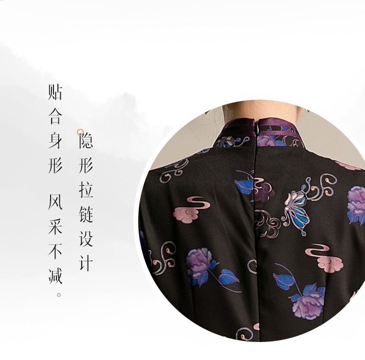 商品名称:高端旗袍春款旗袍中长复古典雅气质旗袍 352415