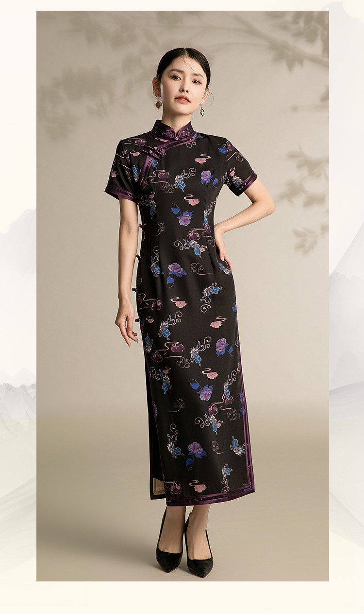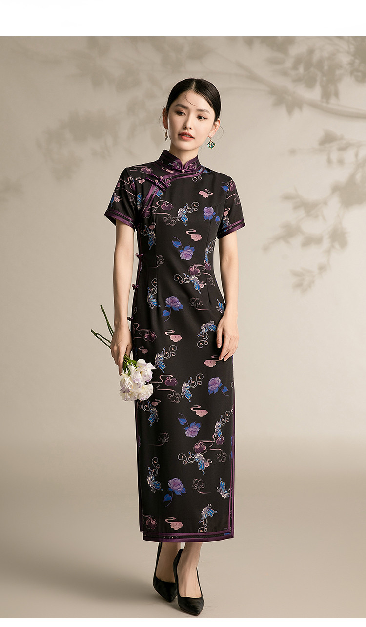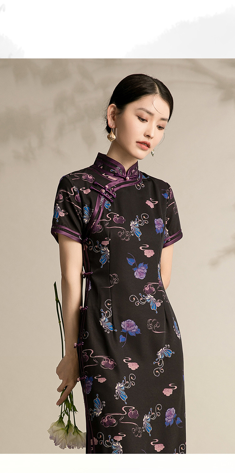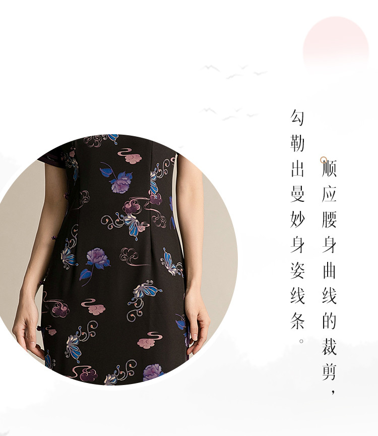 商品名称:高端旗袍春款旗袍中长复古典雅气质旗袍 352415