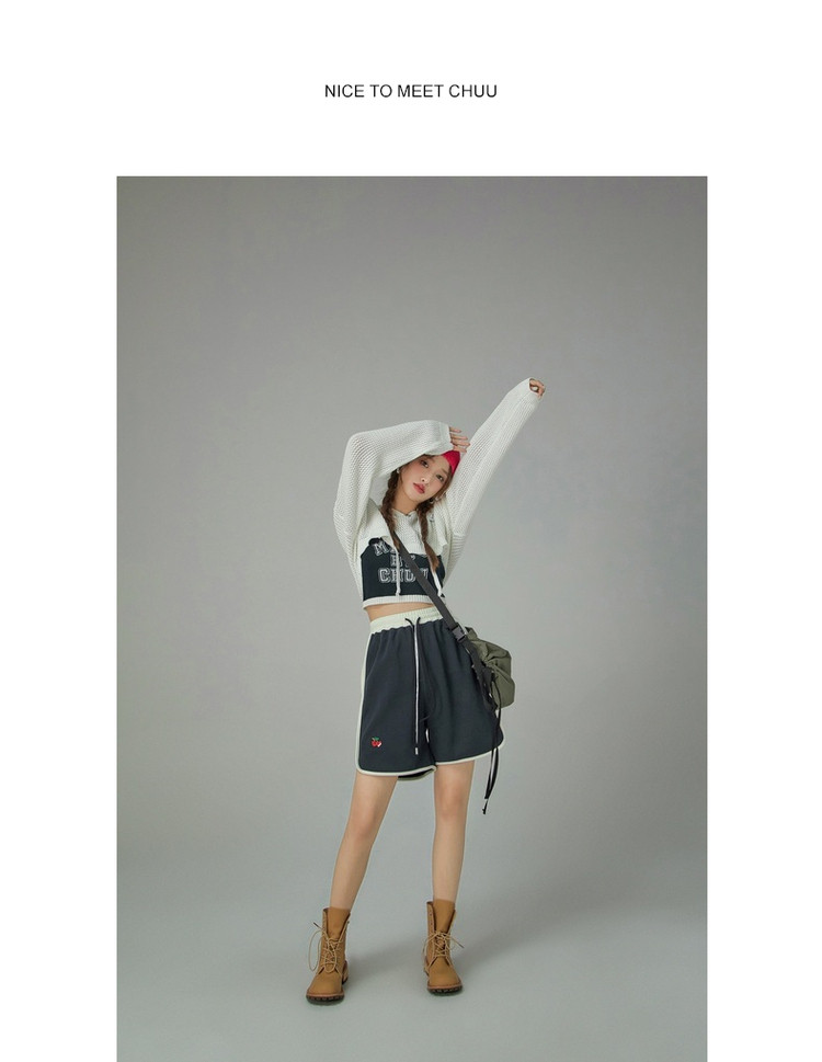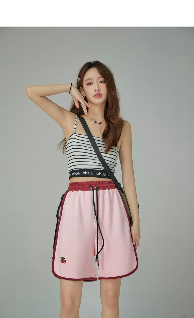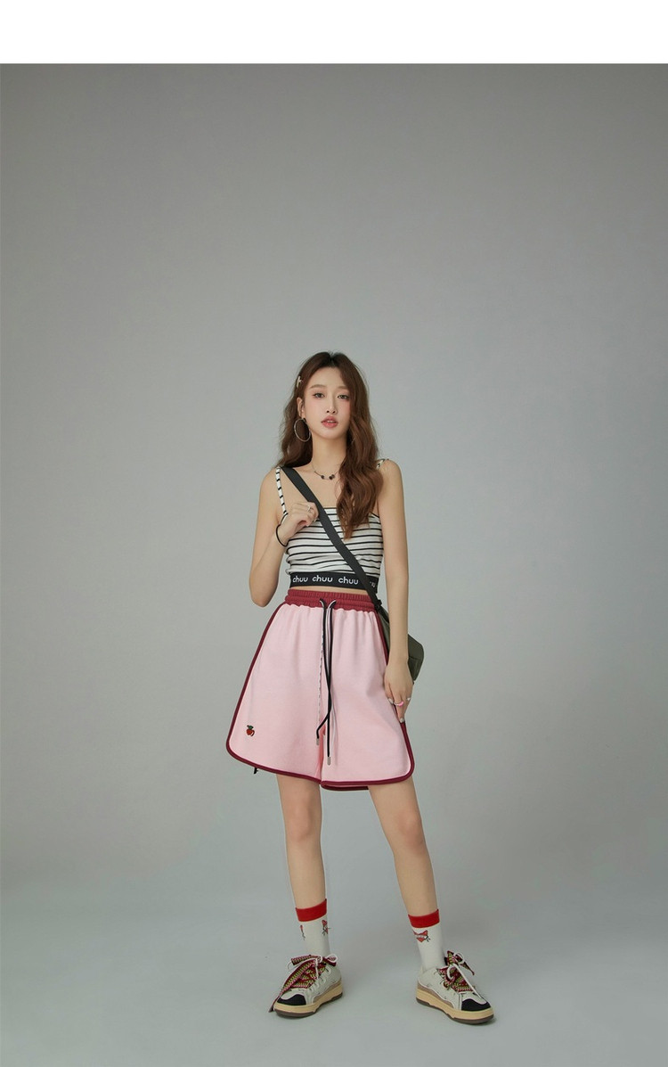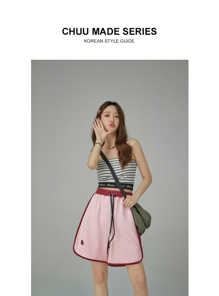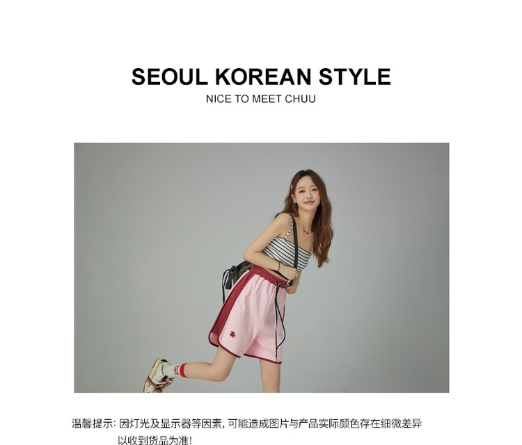 商品名称:CHUU松紧腰撞色休闲短裤女秋季小个子a字外穿运动裤子 420243