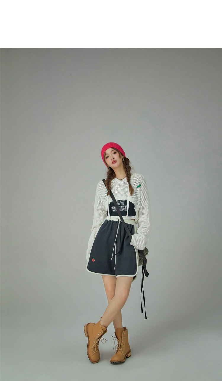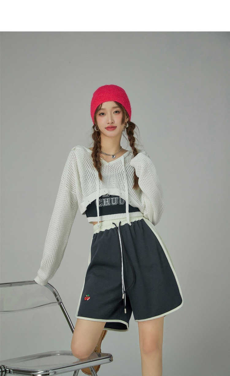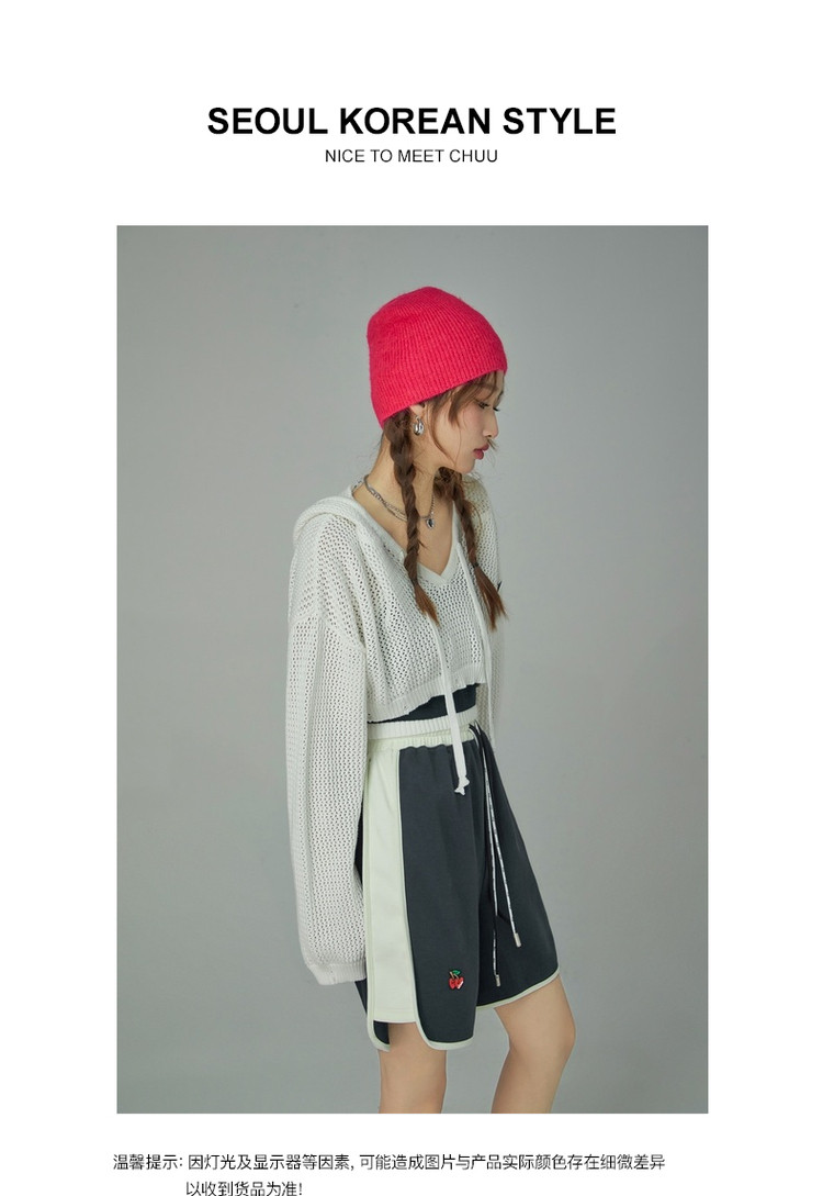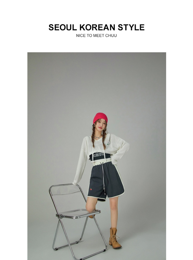 商品名称:CHUU松紧腰撞色休闲短裤女秋季小个子a字外穿运动裤子 420243