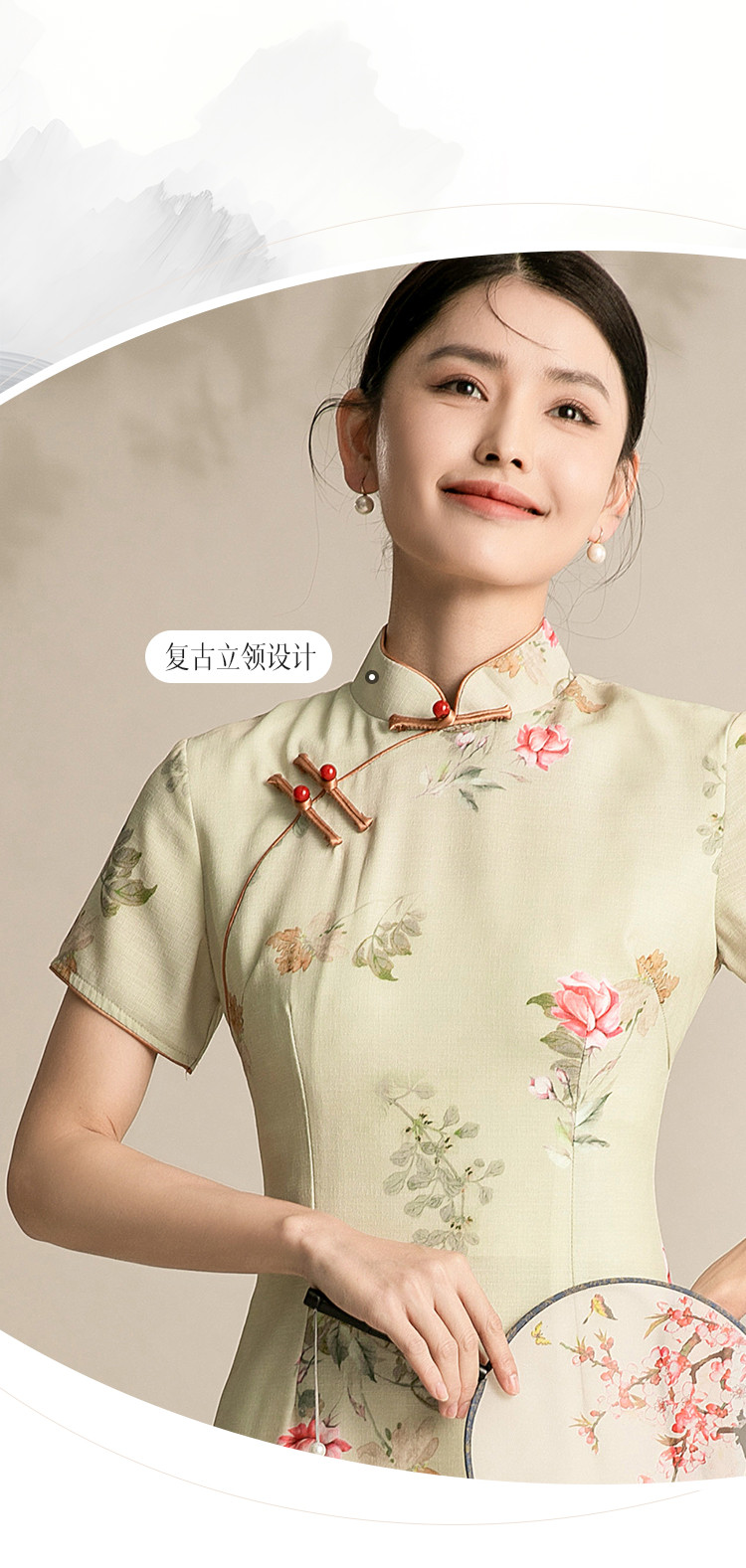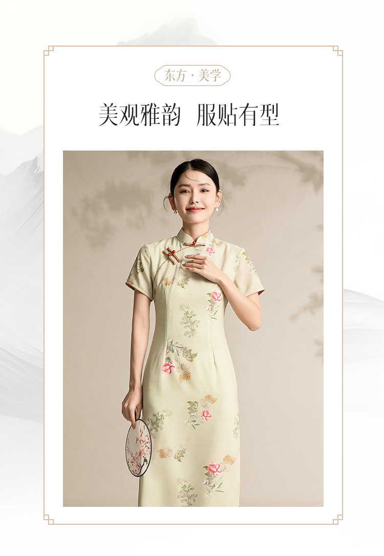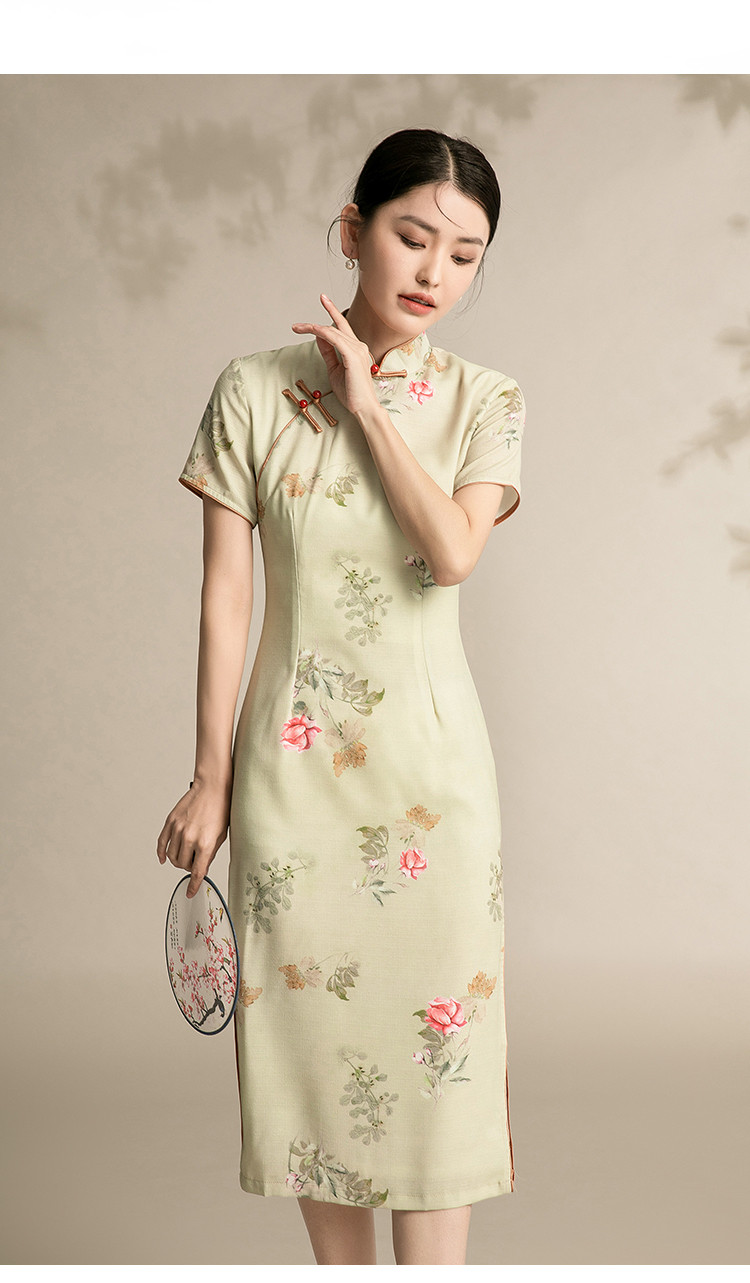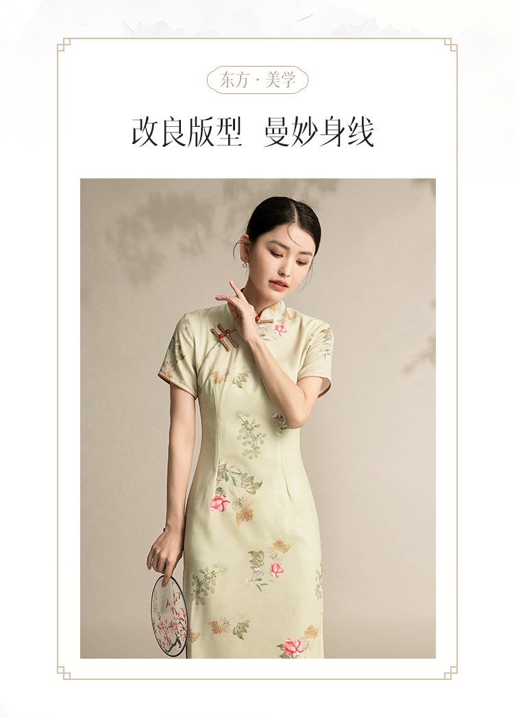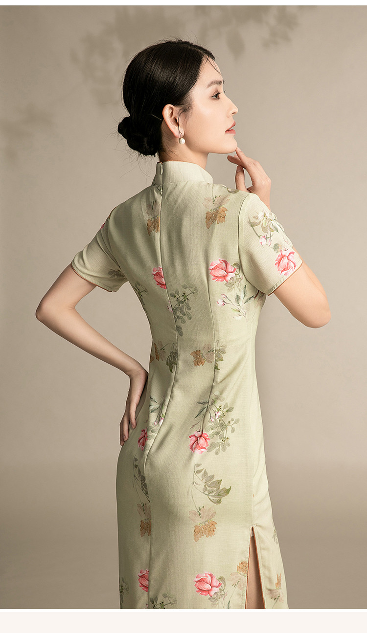 商品名称:复古旗袍改良中国风年轻款短袖高端气质花朵长款秋款 044895