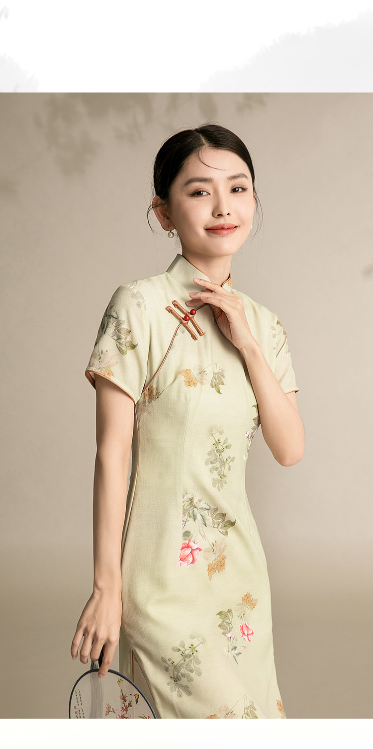 复古旗袍改良中国风年轻款短袖高端气质花朵长款秋款 044895