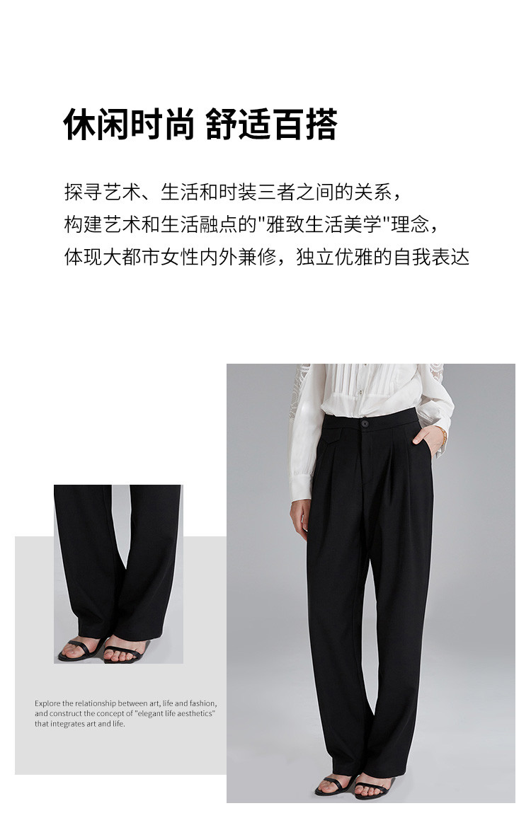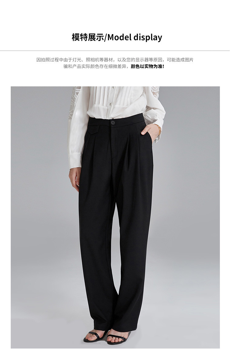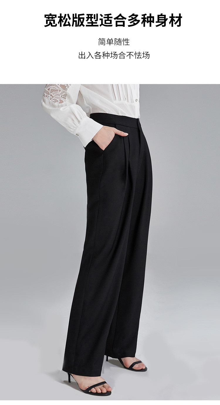 商品名称:春秋新款褶皱设计感休闲裤女式百搭高腰阔腿裤垂坠感拖地长款裤子 607519