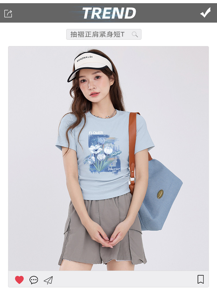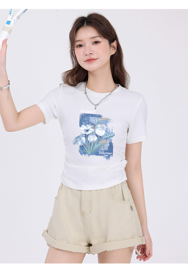 商品名称:【女装正肩】女式短款小个子T恤紧身显瘦夏季小众抽褶设计感短袖 175955