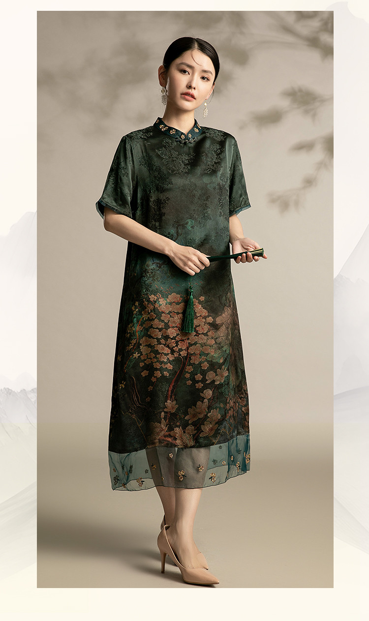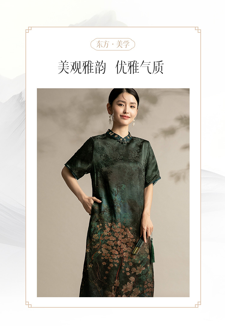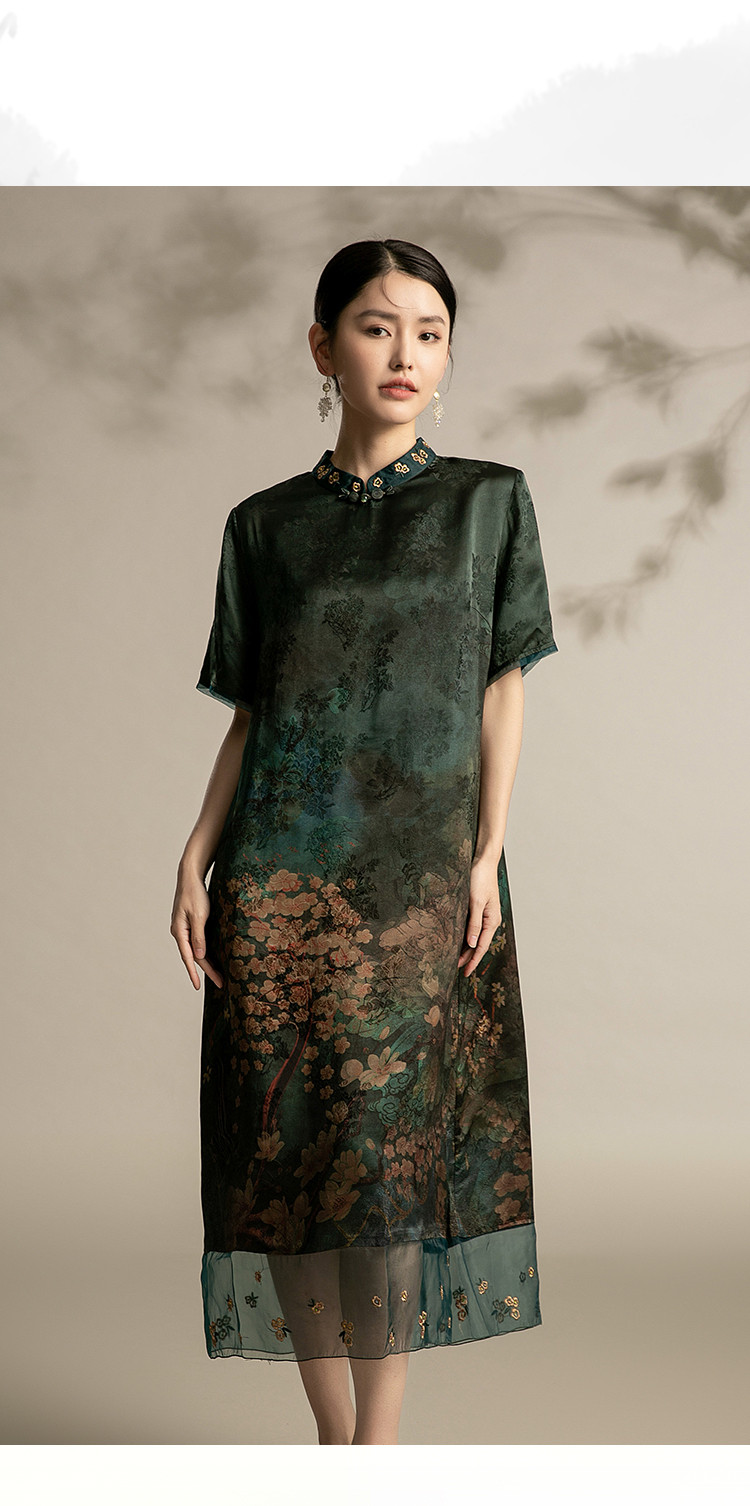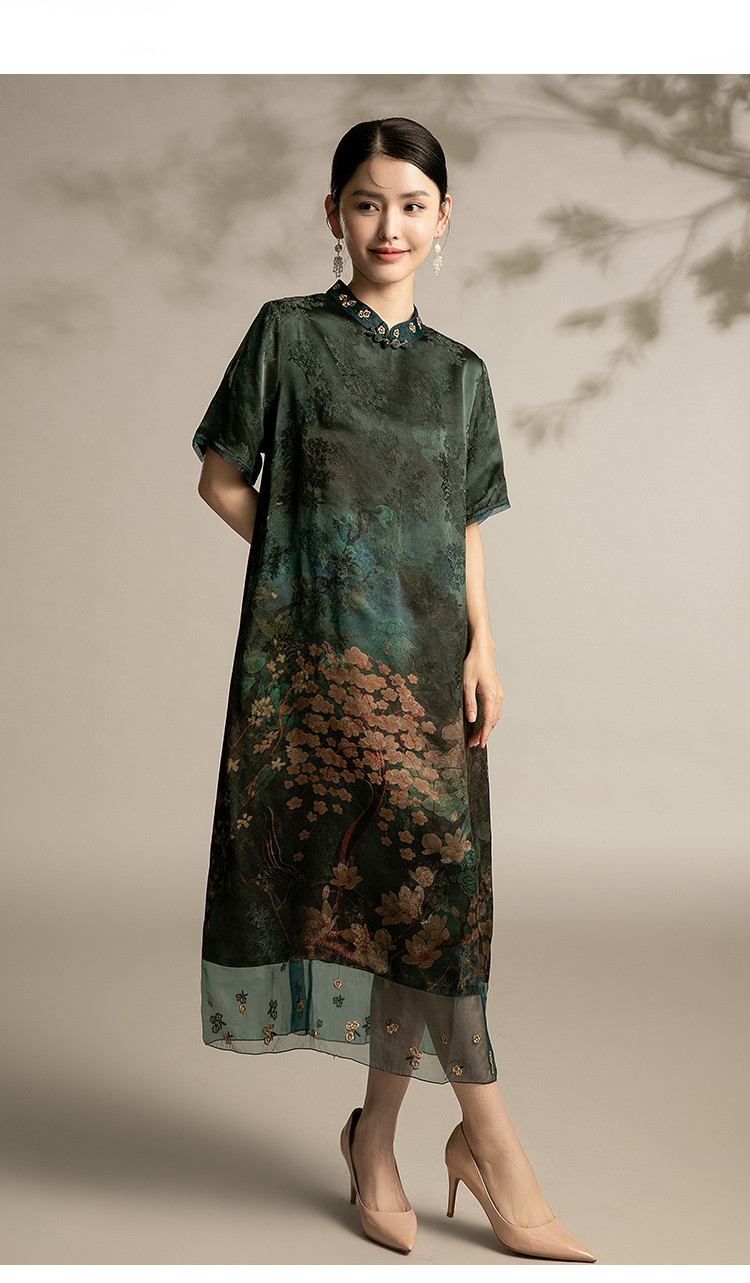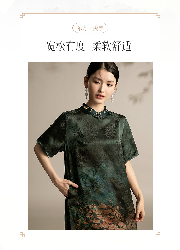 商品名称:夏季改良版连衣裙洋气印花舒适宽松裙中年中国风裙子 496095