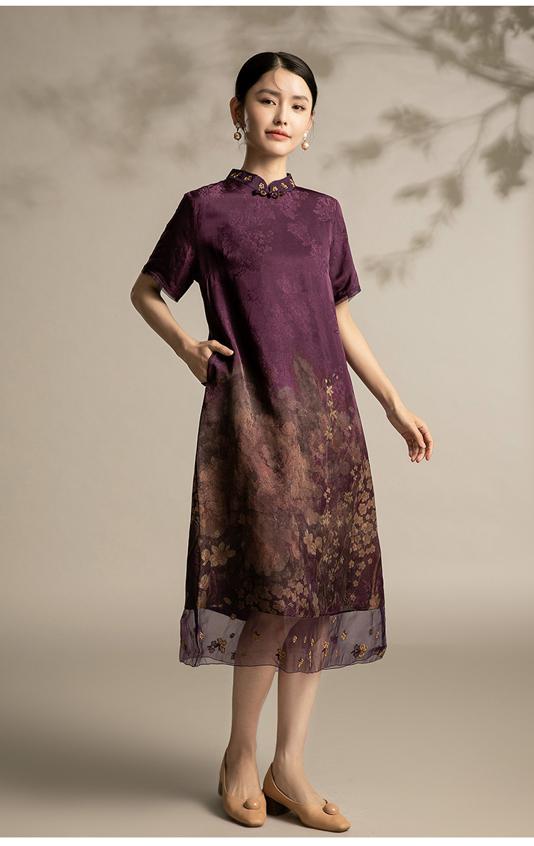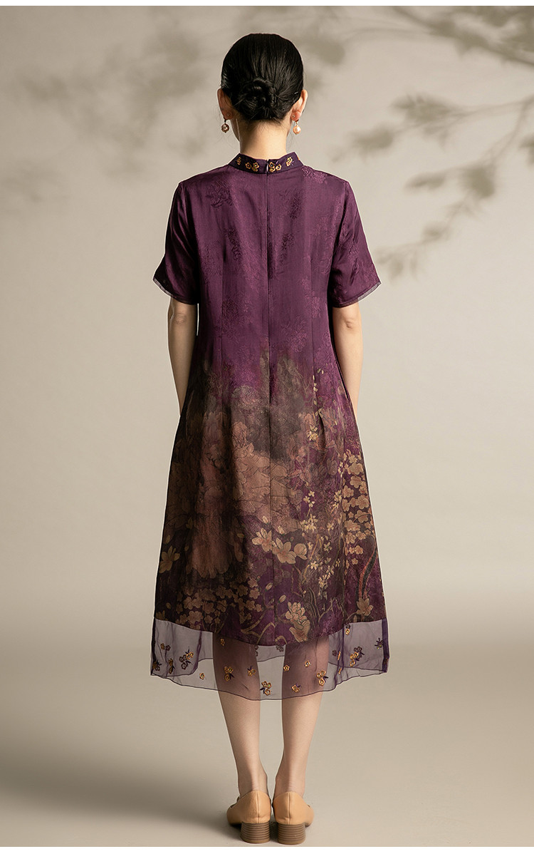 夏季改良版连衣裙洋气印花舒适宽松裙中年中国风裙子 496095
