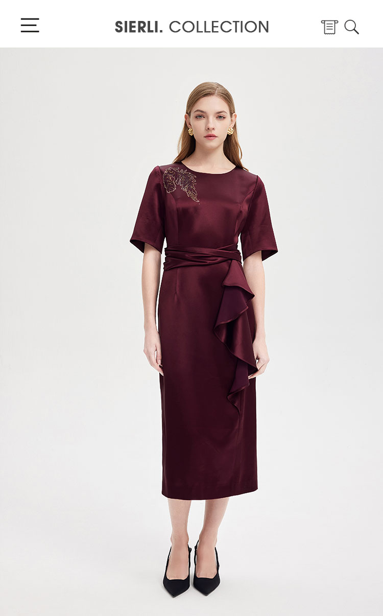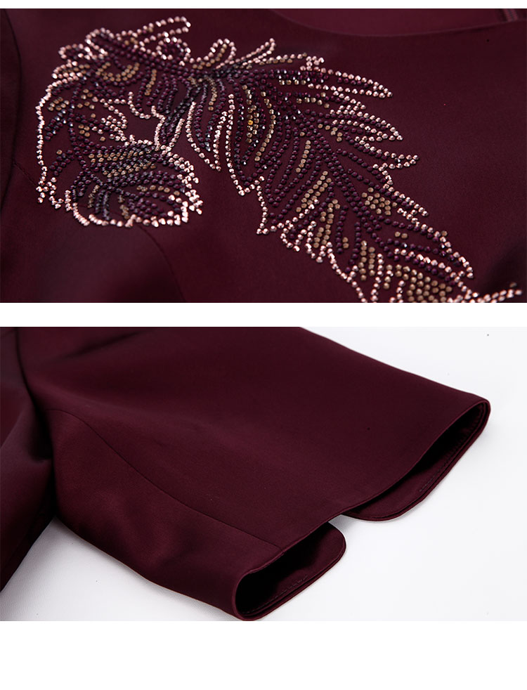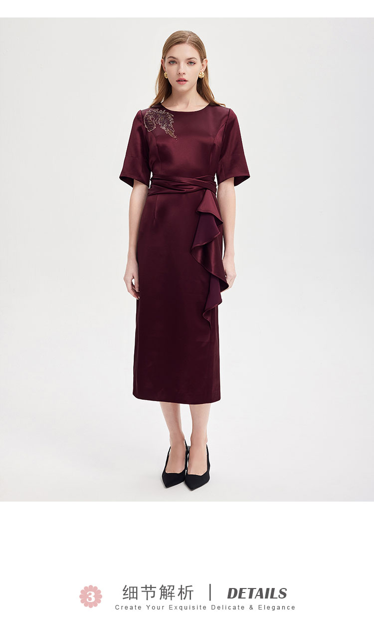 中袖收腰直身腰间立体收褶挡肉显瘦华丽高贵礼服连衣裙 496735