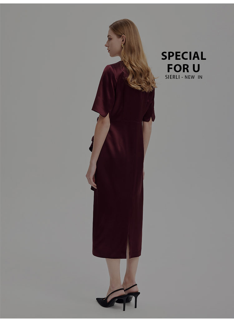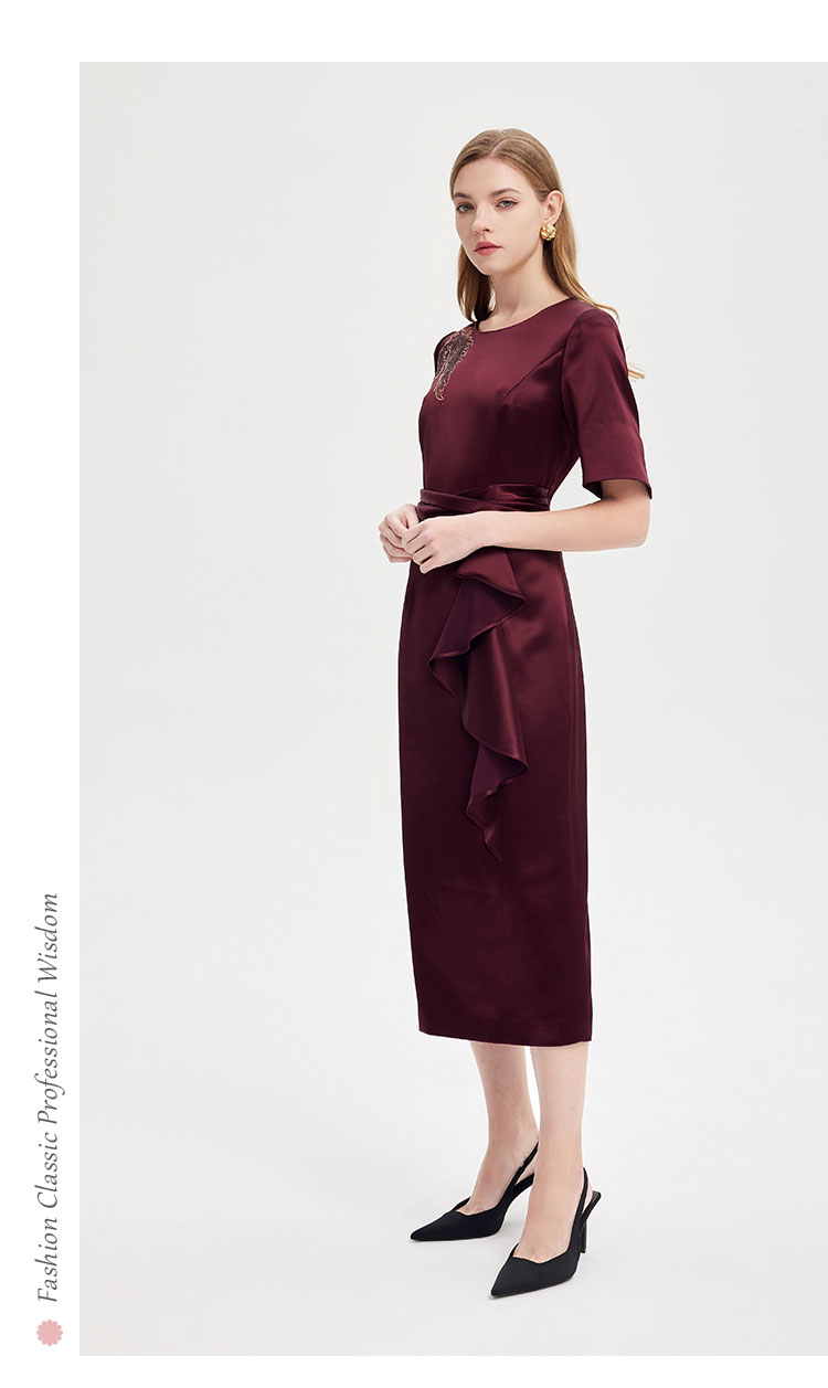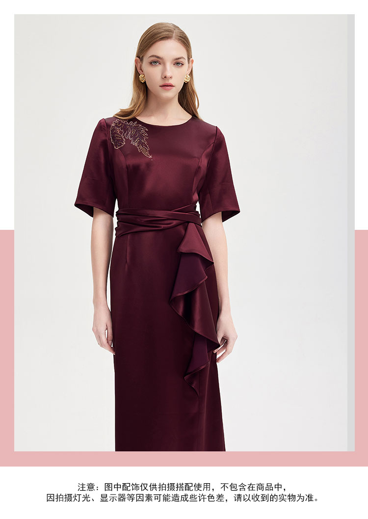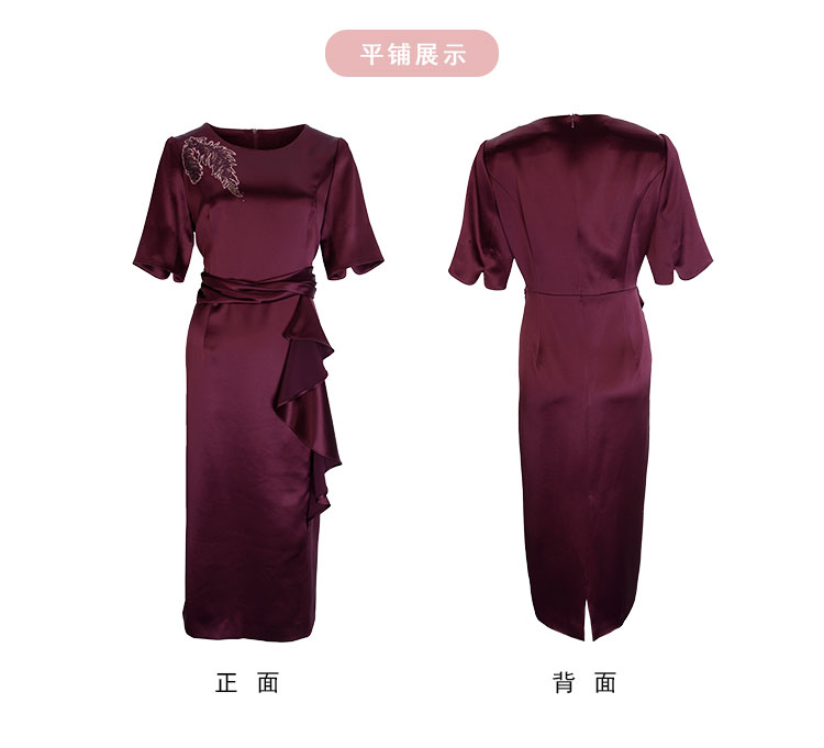 商品名称:中袖收腰直身腰间立体收褶挡肉显瘦华丽高贵礼服连衣裙 496735