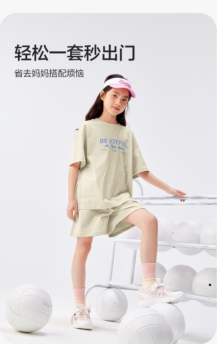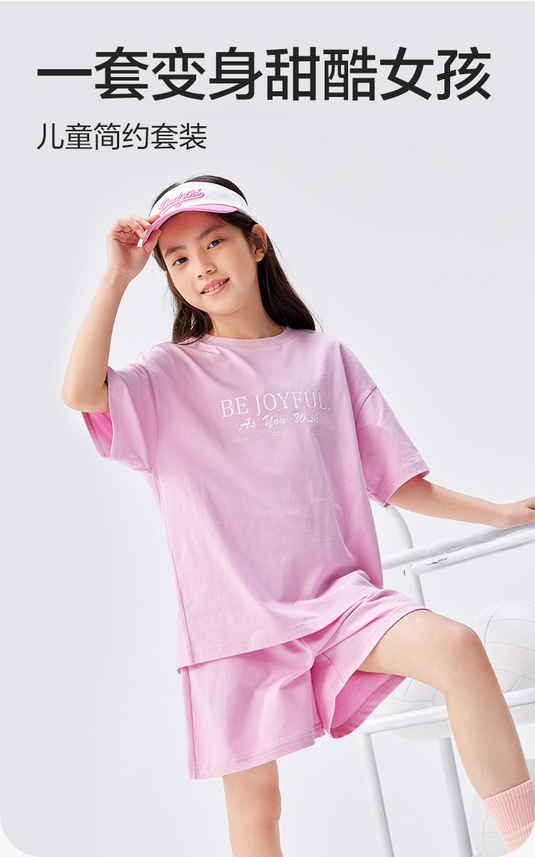 商品名称:纯棉两件套女童夏装套装大童运动短袖两件套洋气酷帅国风新中式 881989