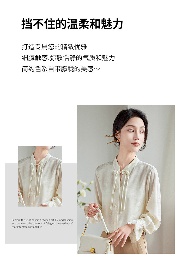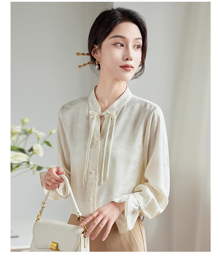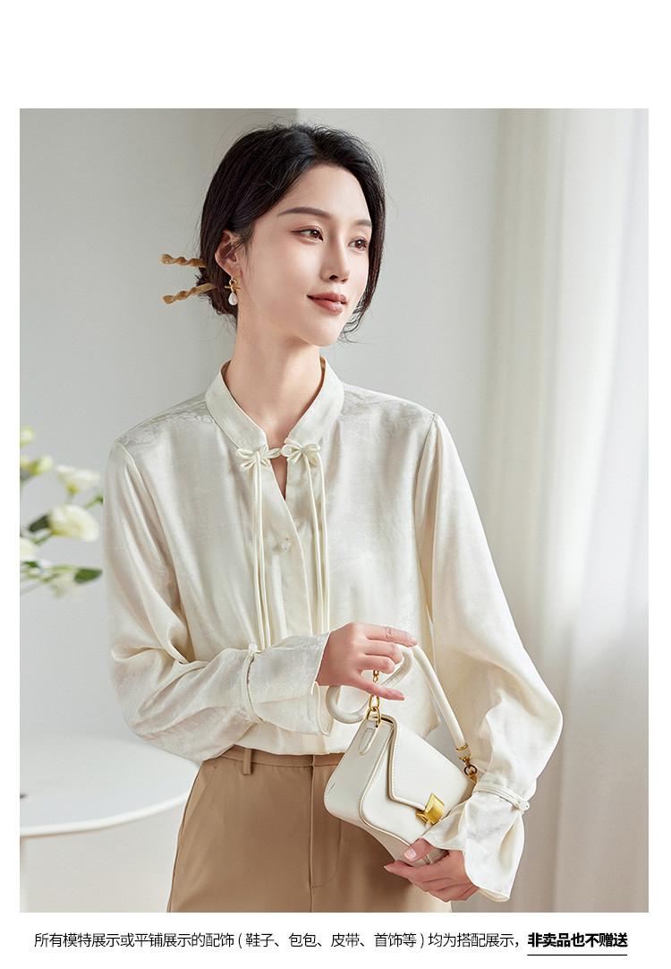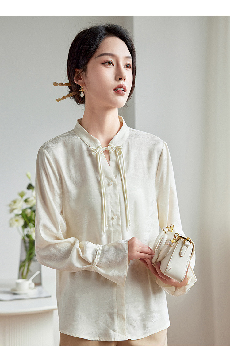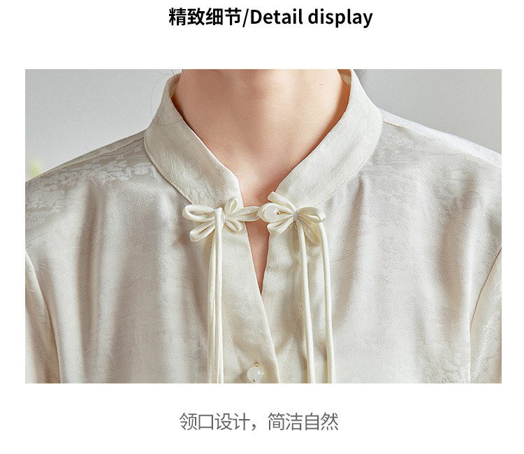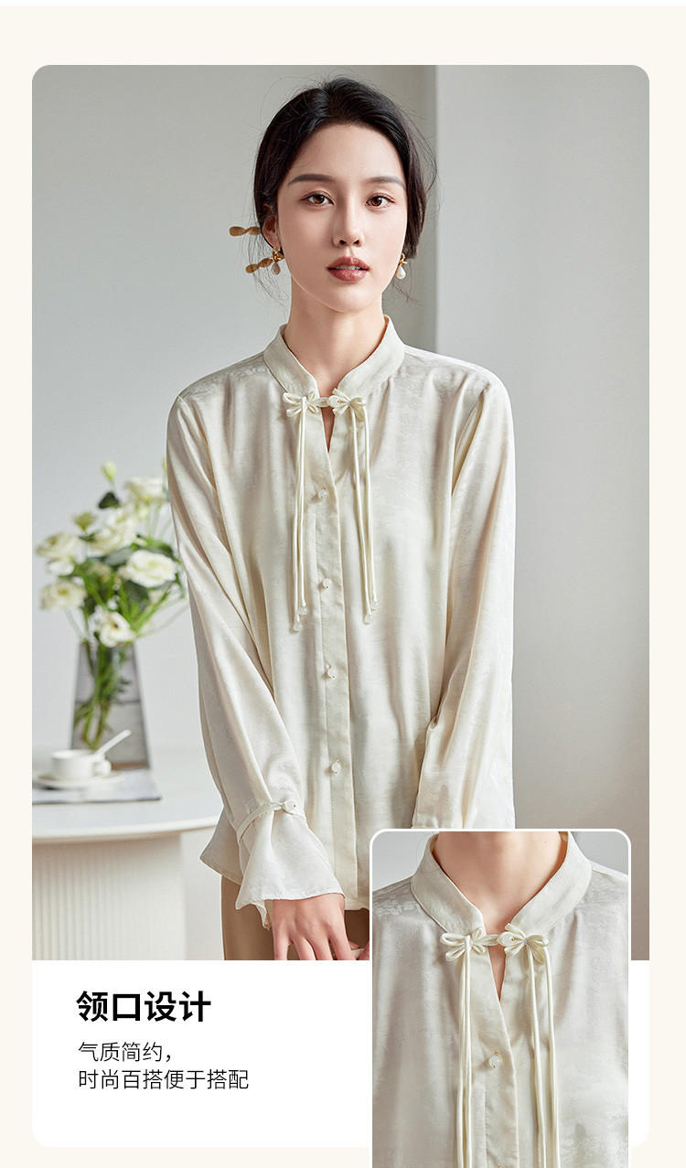 商品名称:春秋新中式温柔气质提花衬衣女式百搭休闲立领衬衫上衣 902943