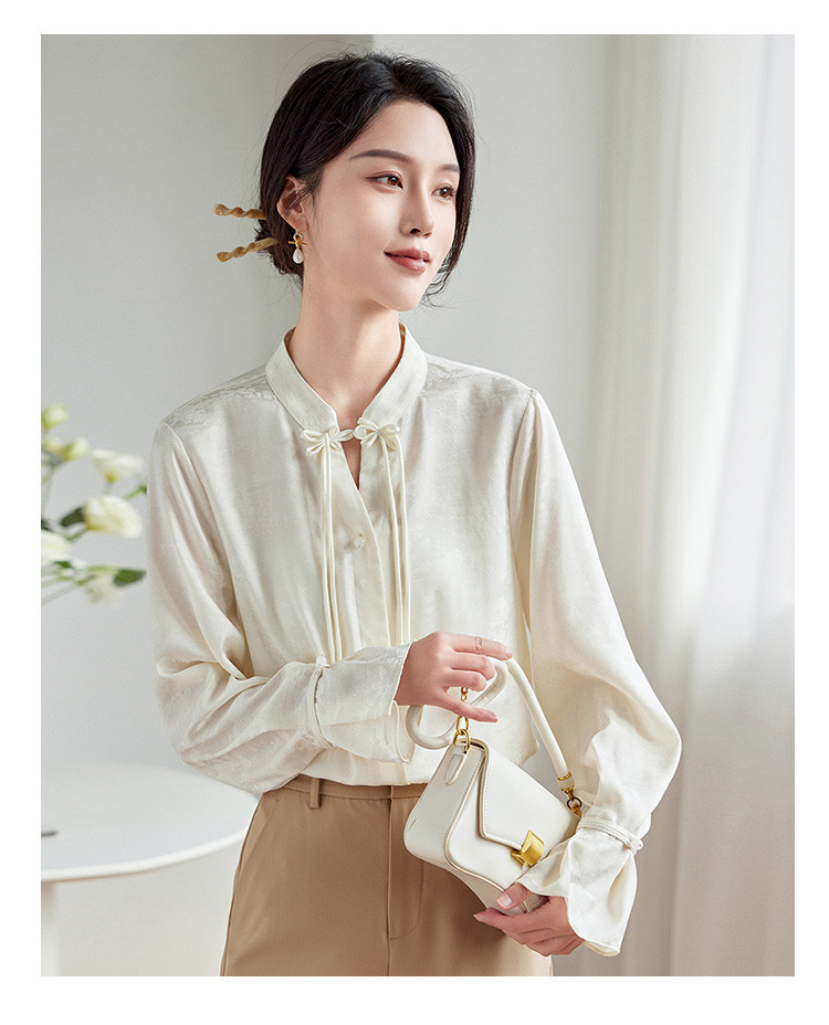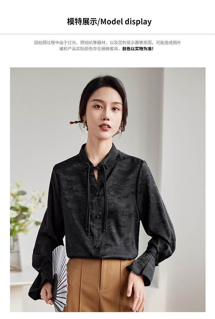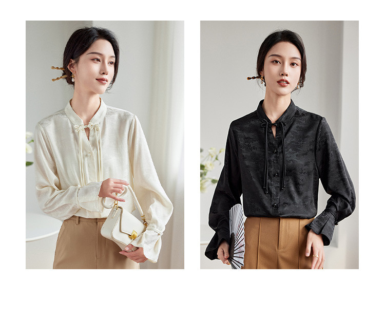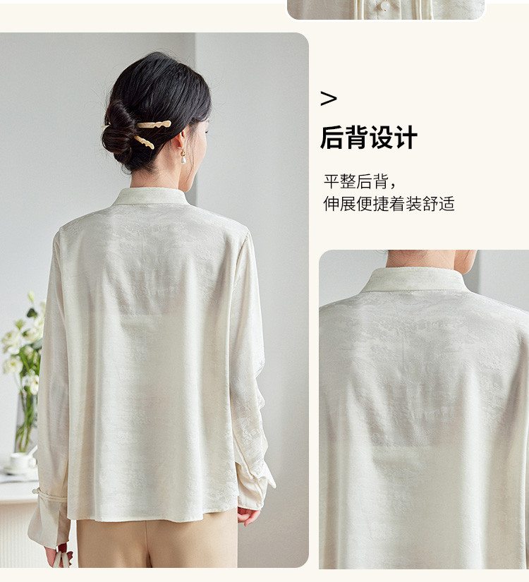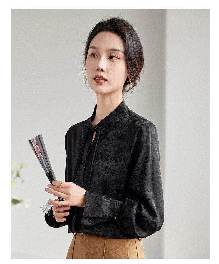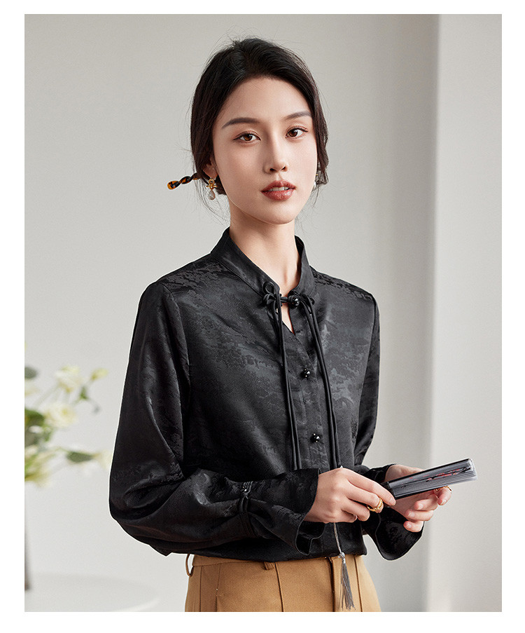 商品名称:春秋新中式温柔气质提花衬衣女式百搭休闲立领衬衫上衣 902943