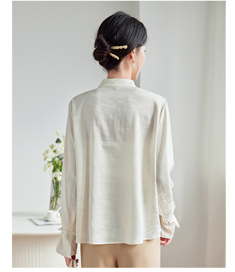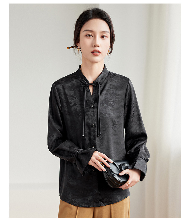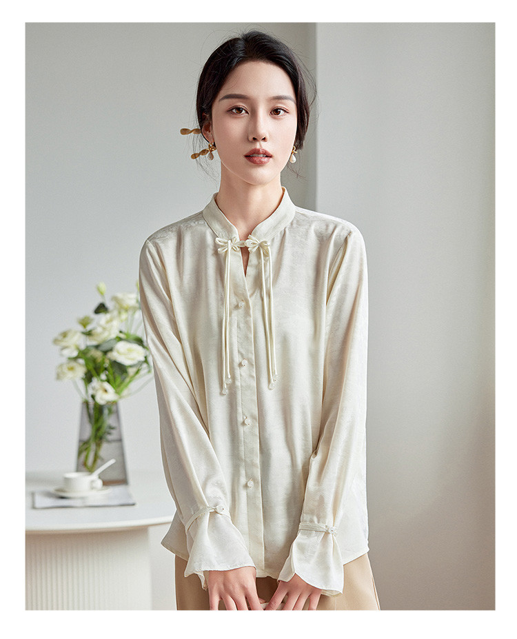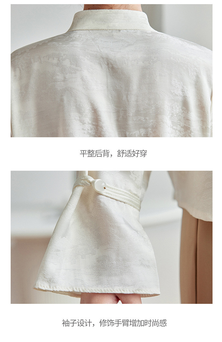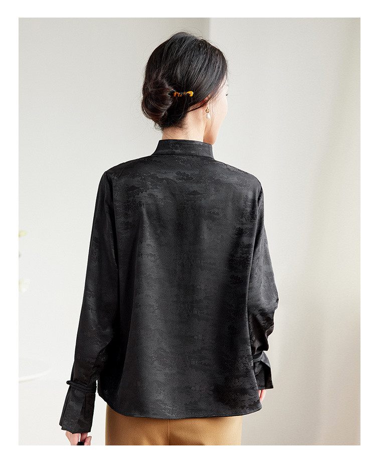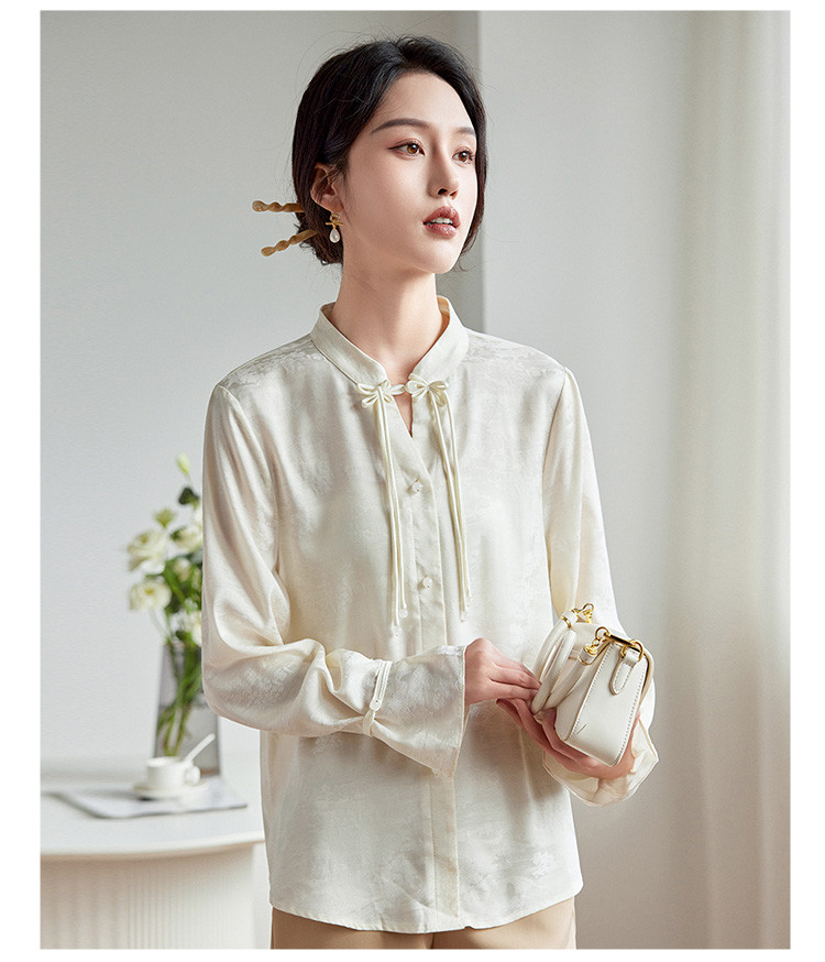 商品名称:春秋新中式温柔气质提花衬衣女式百搭休闲立领衬衫上衣 902943