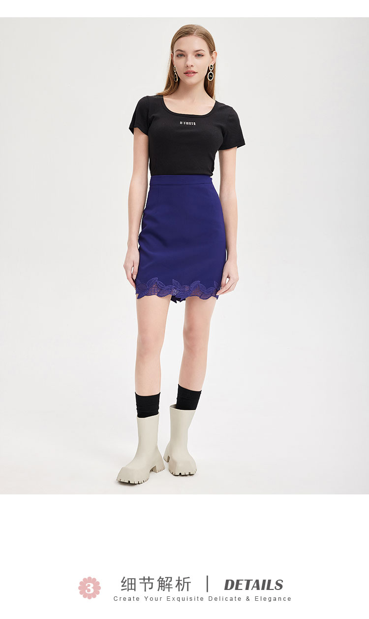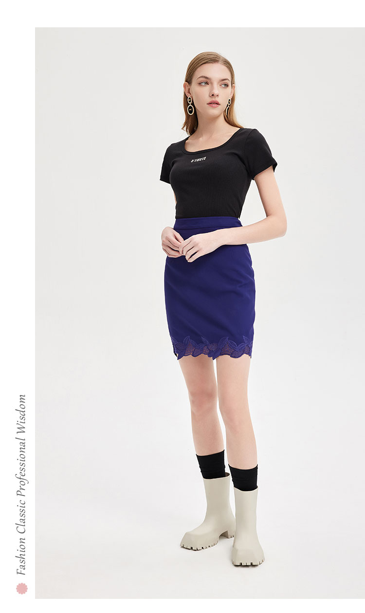 商品名称:春季简约纯色下摆绣花弹力包臀裙一步裙短裙半截裙 859359