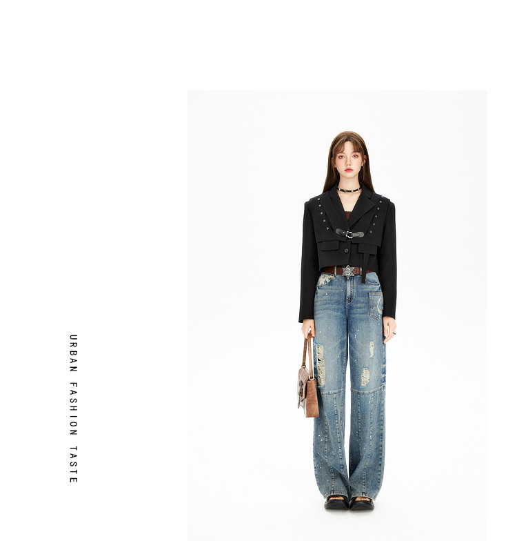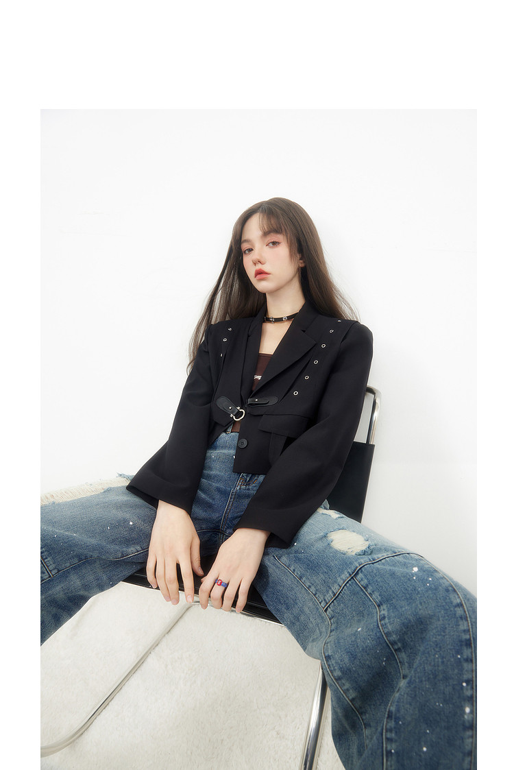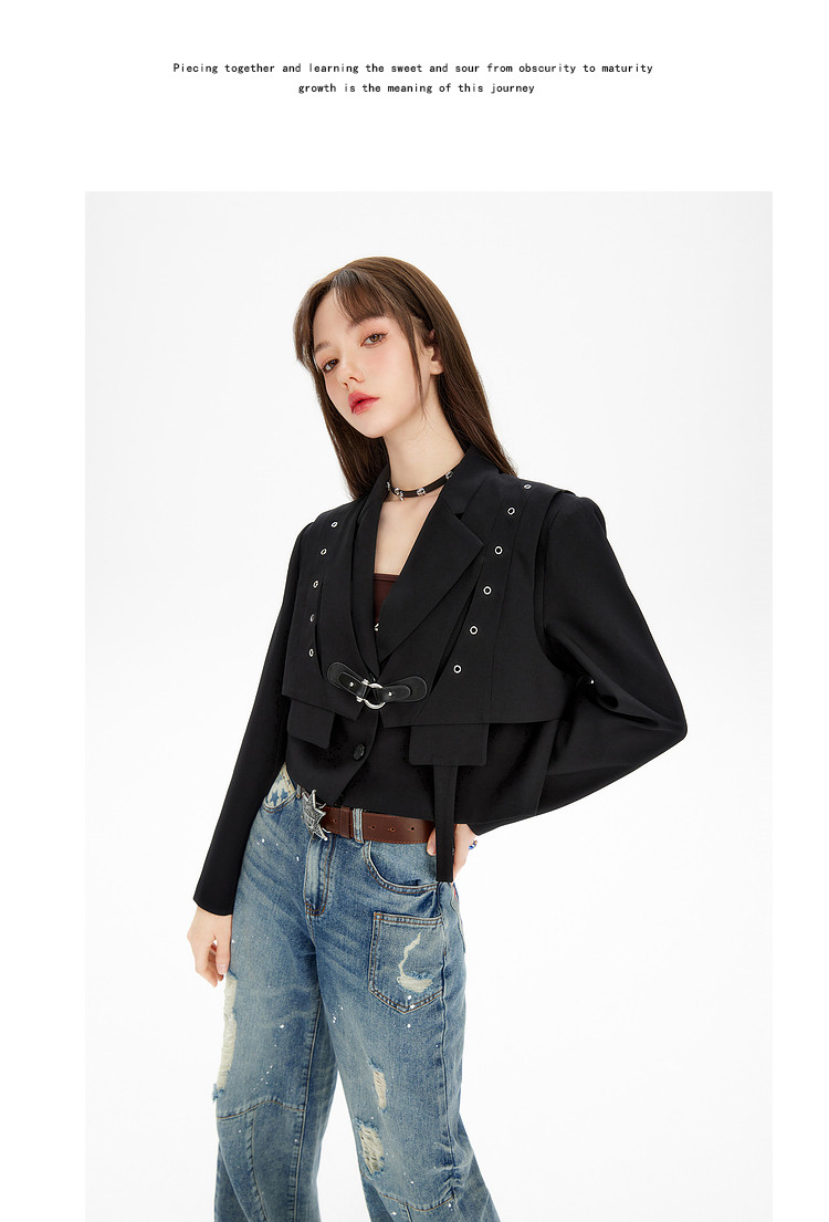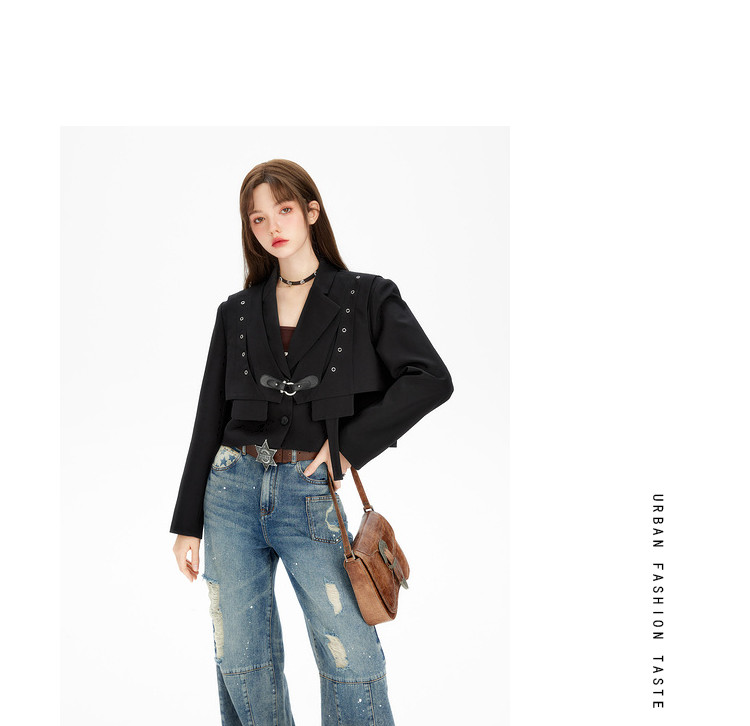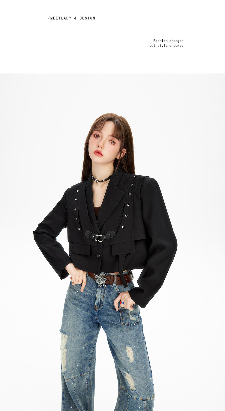 2024季节春秋解构假两件短款西装女廓形小西服设计外套 982420