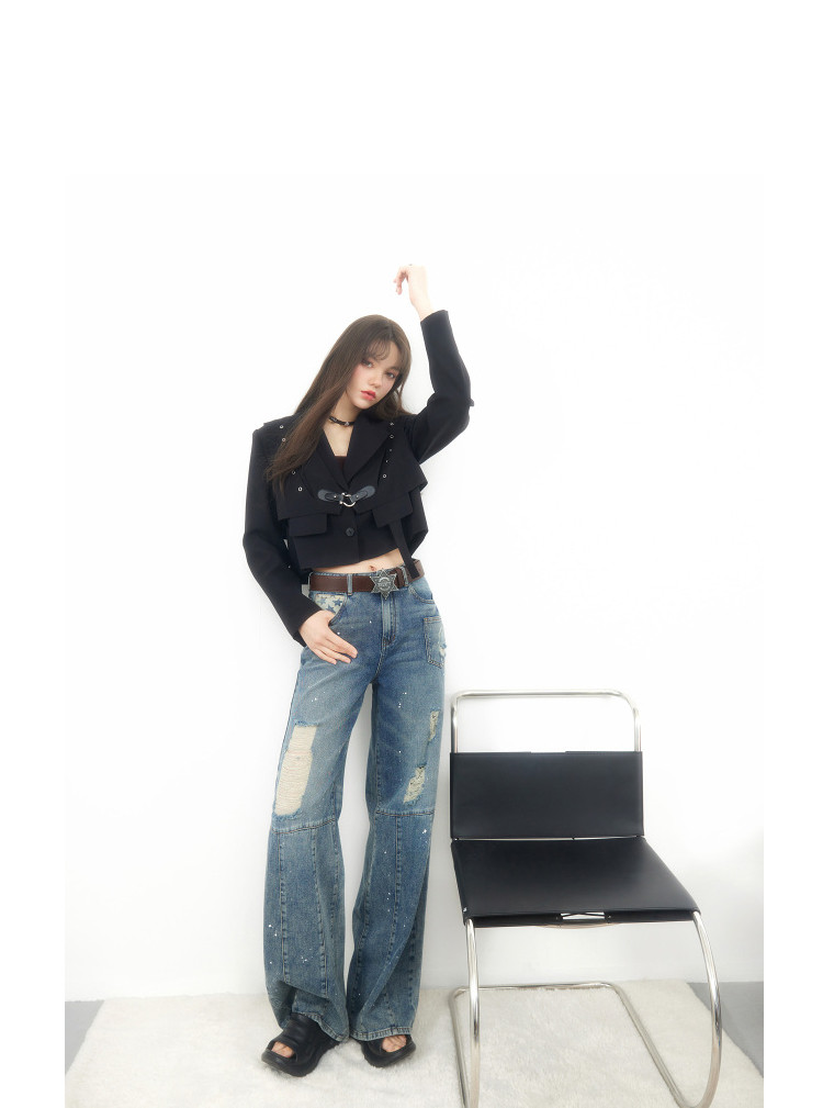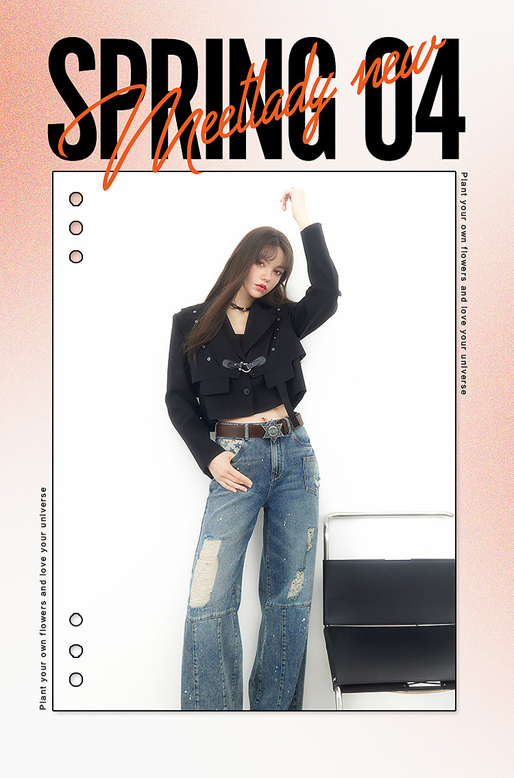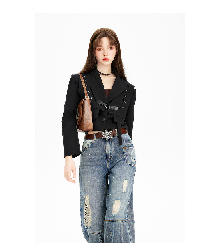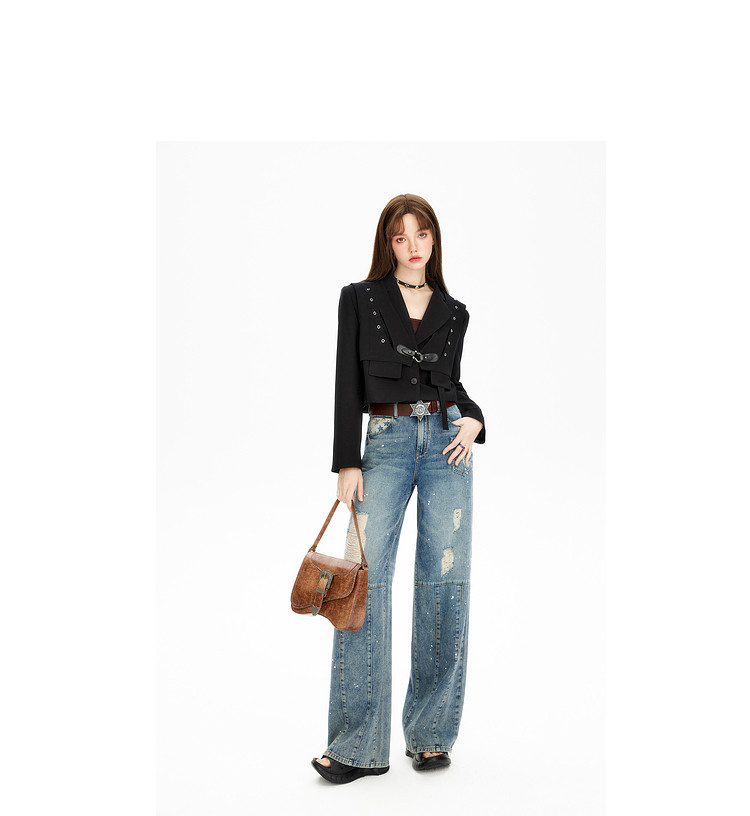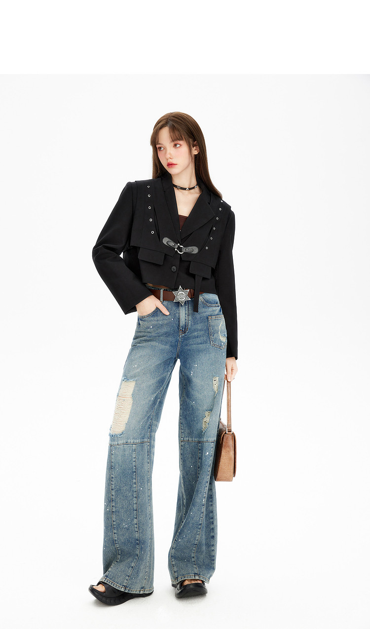 2024季节春秋解构假两件短款西装女廓形小西服设计外套 982420