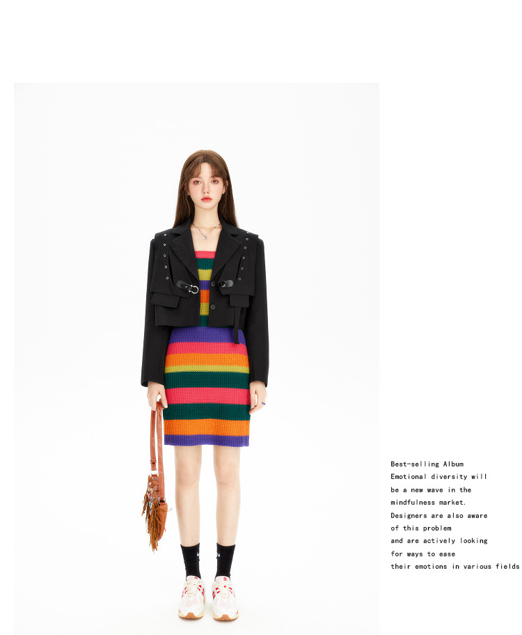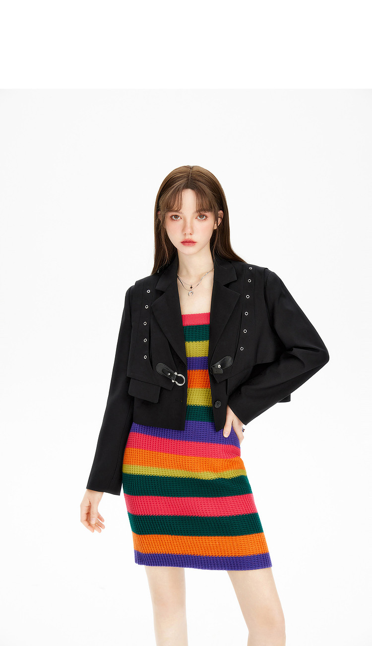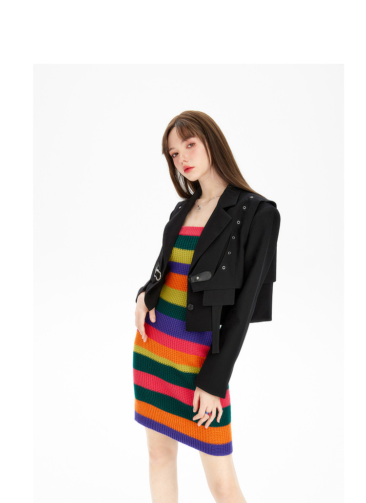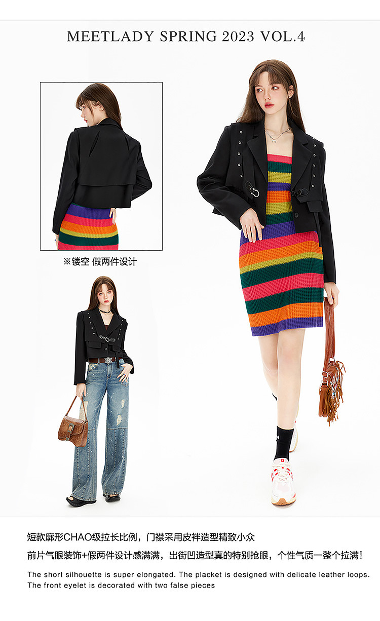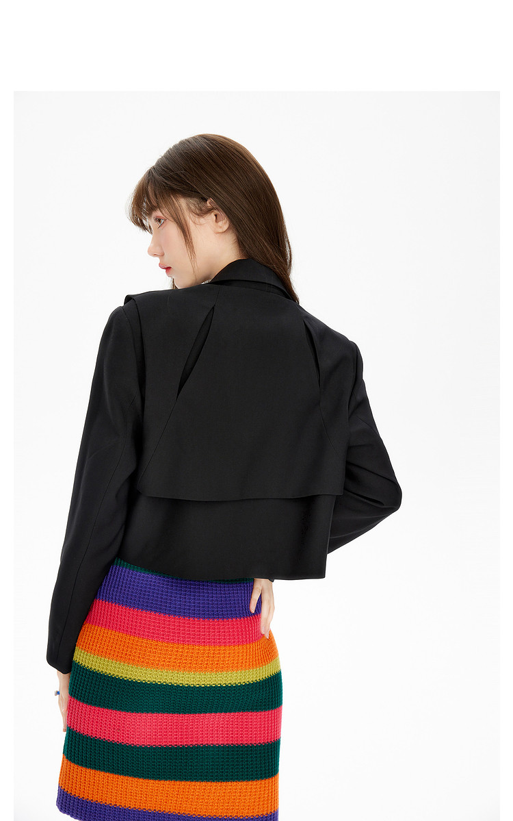 商品名称:2024季节春秋解构假两件短款西装女廓形小西服设计外套 982420