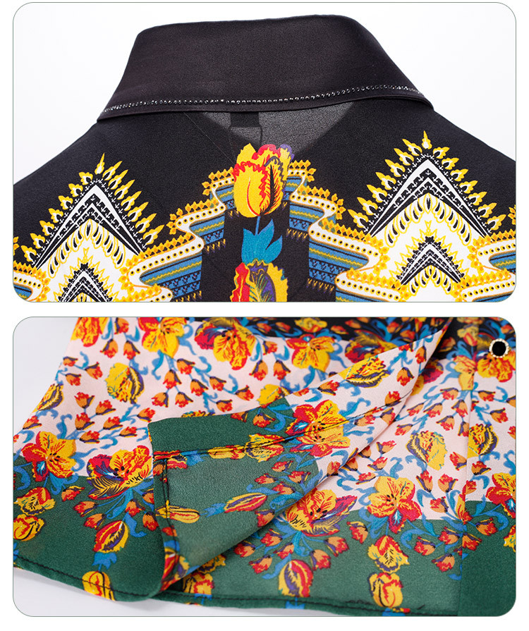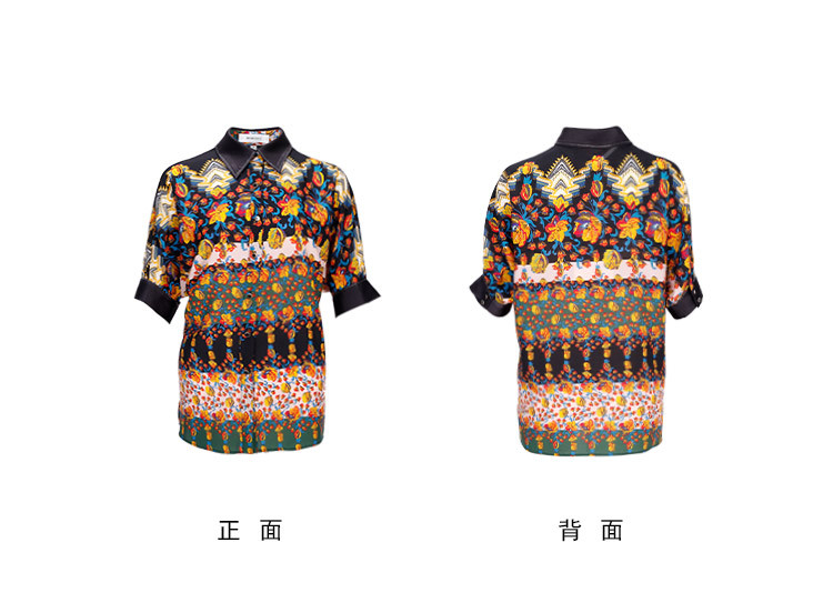 商场同款秋季复古巴洛克金链油画印花撞色烫钻5分袖衬衣 310367