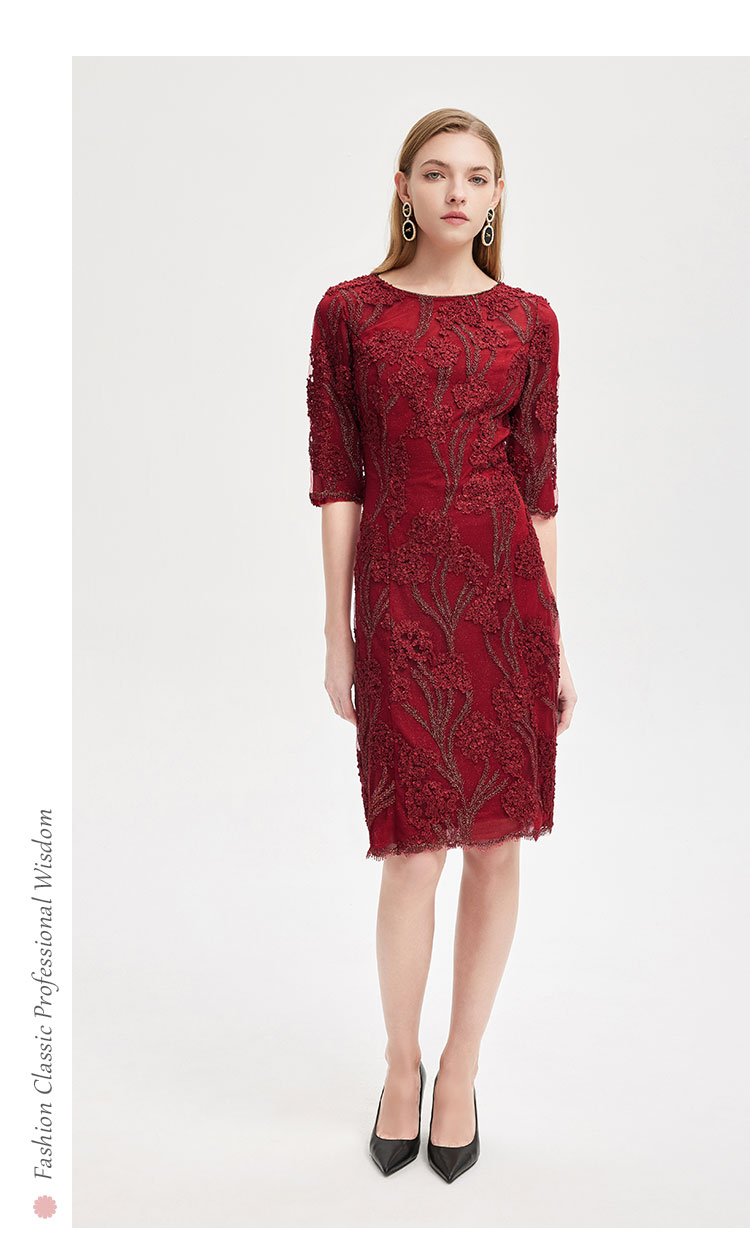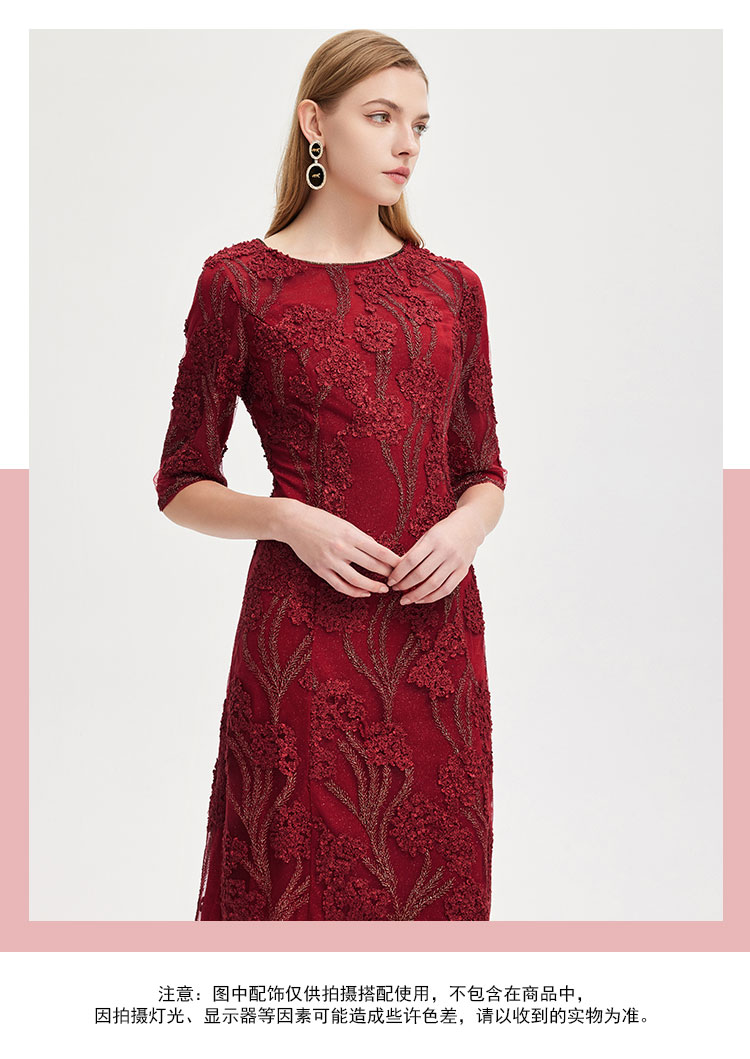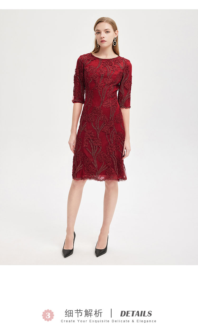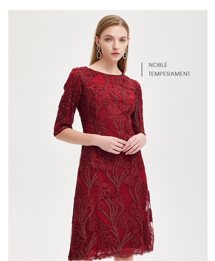 春夏圆领中袖立体绣花优雅气质宴会场合礼服连衣裙 076447