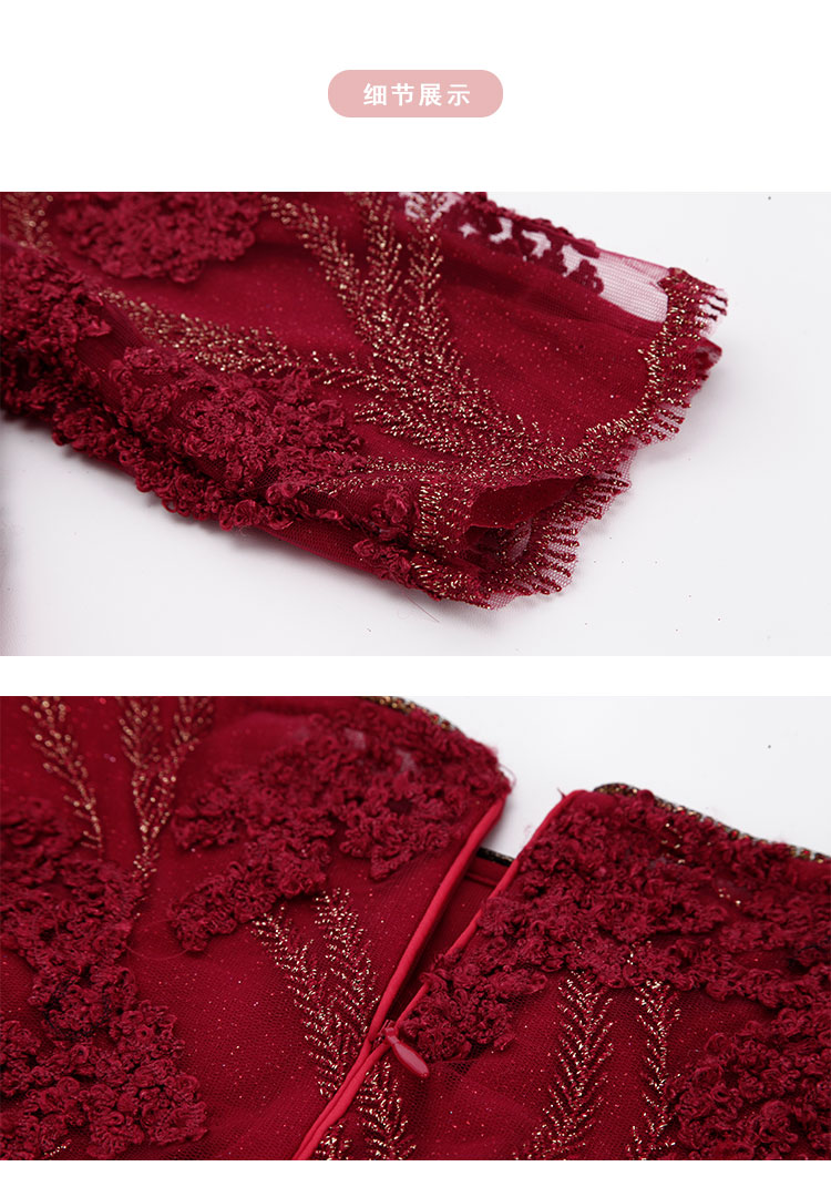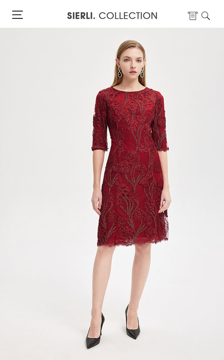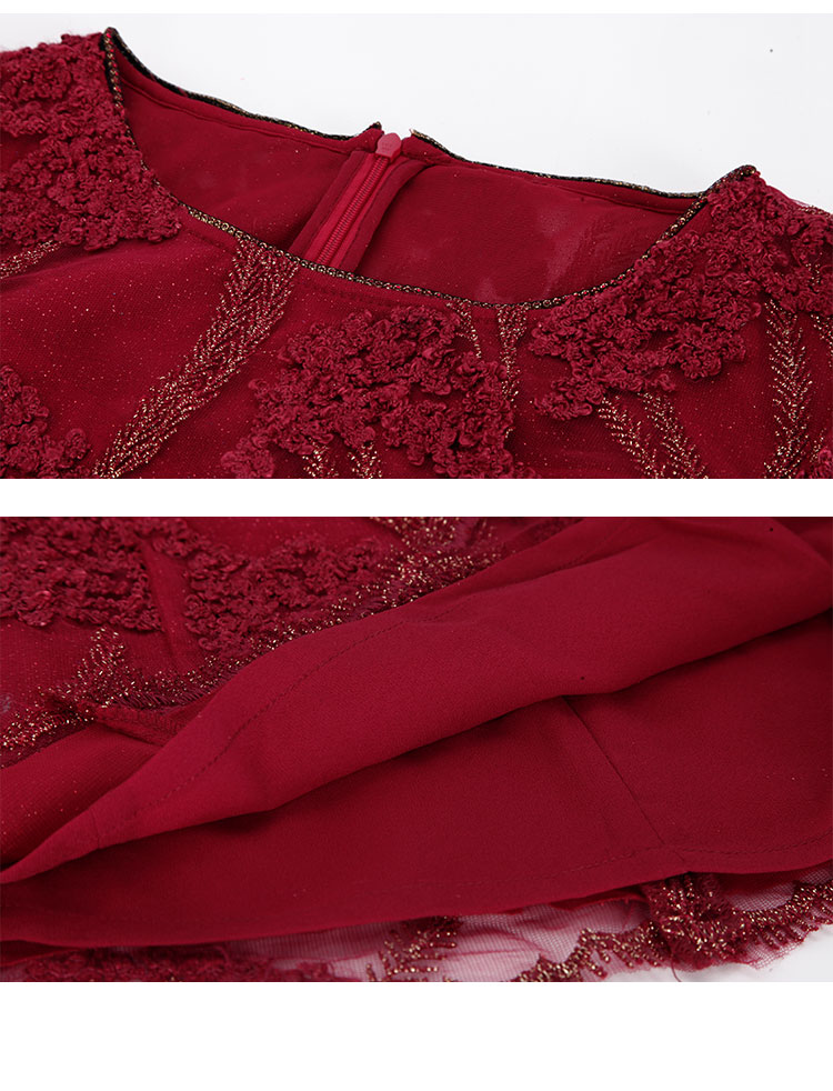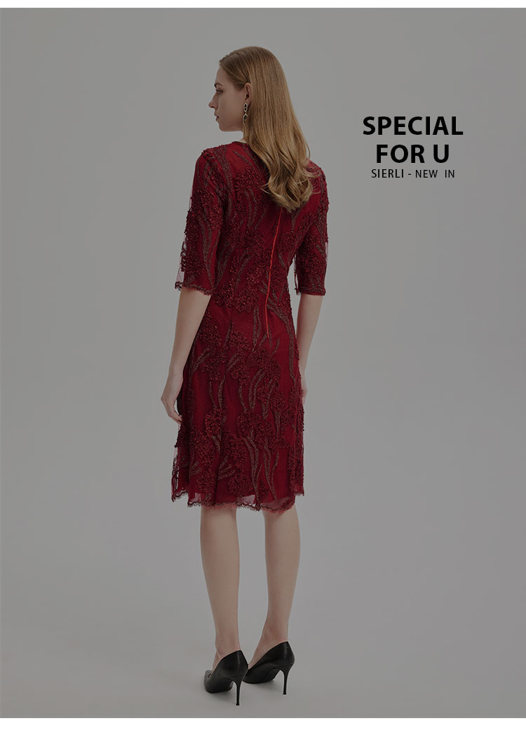 春夏圆领中袖立体绣花优雅气质宴会场合礼服连衣裙 076447