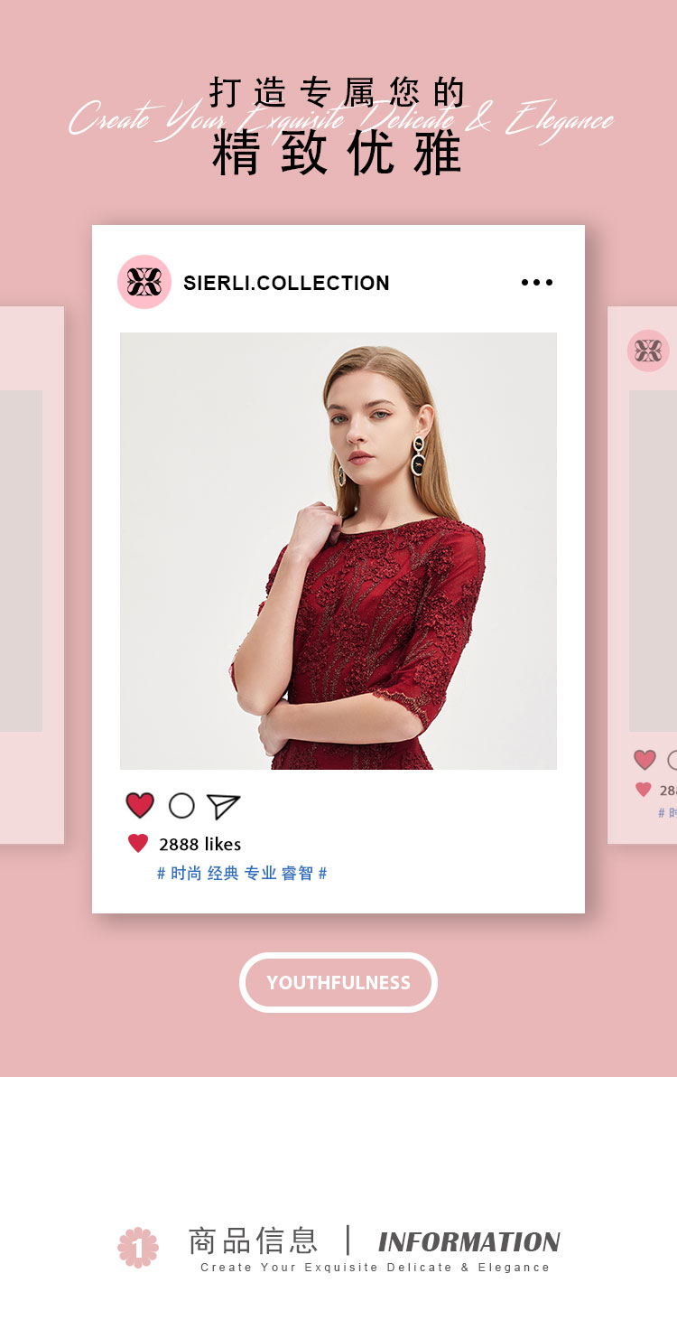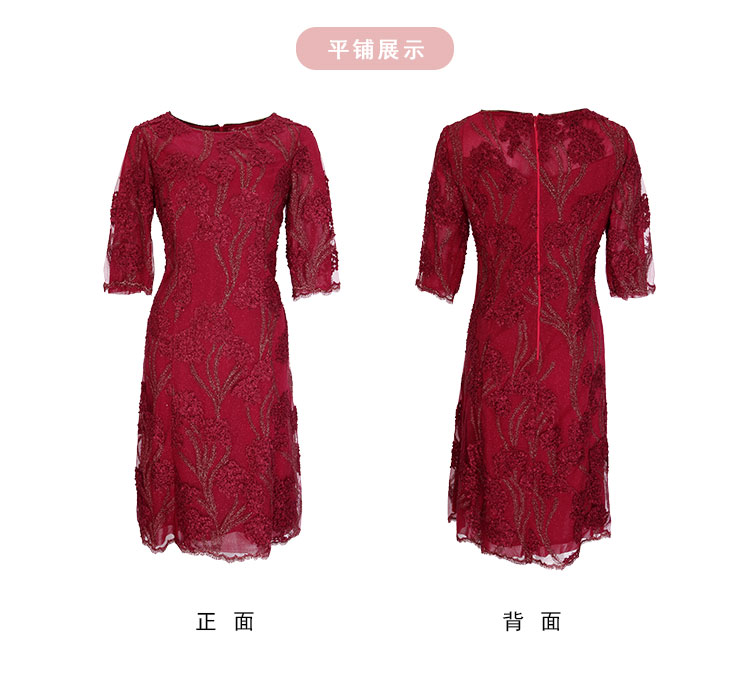 商品名称:春夏圆领中袖立体绣花优雅气质宴会场合礼服连衣裙 076447