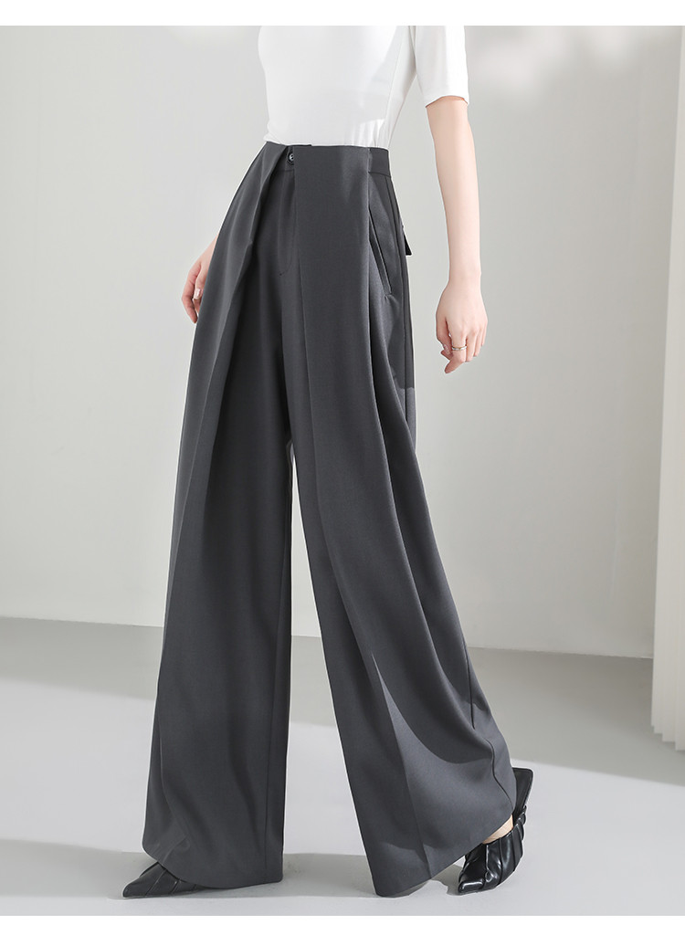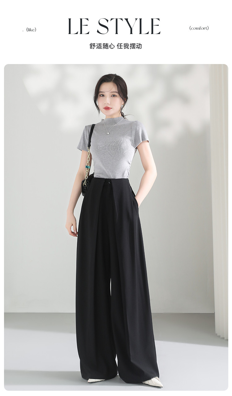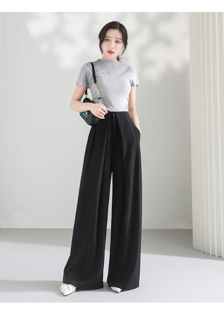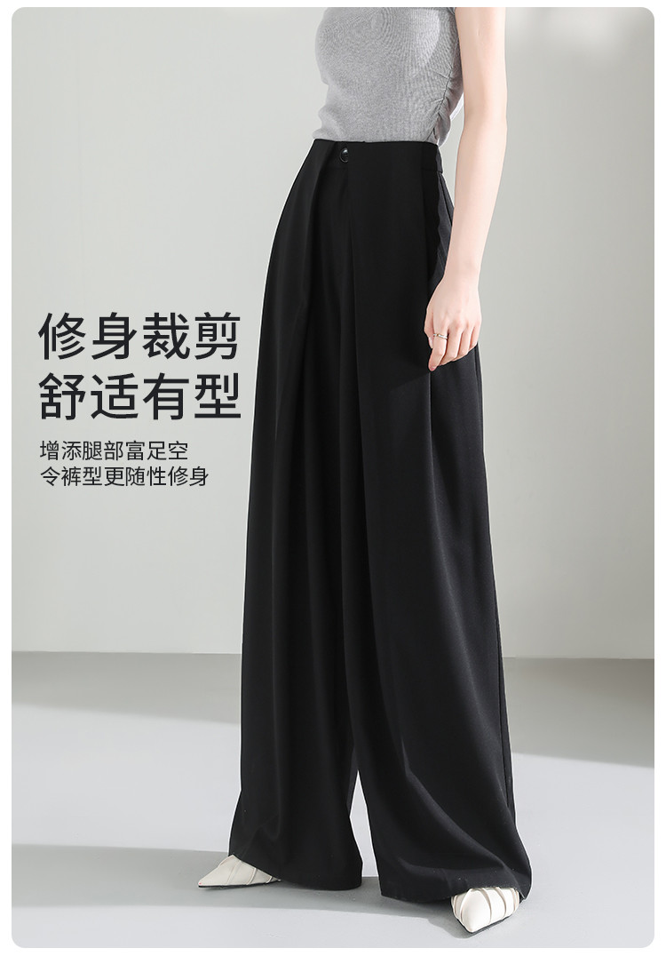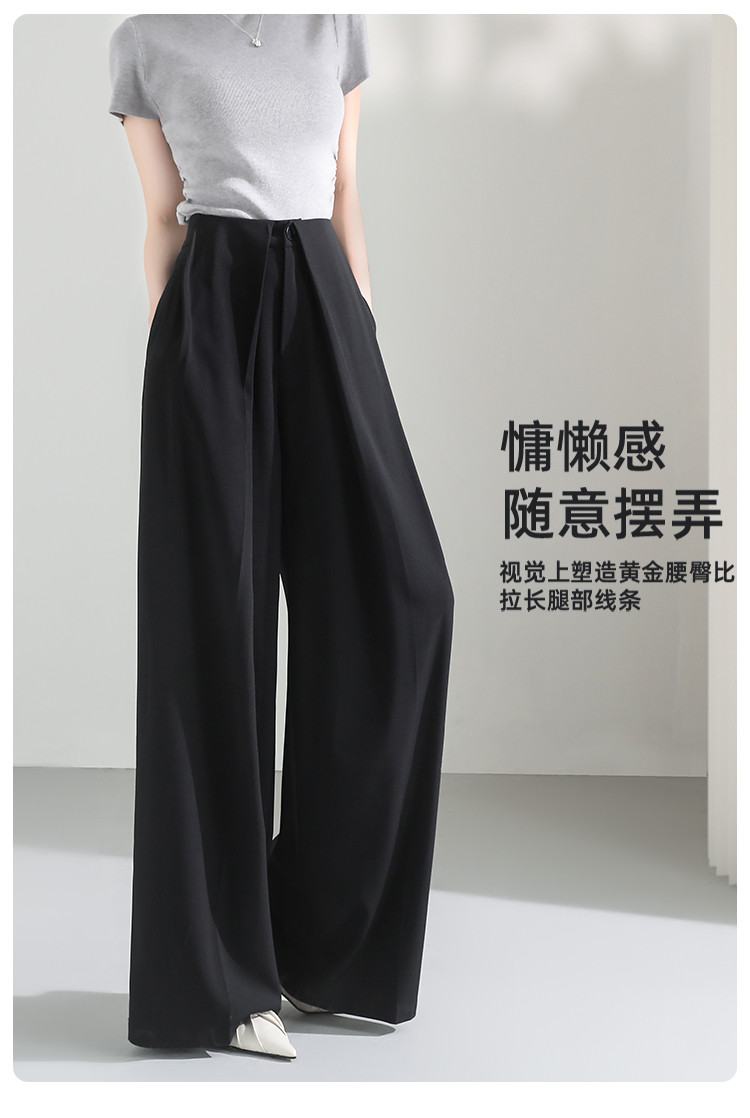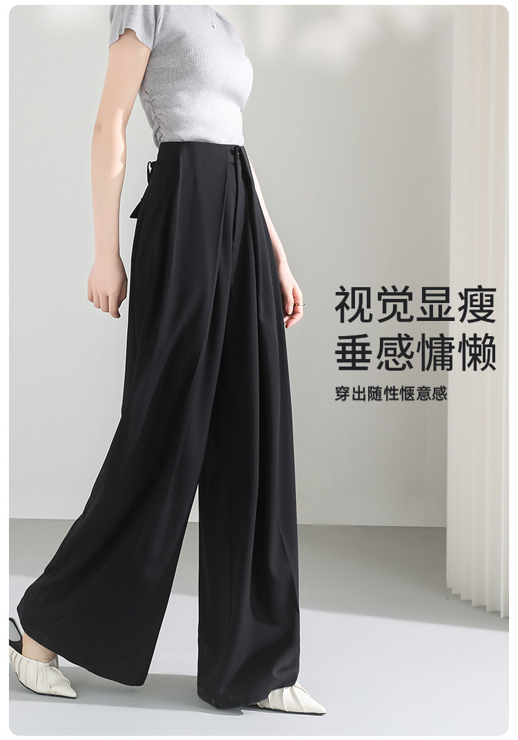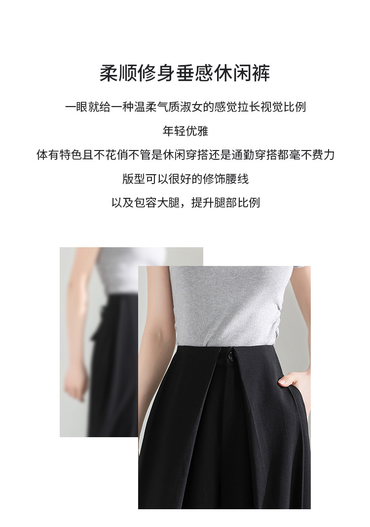 商品名称:【随性慵懒】夏季透气薄款百搭设计感阔腿裤纯色高腰气质休闲裤女 115871