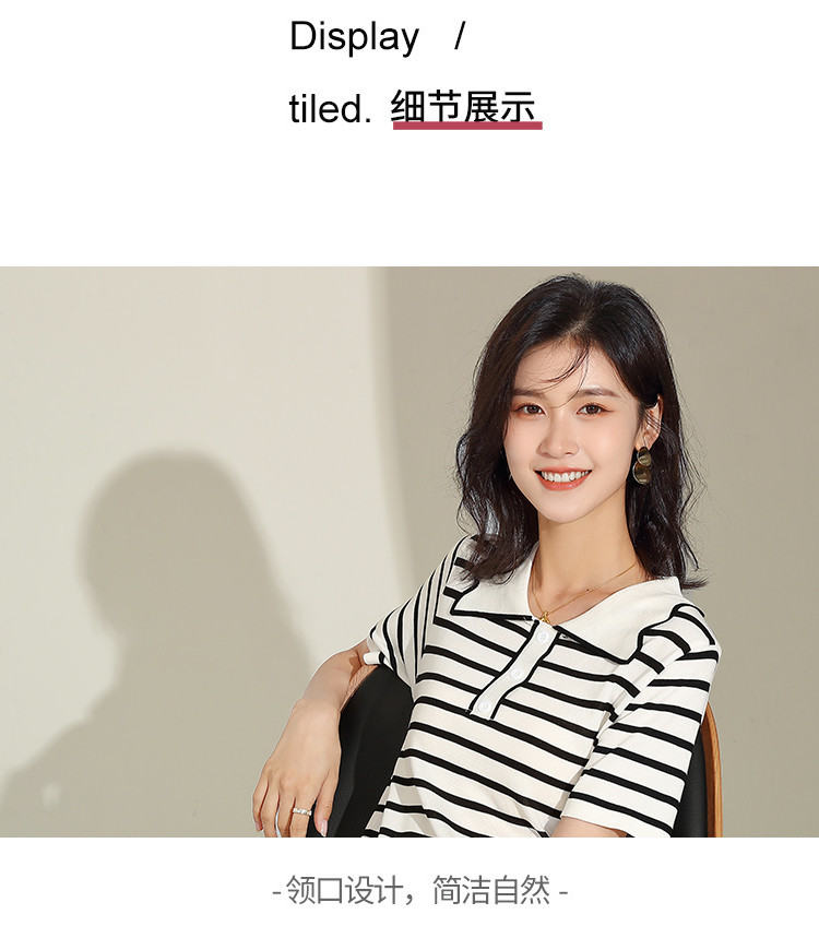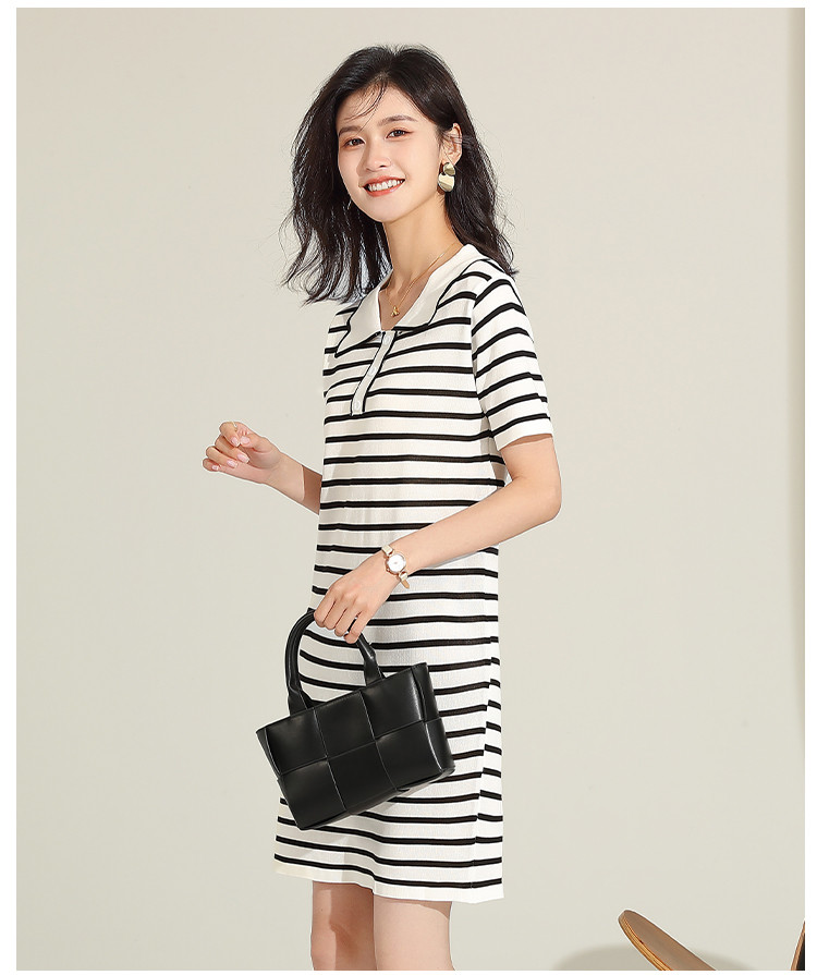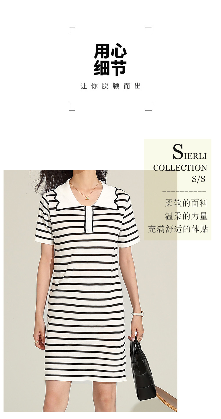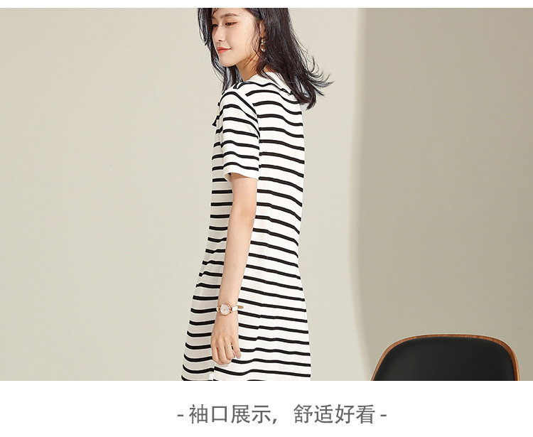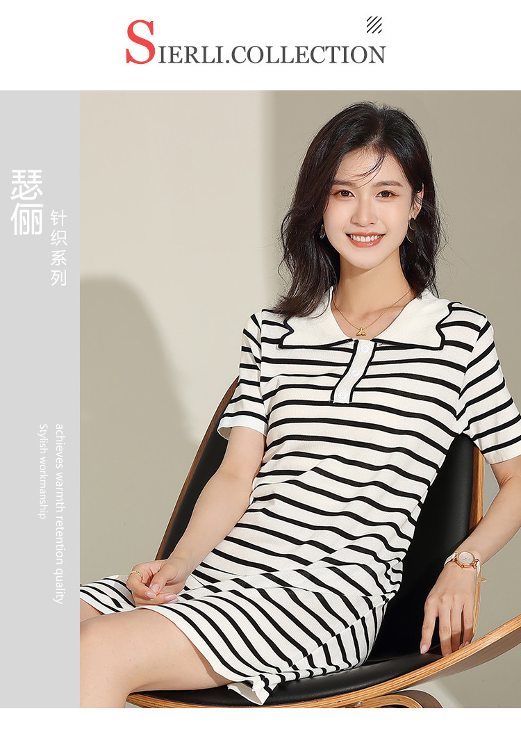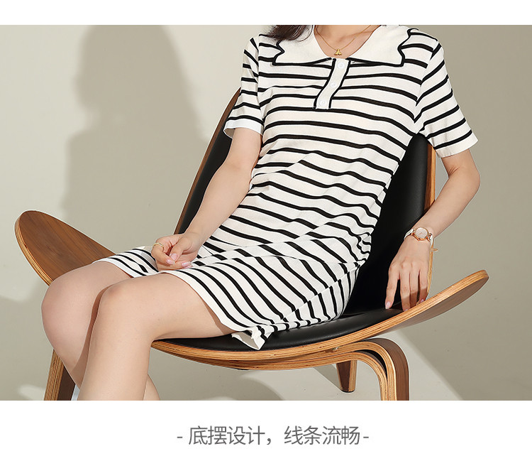商品名称:夏季连衣裙休闲风直筒连衣裙女气质高级感条纹拼色翻领连衣裙短 558559