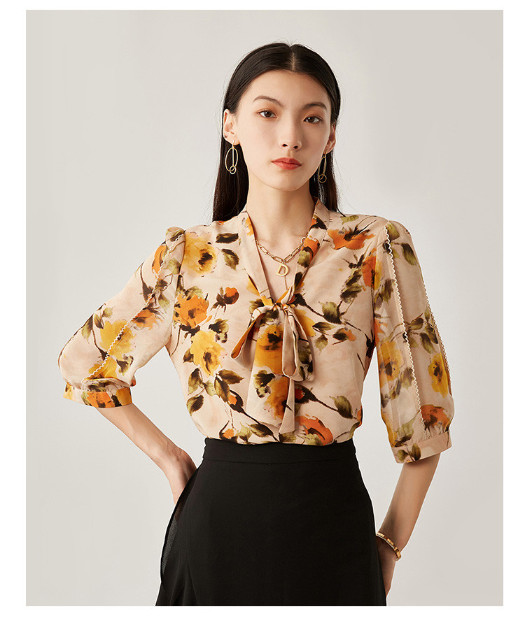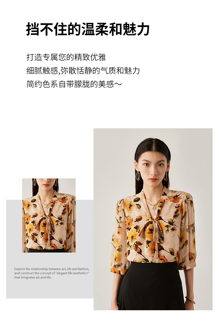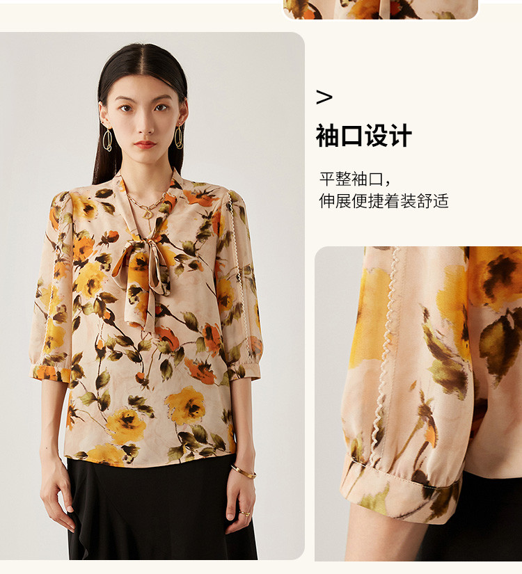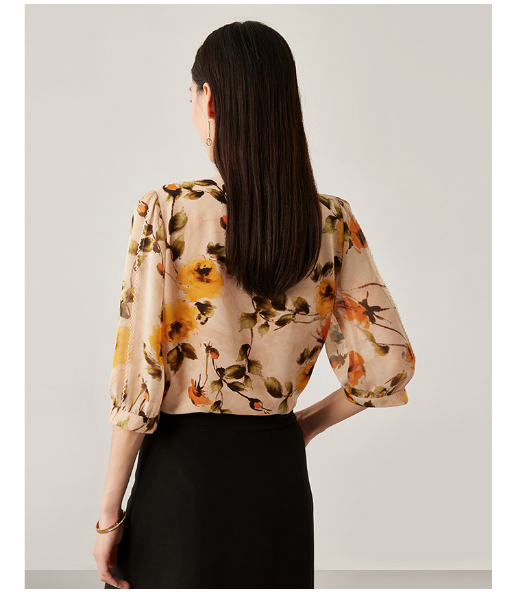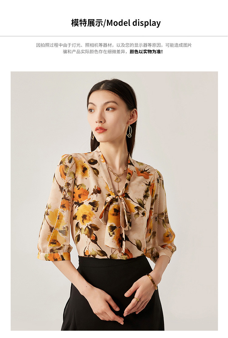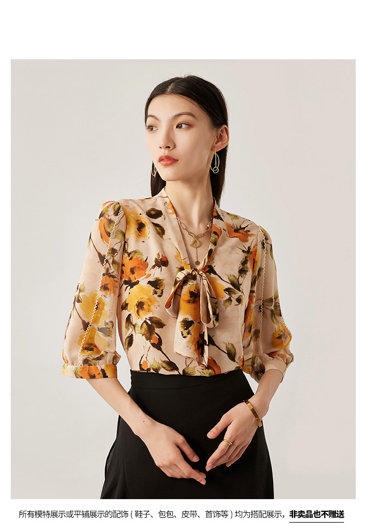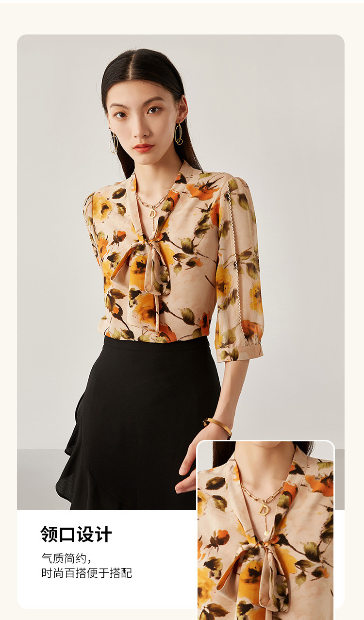 商品名称:【复古撞色印花衬衫】夏季新款女休闲田园风系带领七分袖上衣 139615