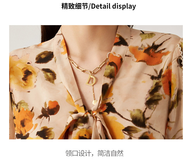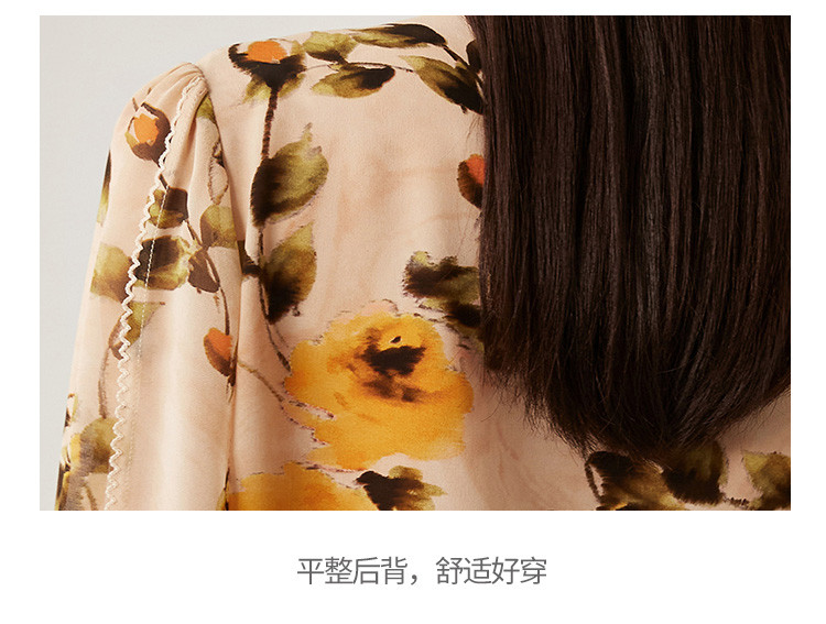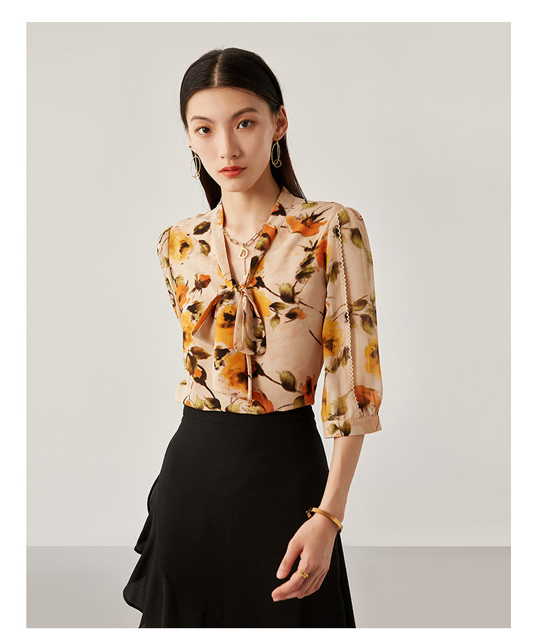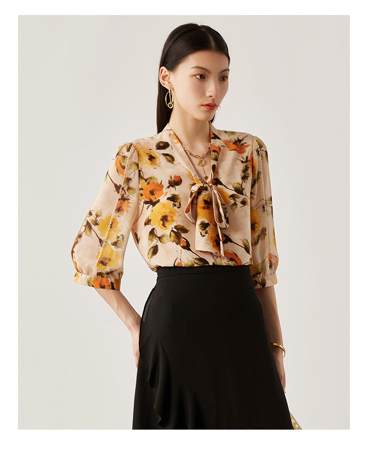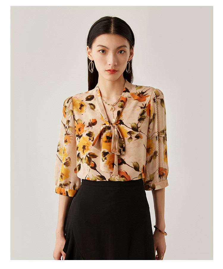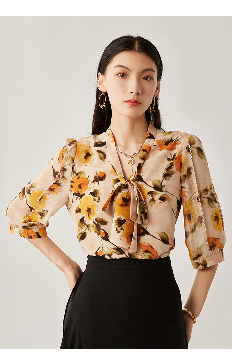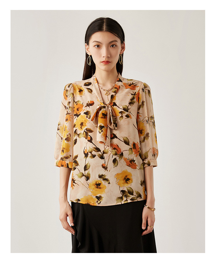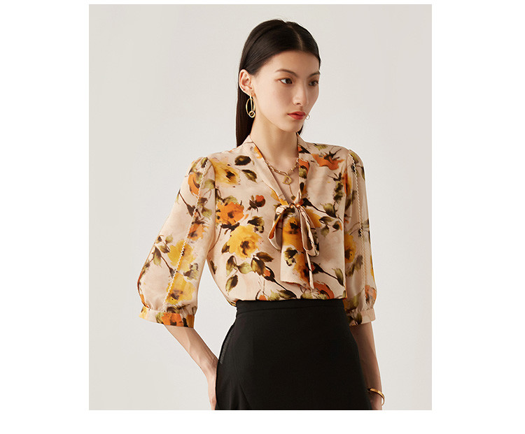 商品名称:【复古撞色印花衬衫】夏季新款女休闲田园风系带领七分袖上衣 139615