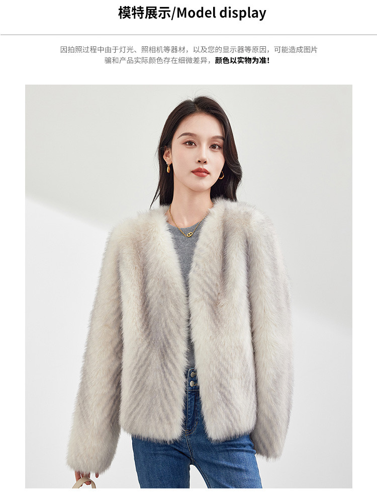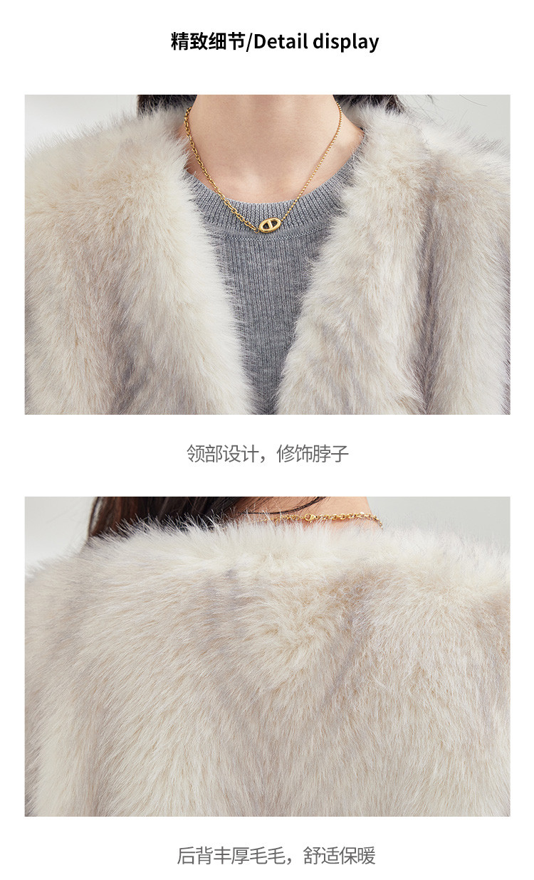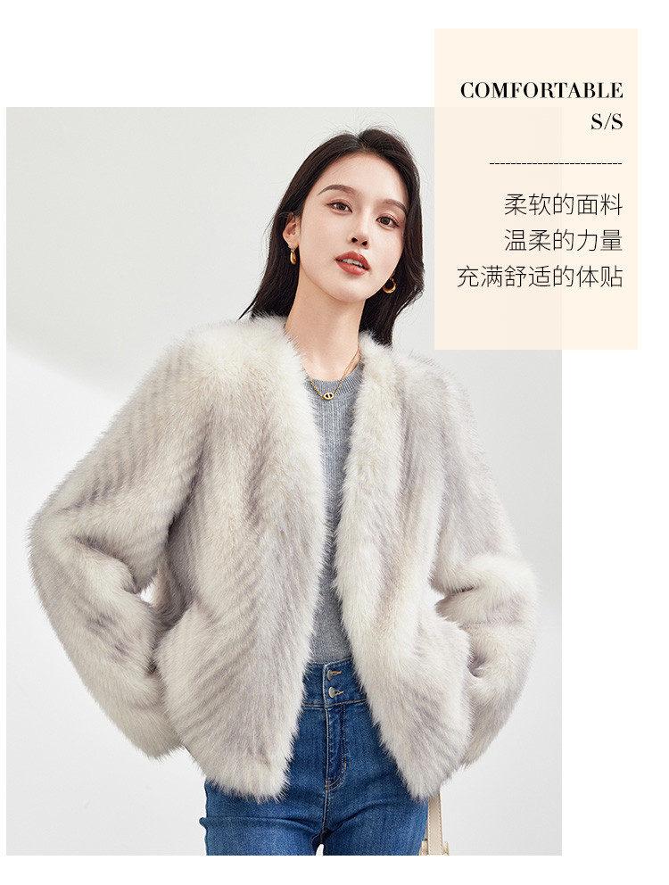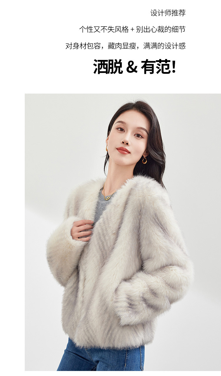 商品名称:冬季时尚气质优雅保暖V领仿貂绒环保皮草女式拼色休闲仿皮草外套 585887
