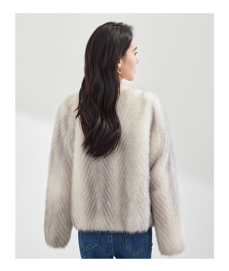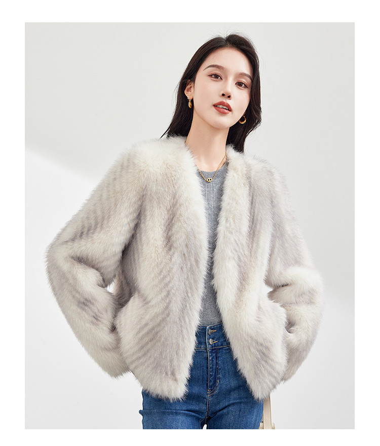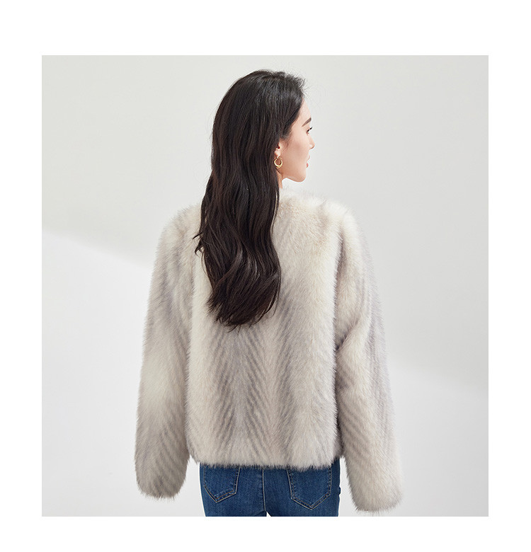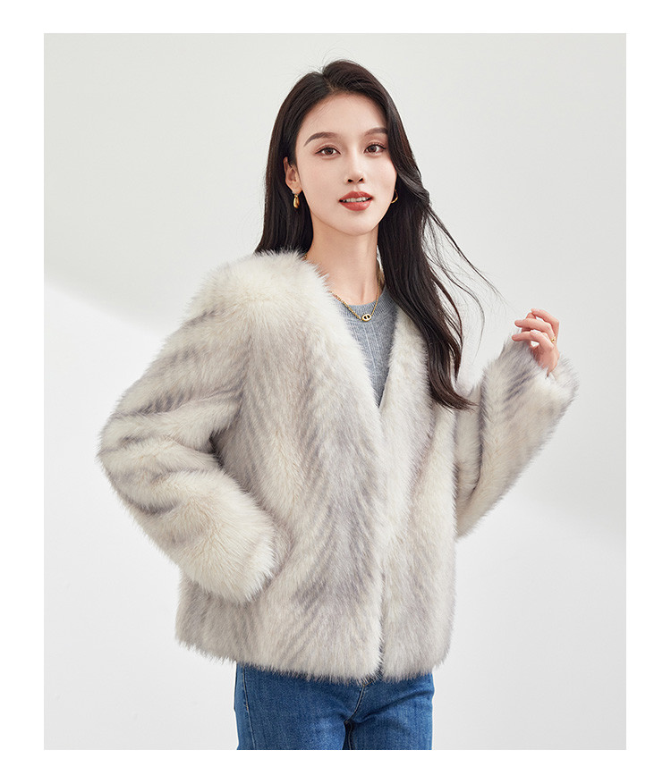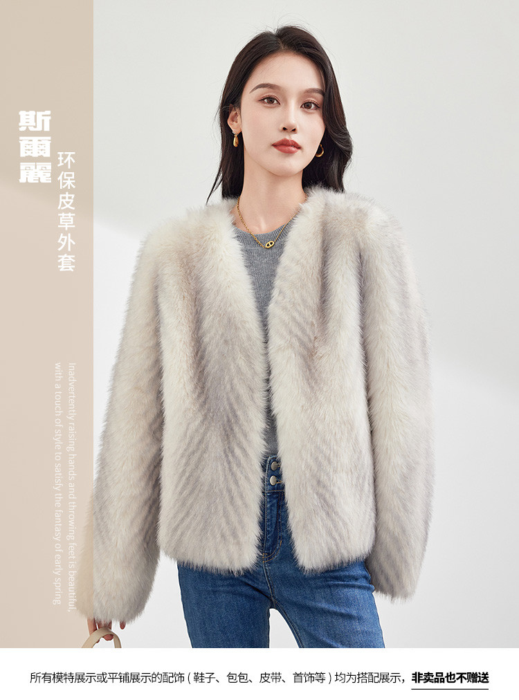 商品名称:冬季时尚气质优雅保暖V领仿貂绒环保皮草女式拼色休闲仿皮草外套 585887