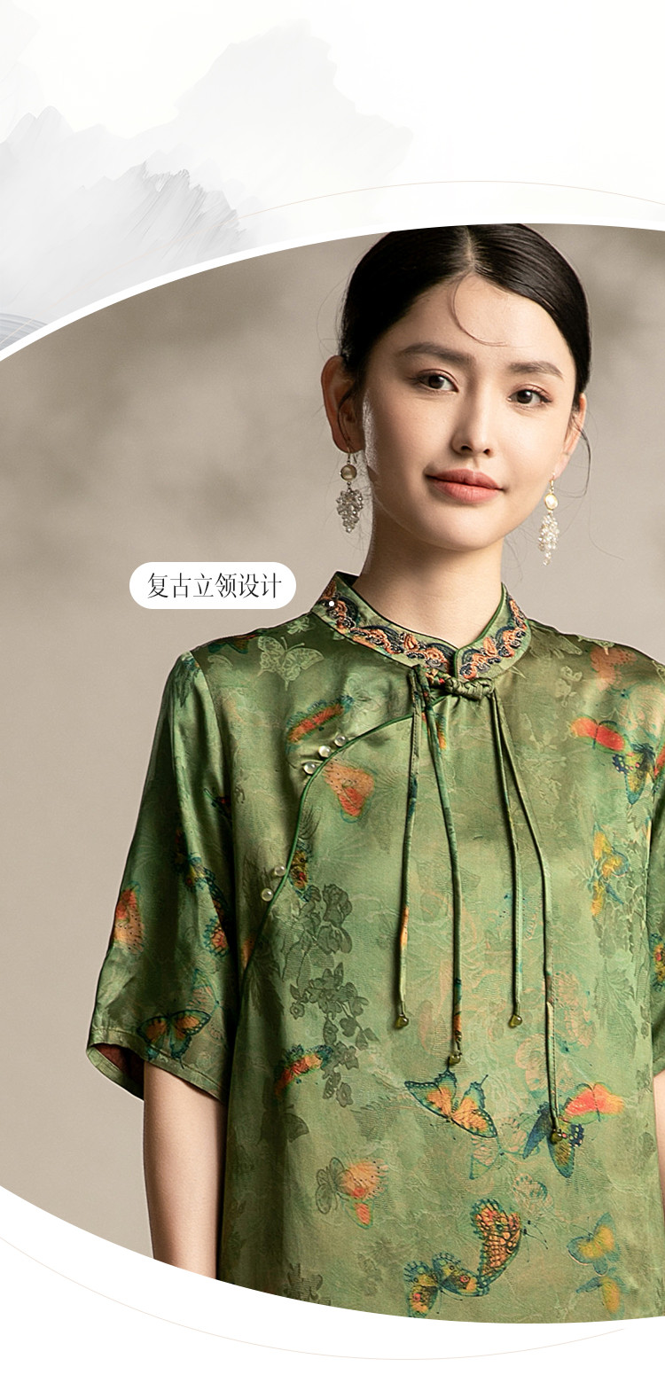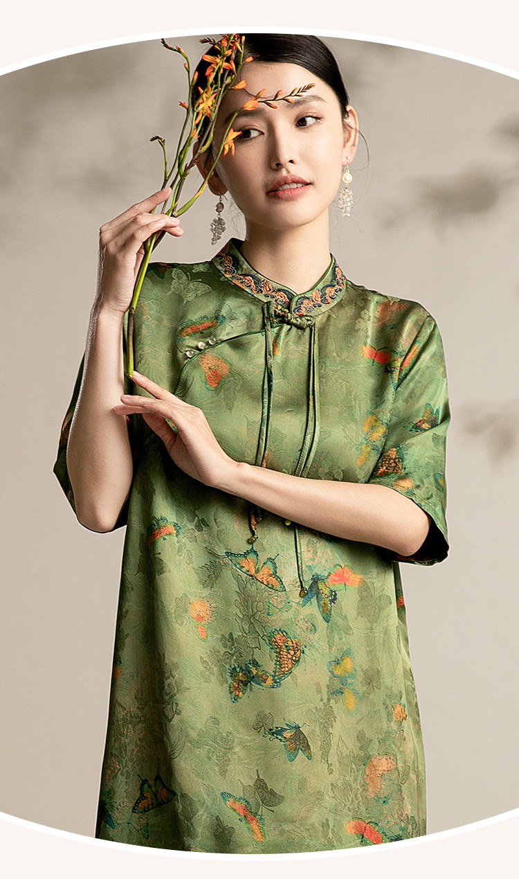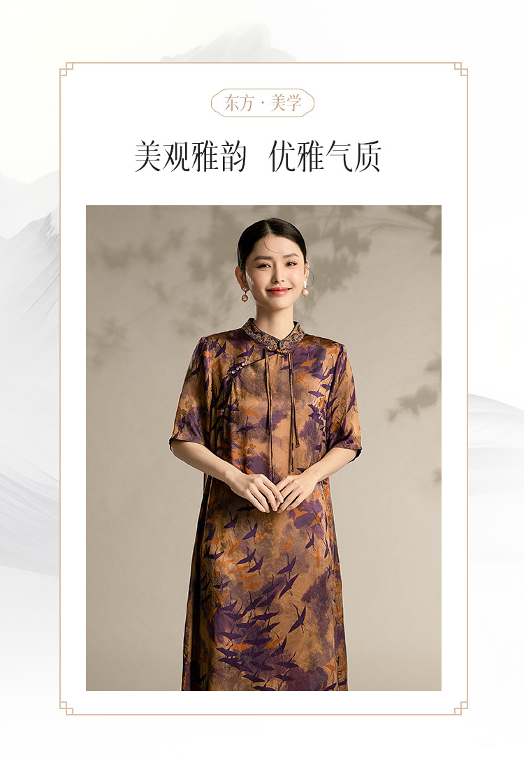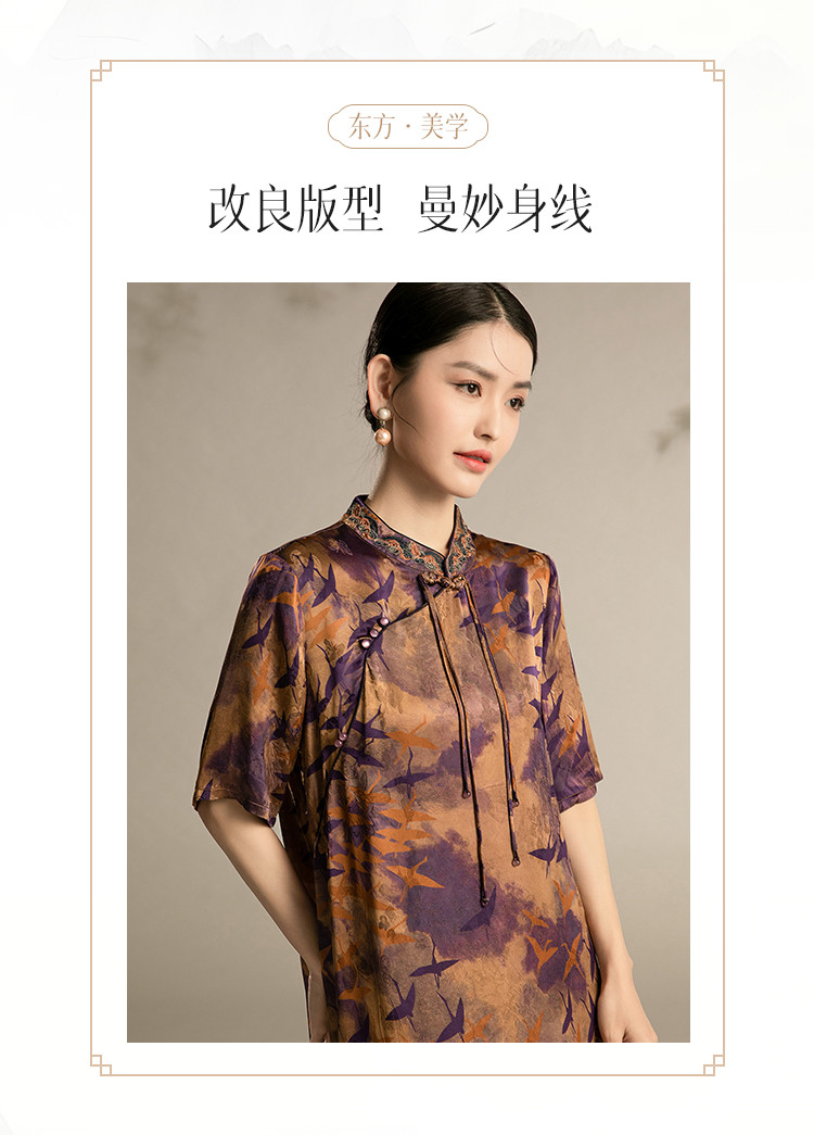 复古国潮风素雅印花旗袍夏季高端气质连衣裙女 042399