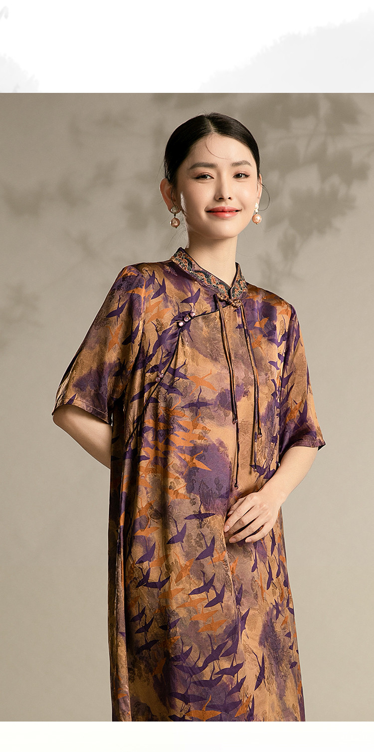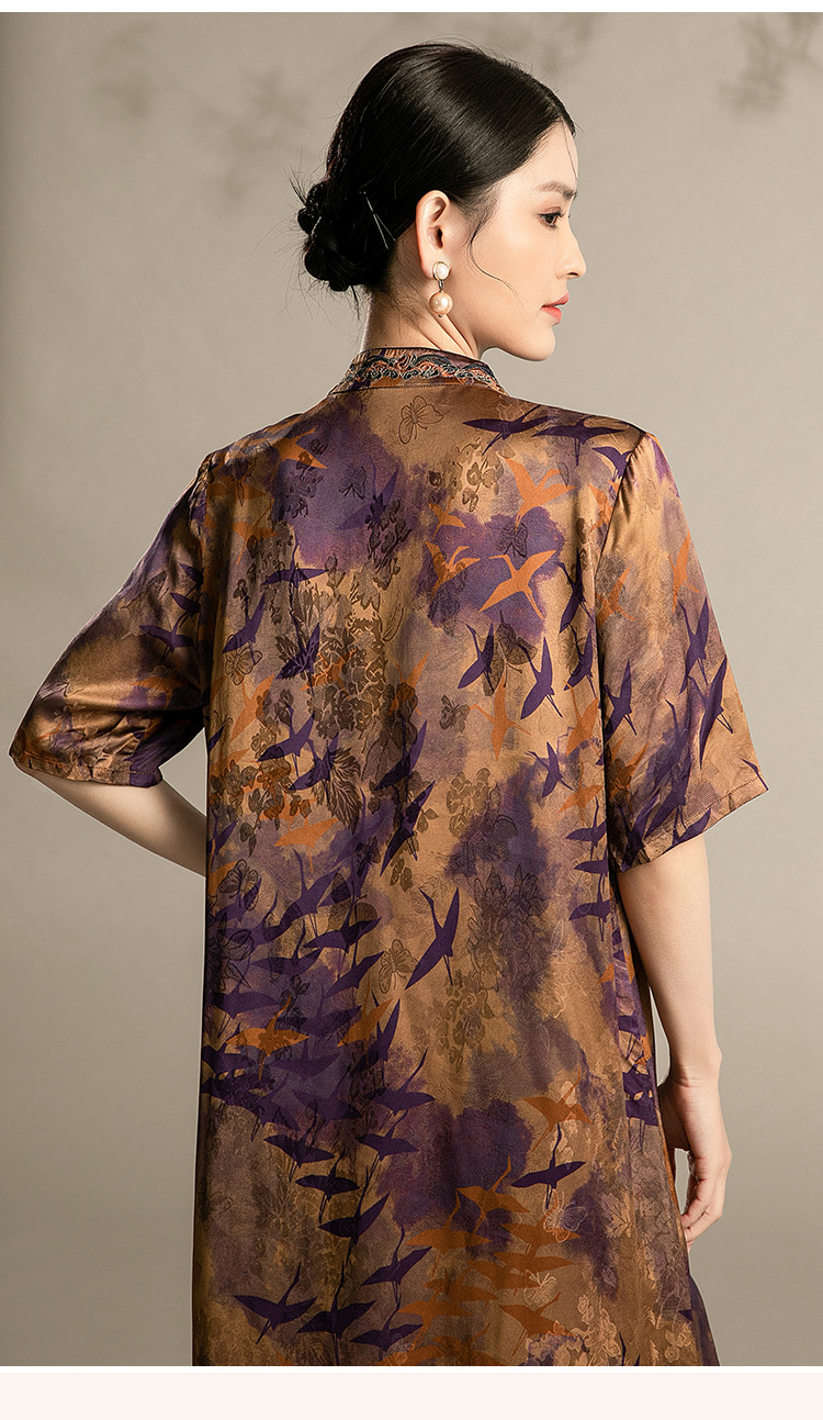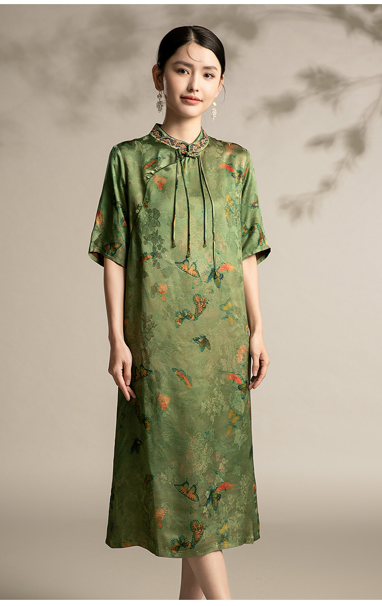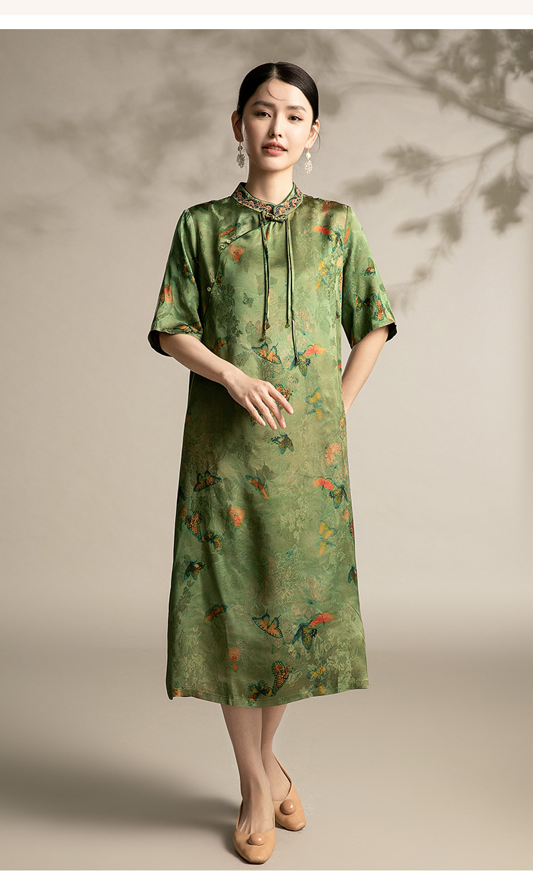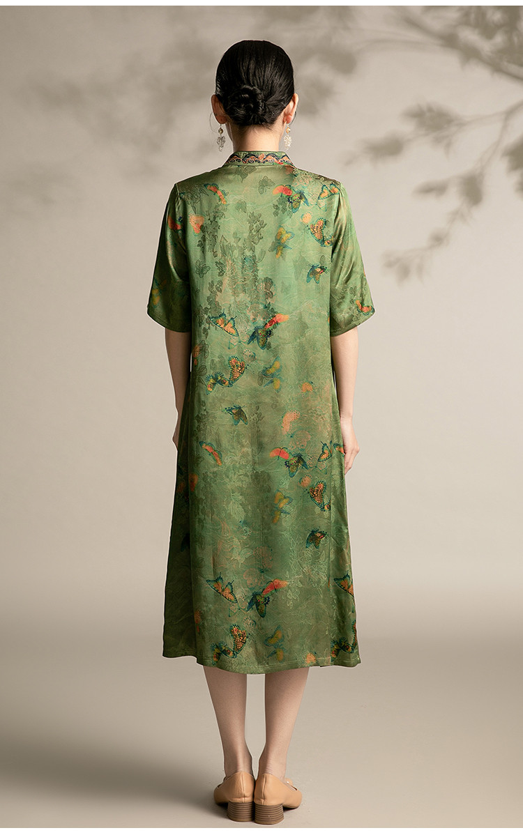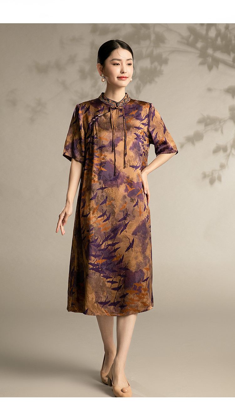 夏季五分袖改良连衣裙中老年国风印花宽松中长裙子女 128159