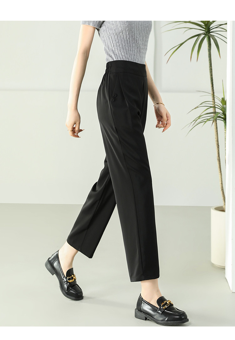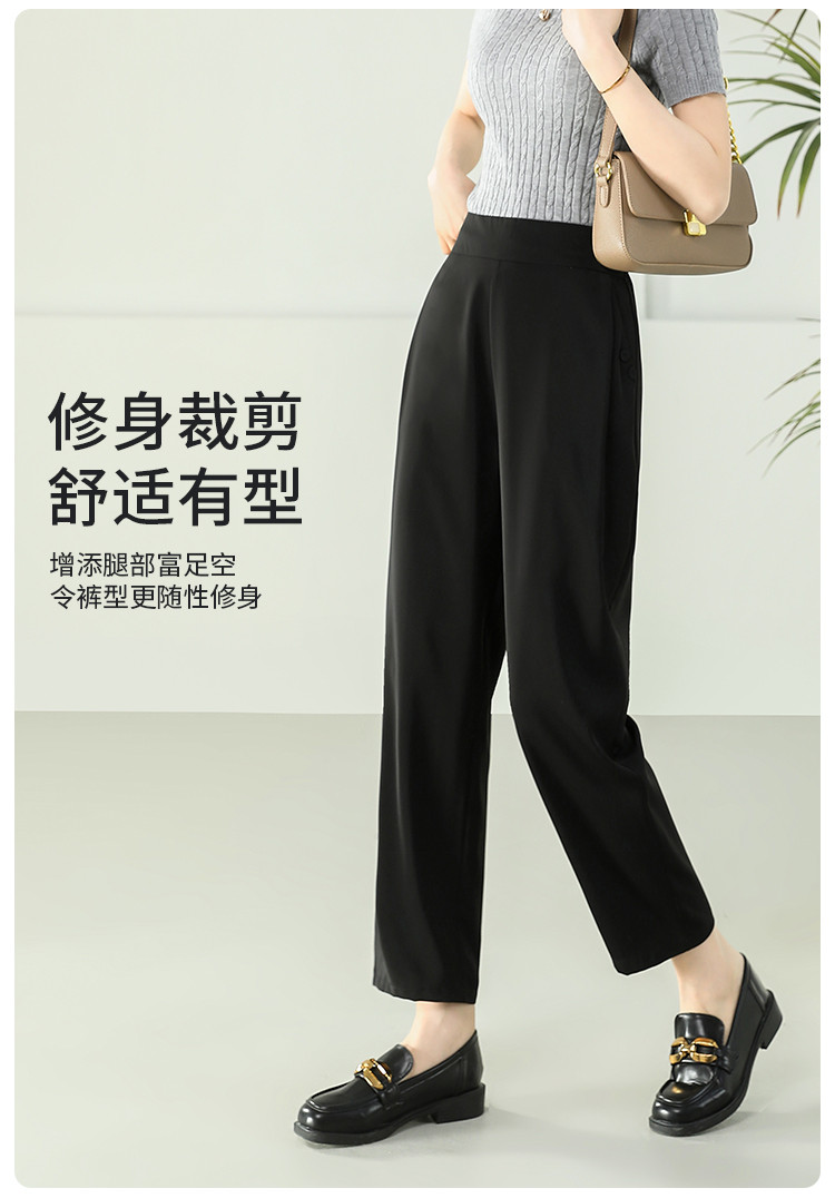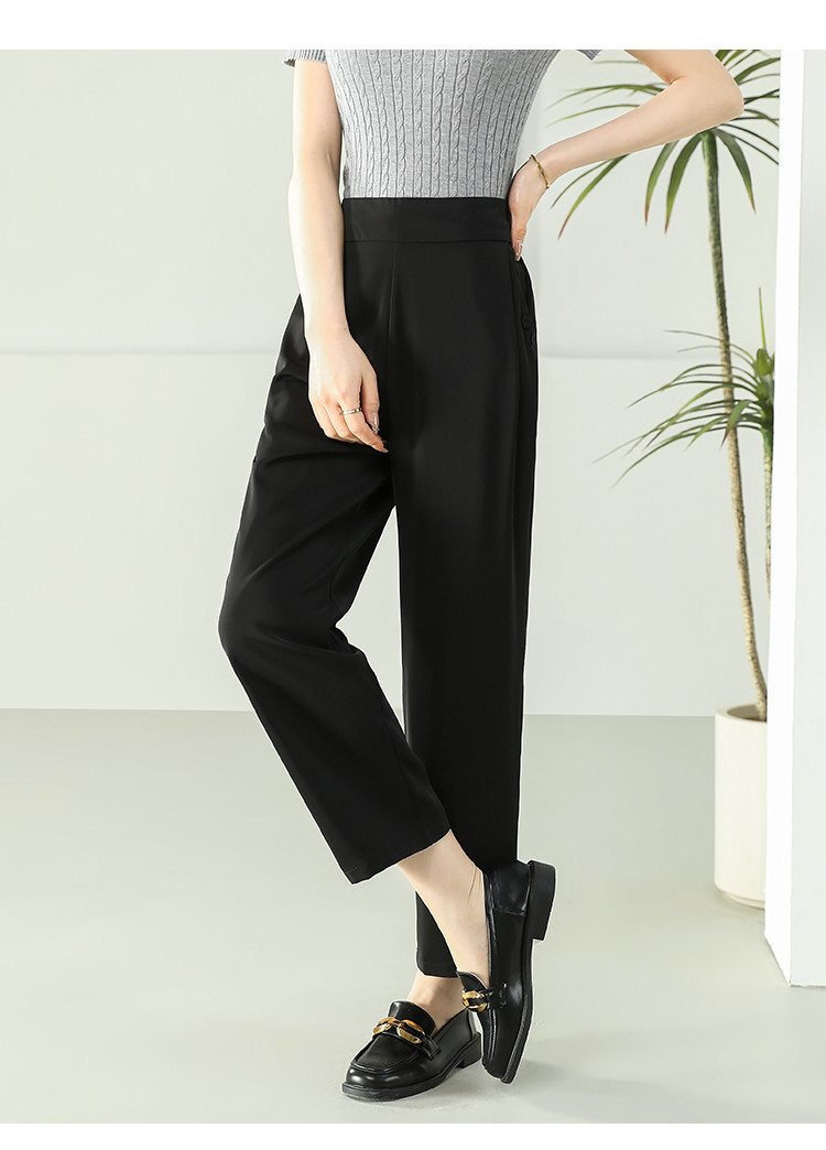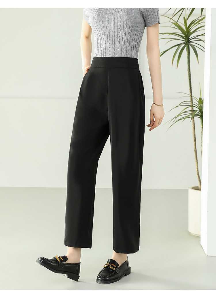 商品名称:女装秋季薄款时尚简约百搭通勤直筒裤纯色大气显瘦休闲裤女 024415