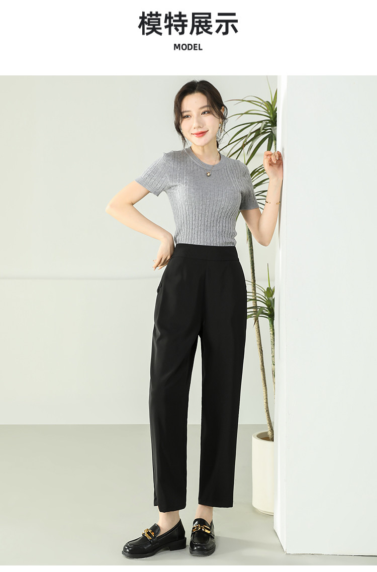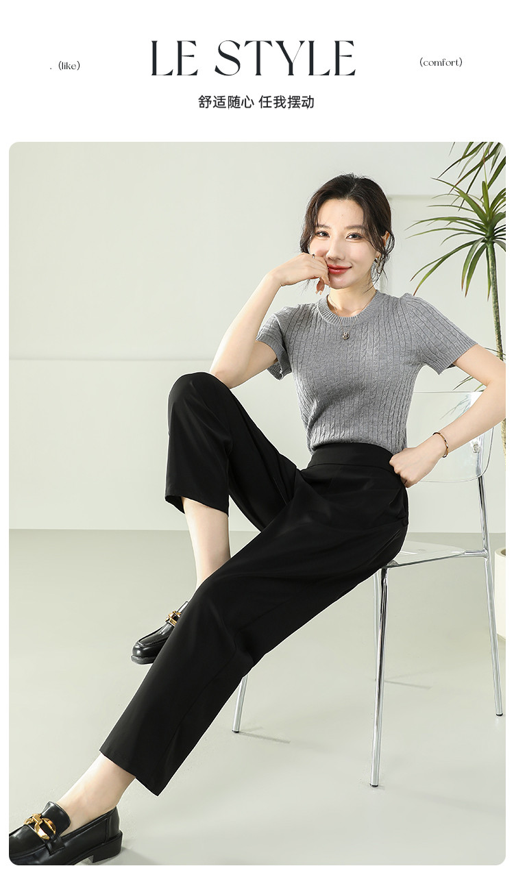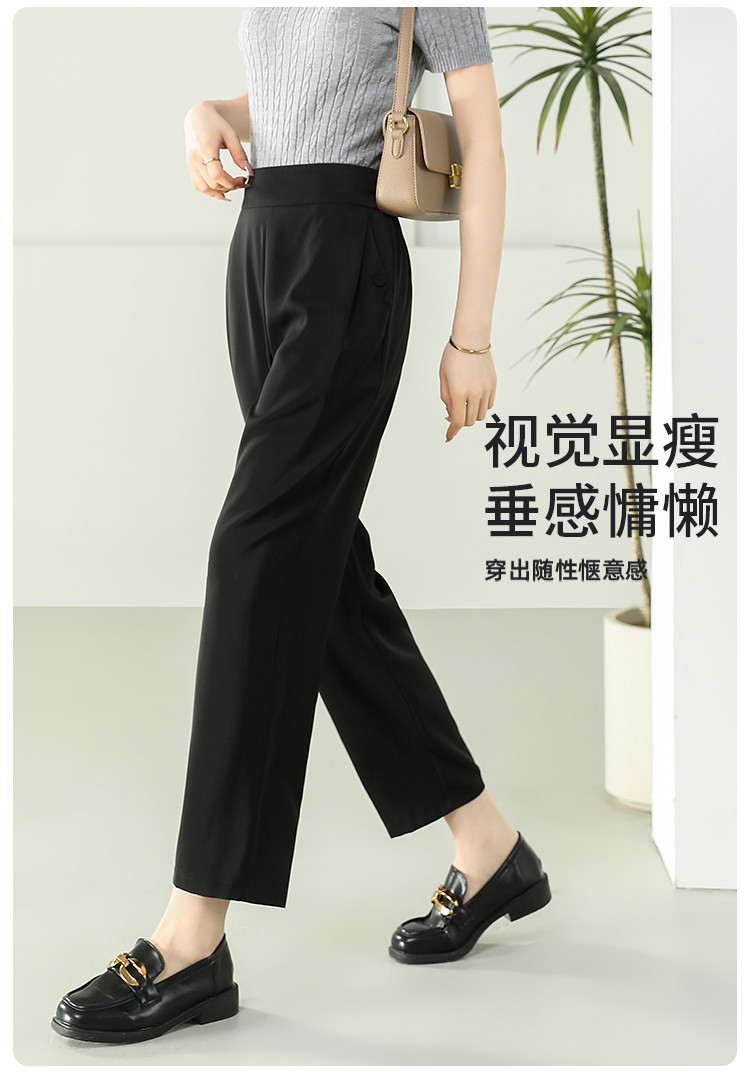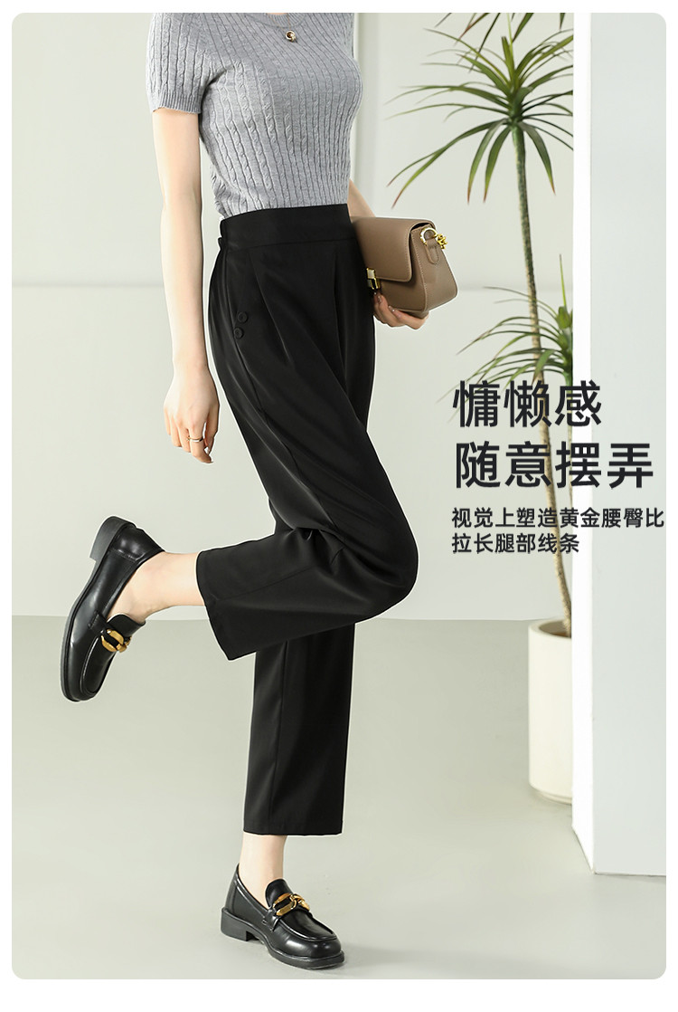 商品名称:女装秋季薄款时尚简约百搭通勤直筒裤纯色大气显瘦休闲裤女 024415