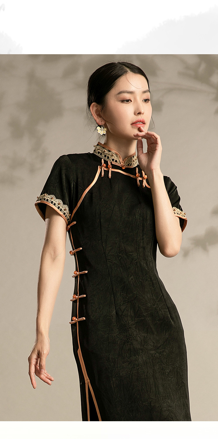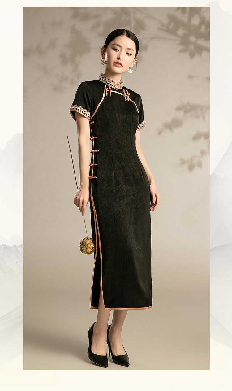 商品名称:春夏新中式改良复古民风高贵日常旗袍修身连衣裙 910047
