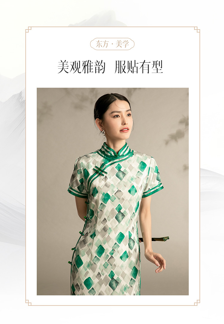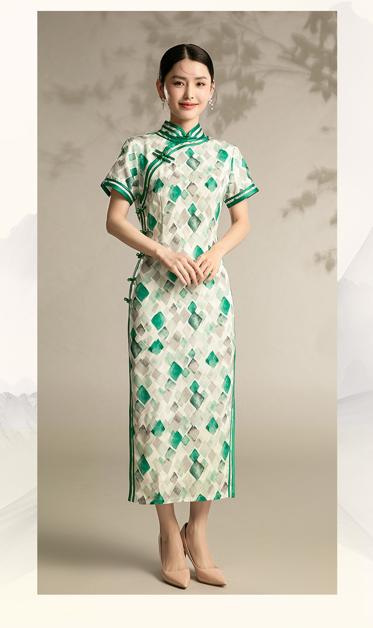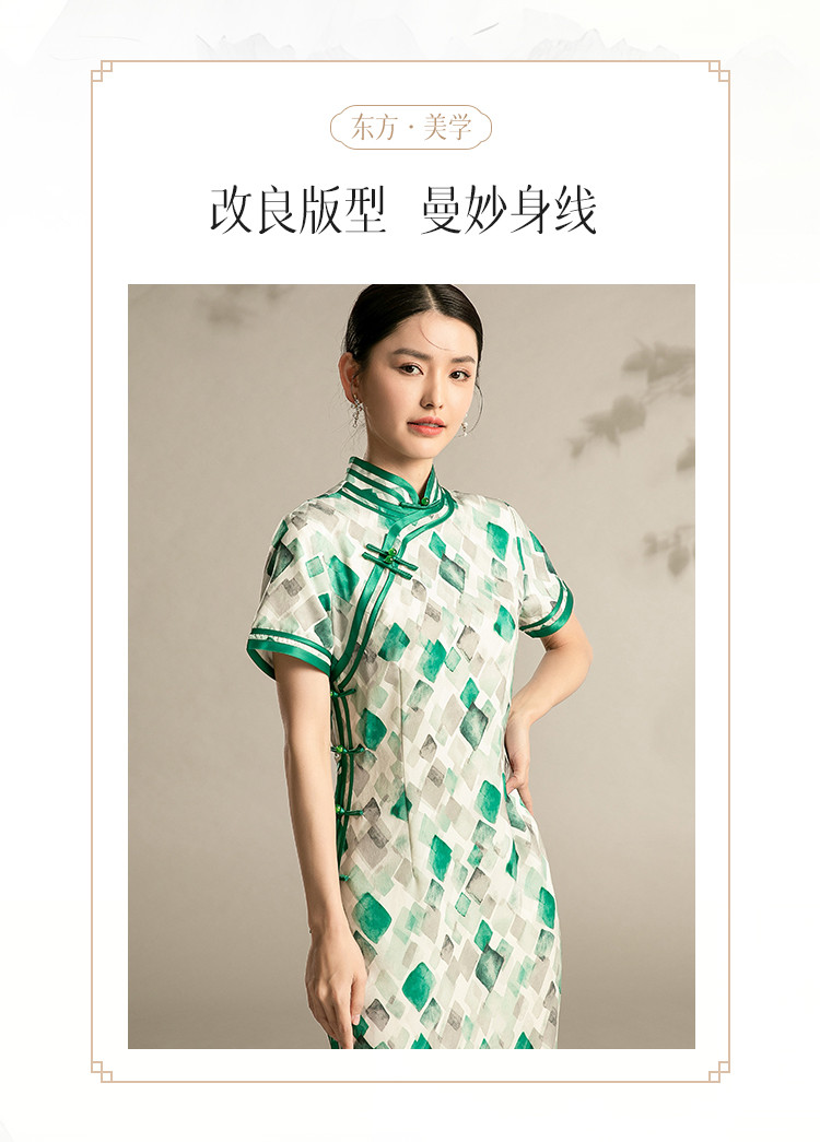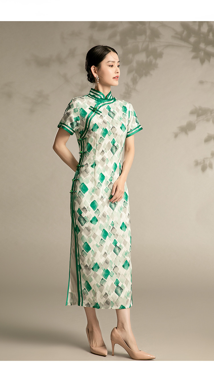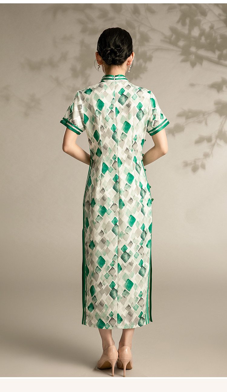 新中式旗袍格子夏季复古民国年轻少女气质改良国风旗袍 889567
