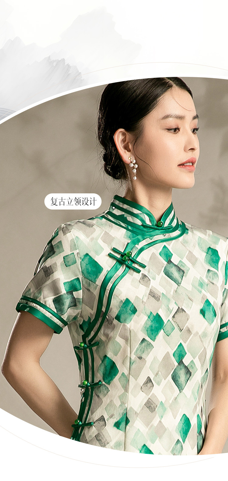 商品名称:新中式旗袍格子夏季复古民国年轻少女气质改良国风旗袍 889567