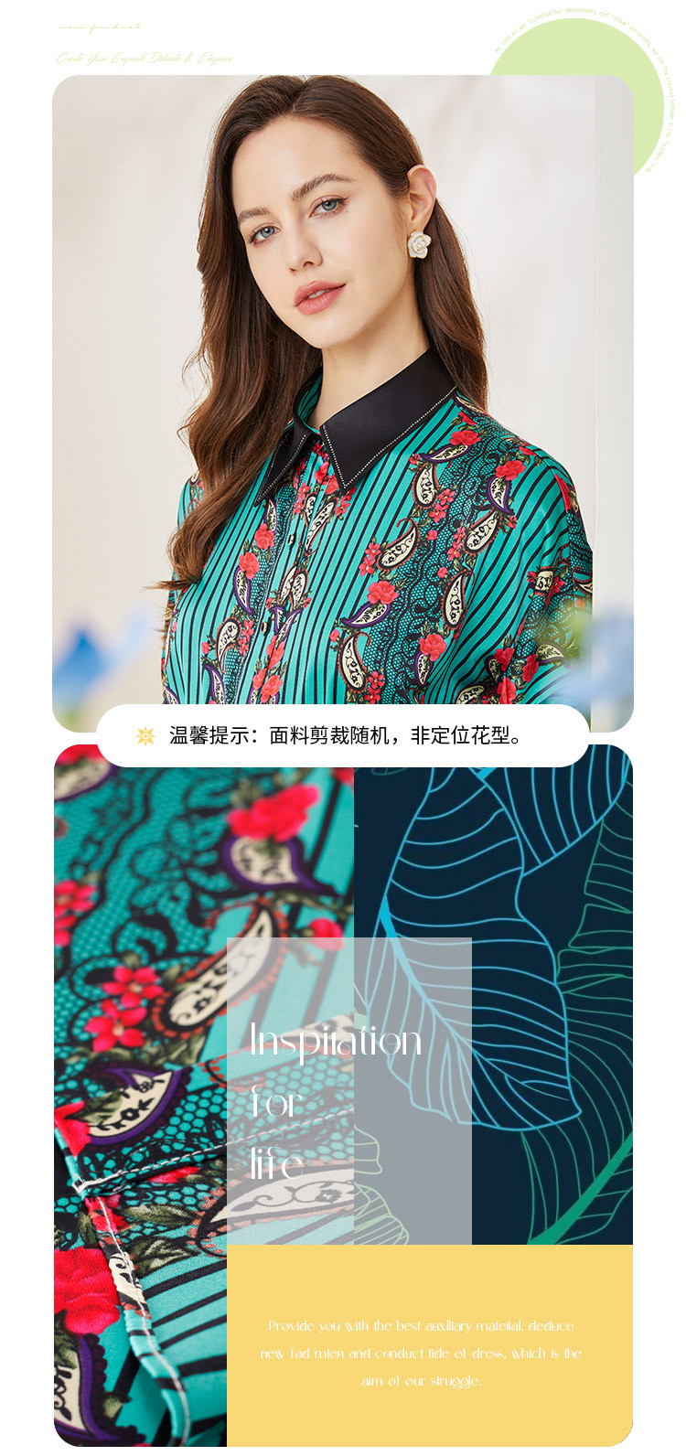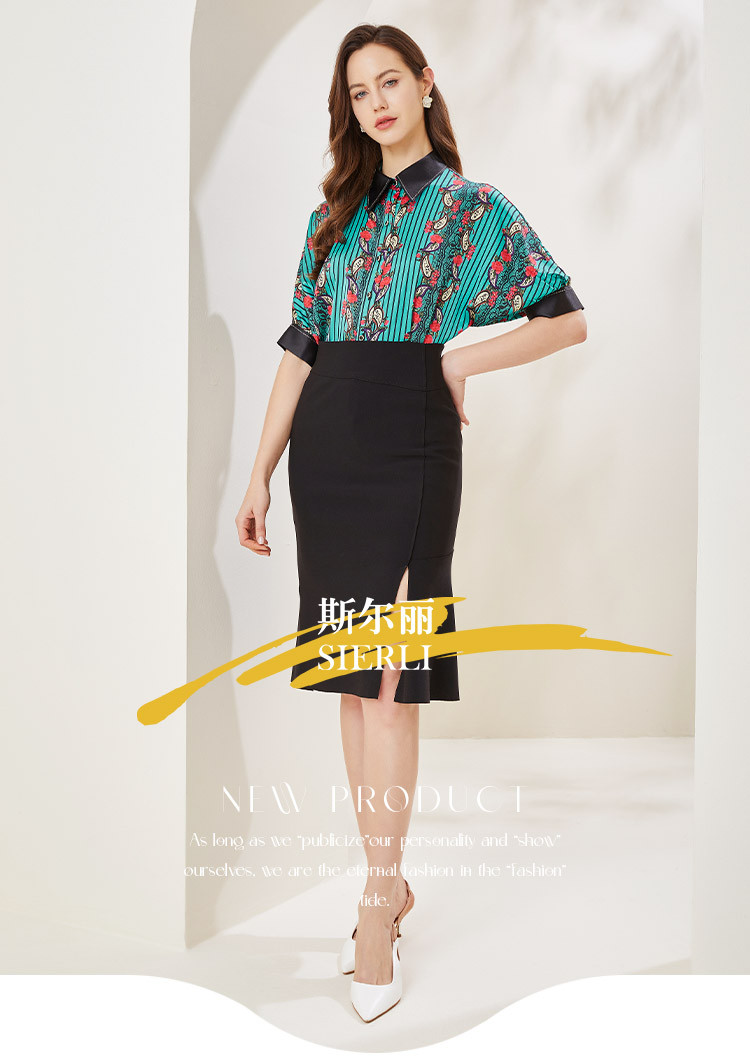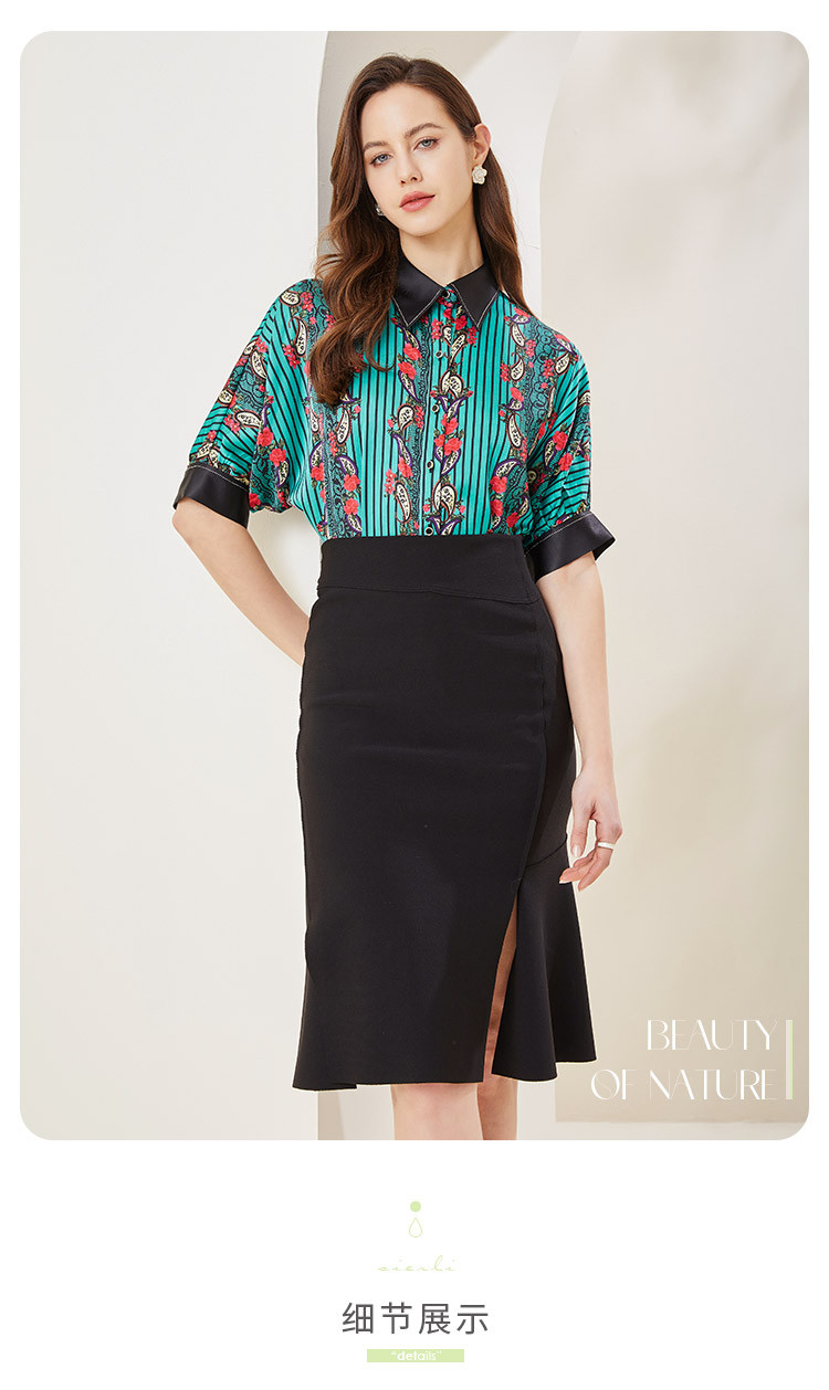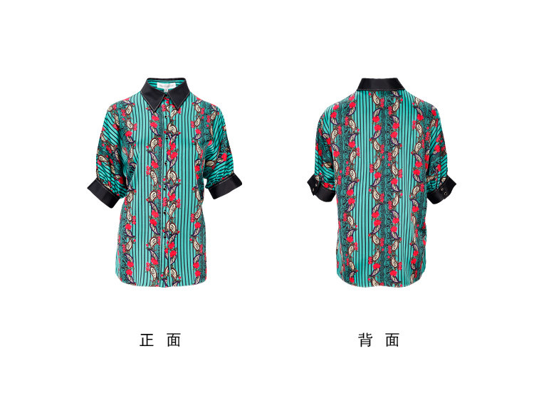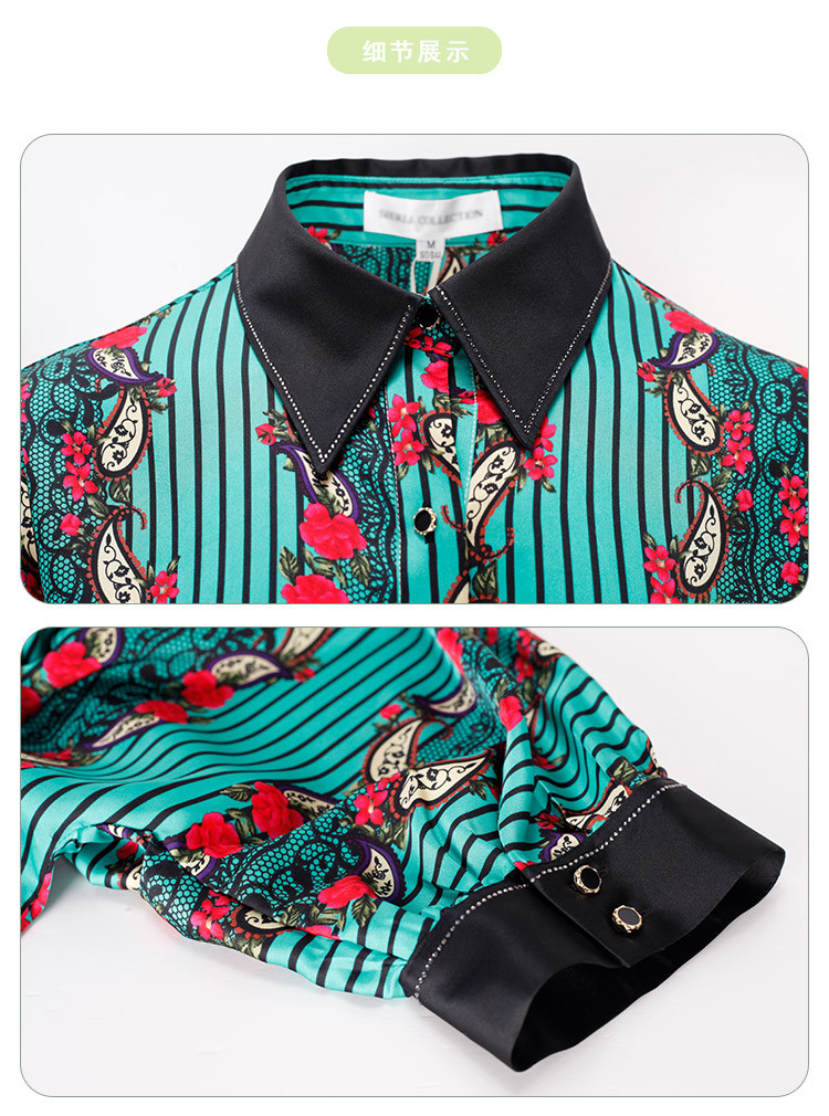 商品名称:商场同款秋季烂漫波西米亚印花撞色宽松5分袖衬衣 556895