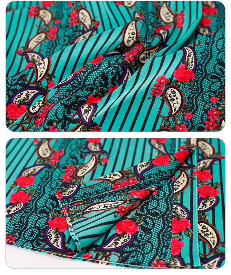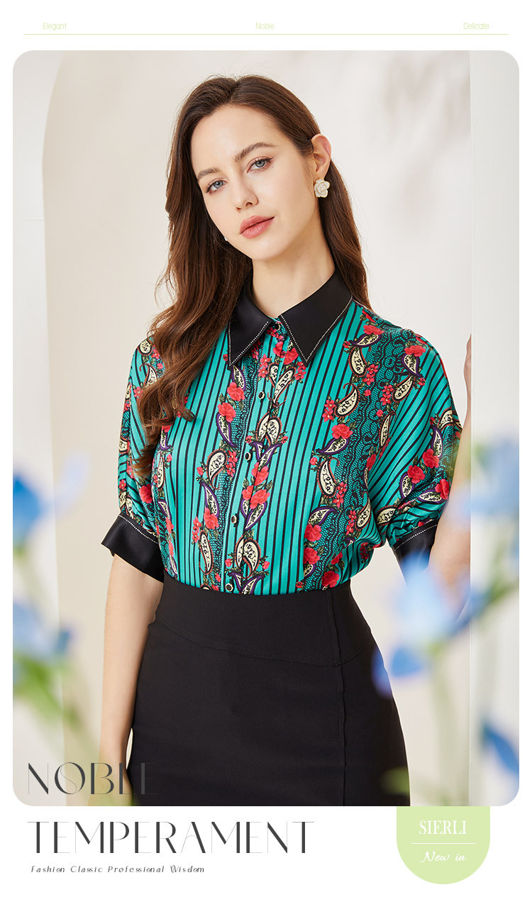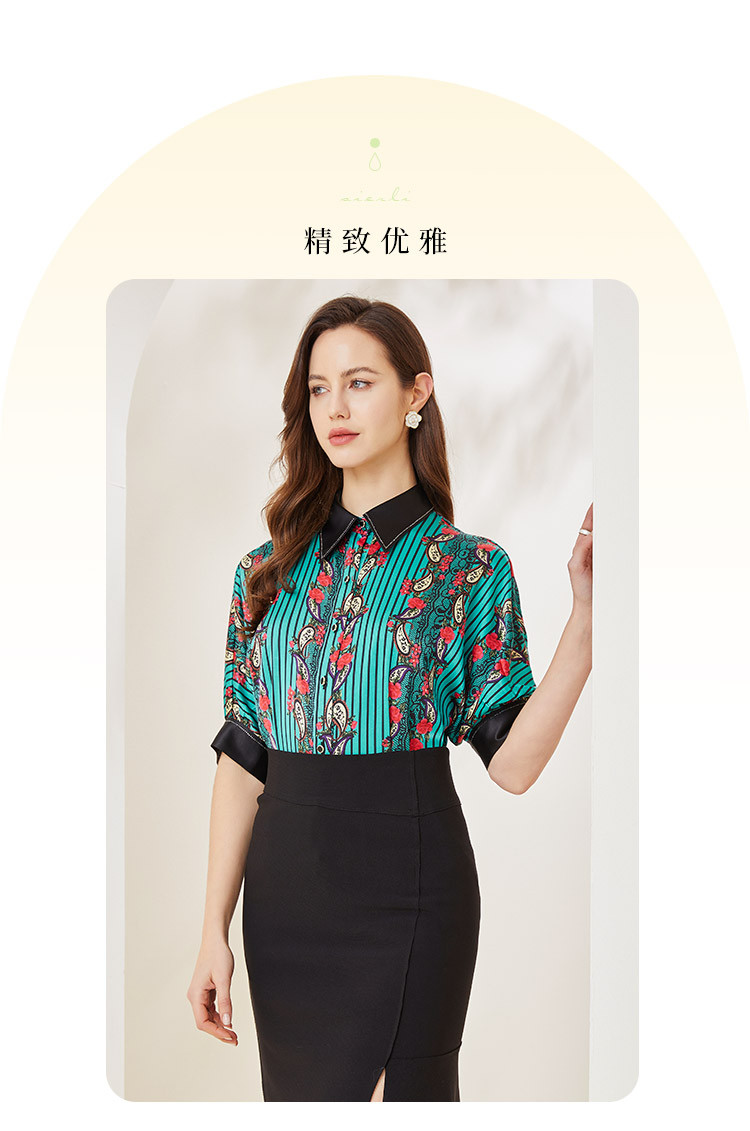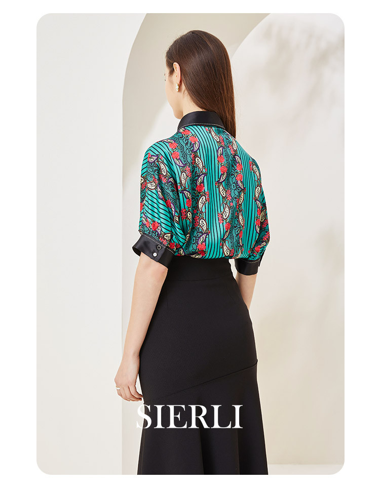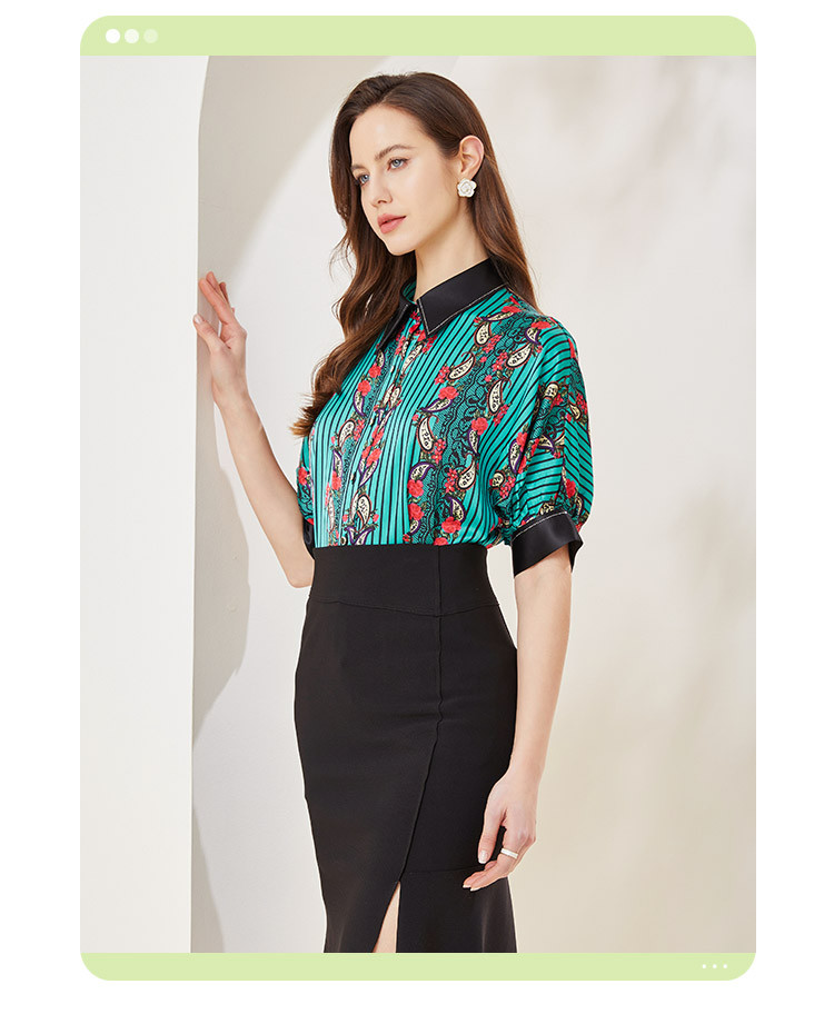 商场同款秋季烂漫波西米亚印花撞色宽松5分袖衬衣 556895