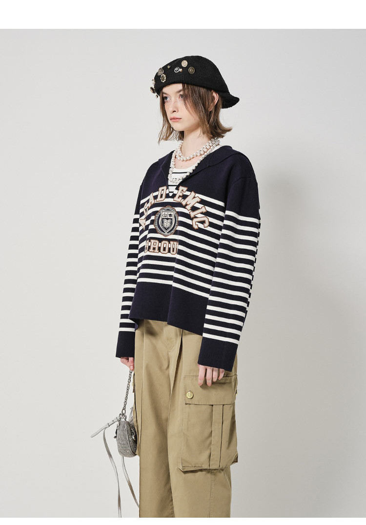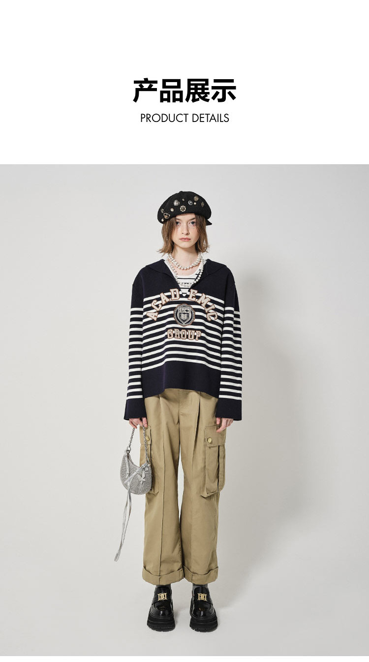 商品名称:地素长袖针织衫春秋专柜院风海军领宽松毛衫上衣女 027467