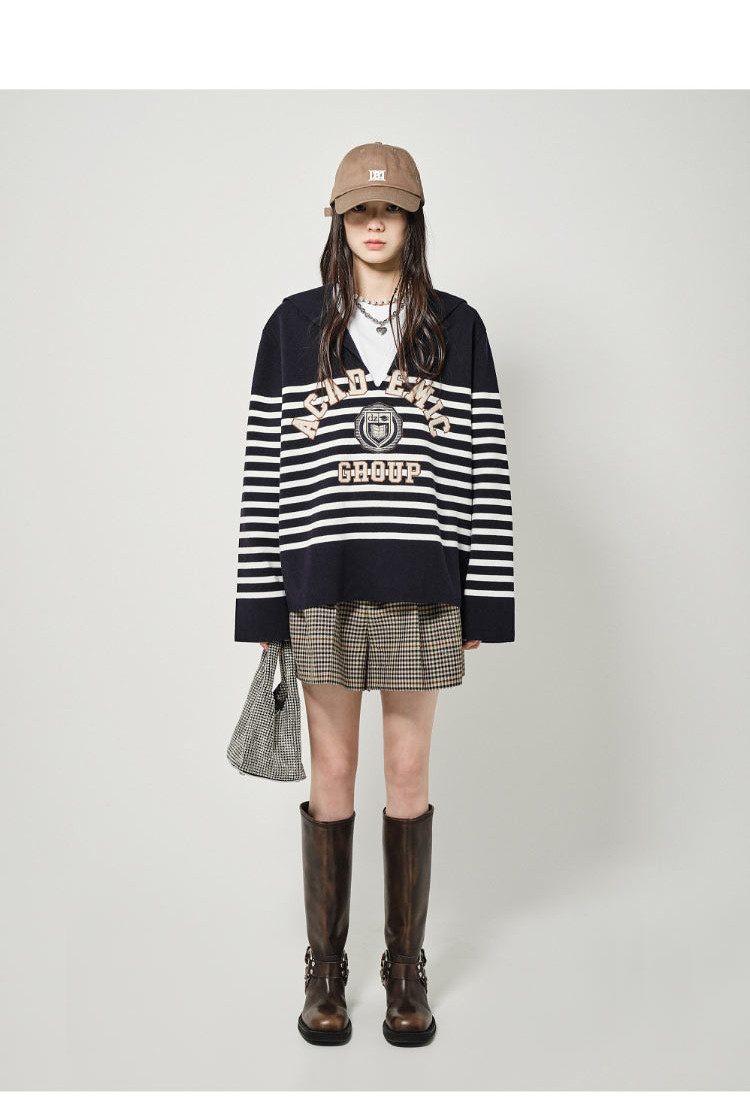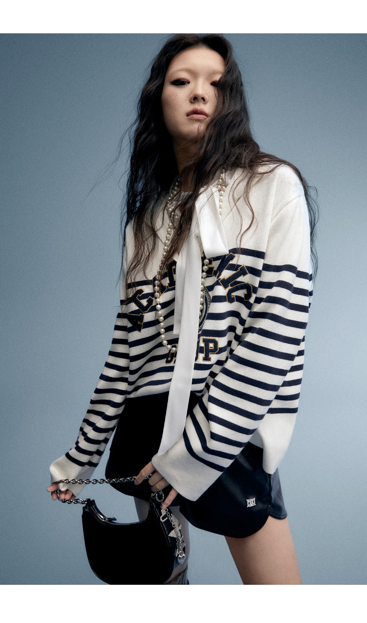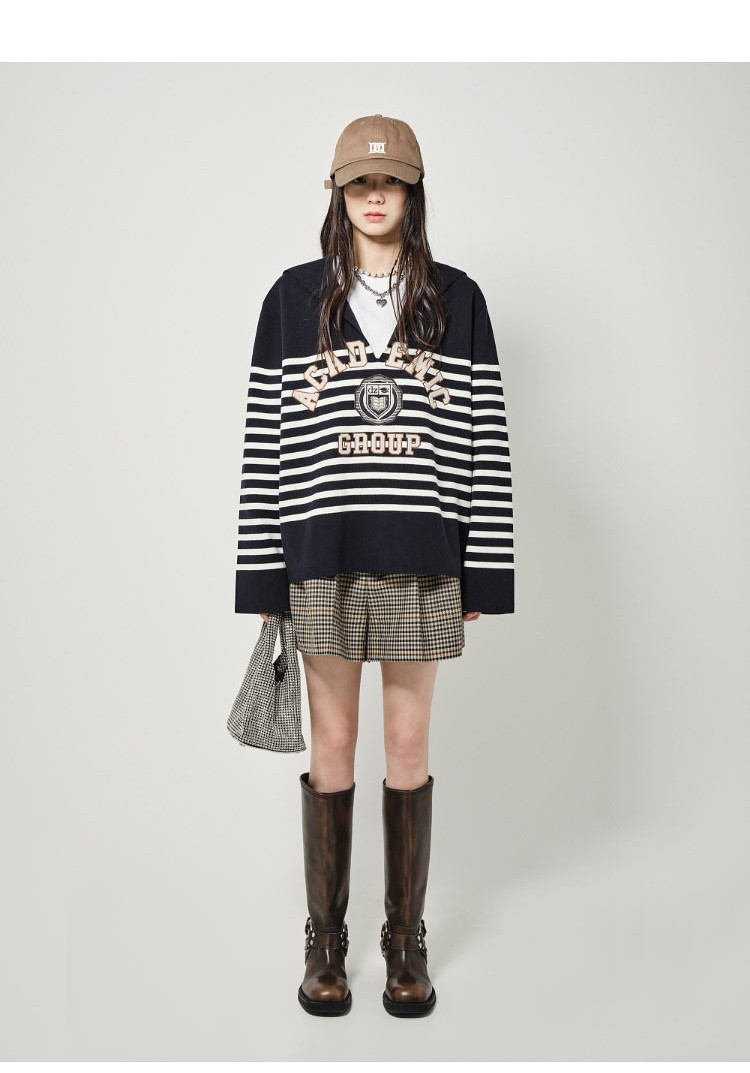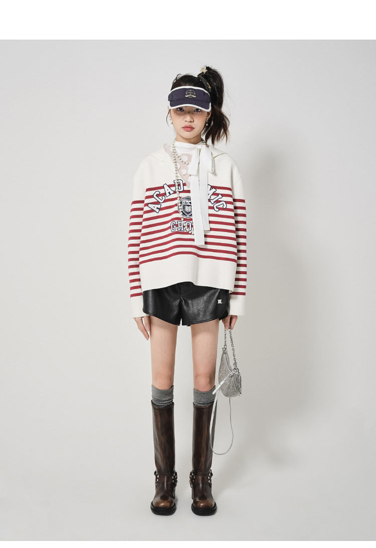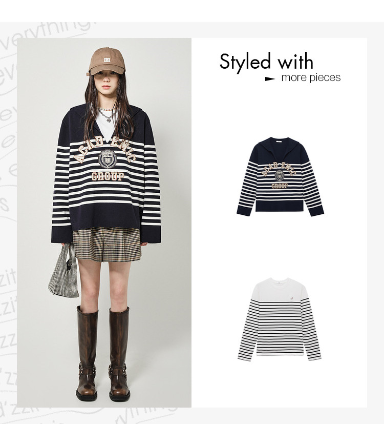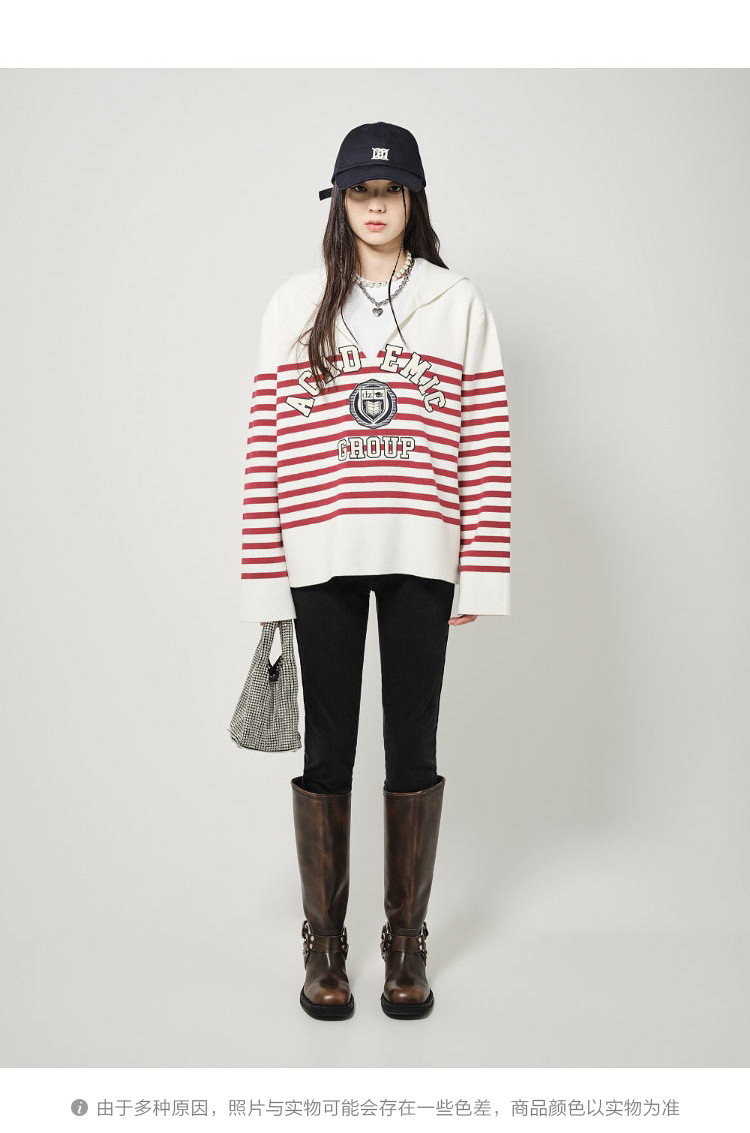 地素长袖针织衫春秋专柜院风海军领宽松毛衫上衣女 027467