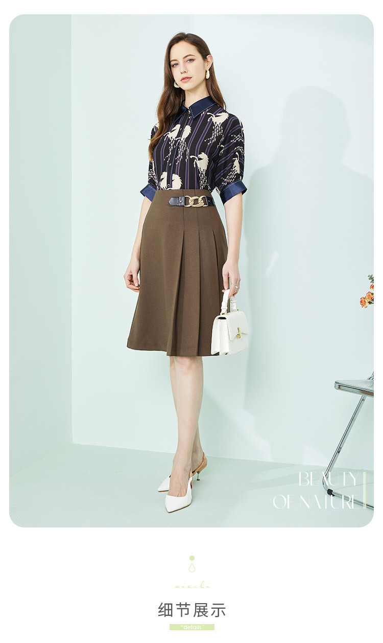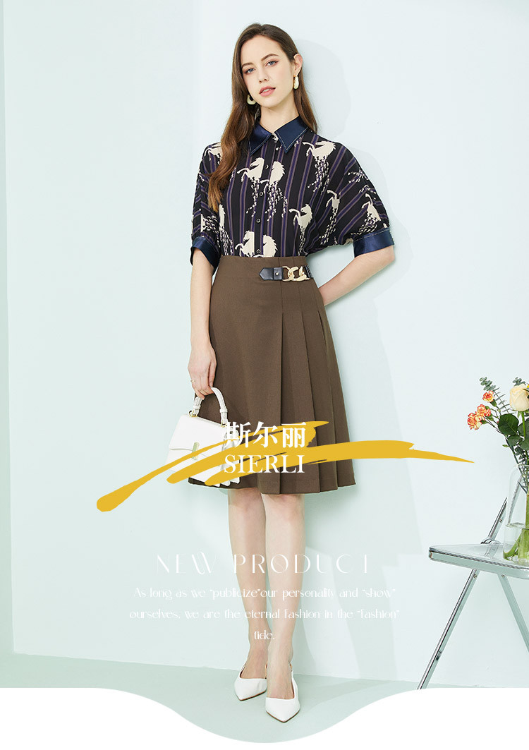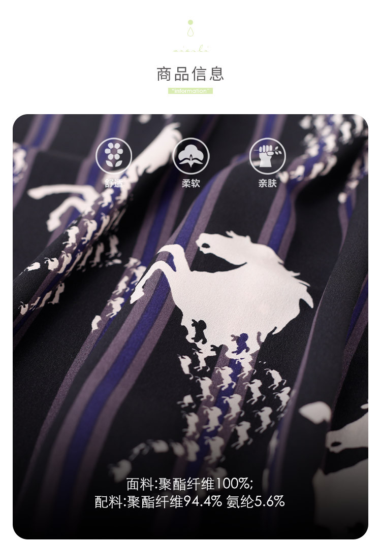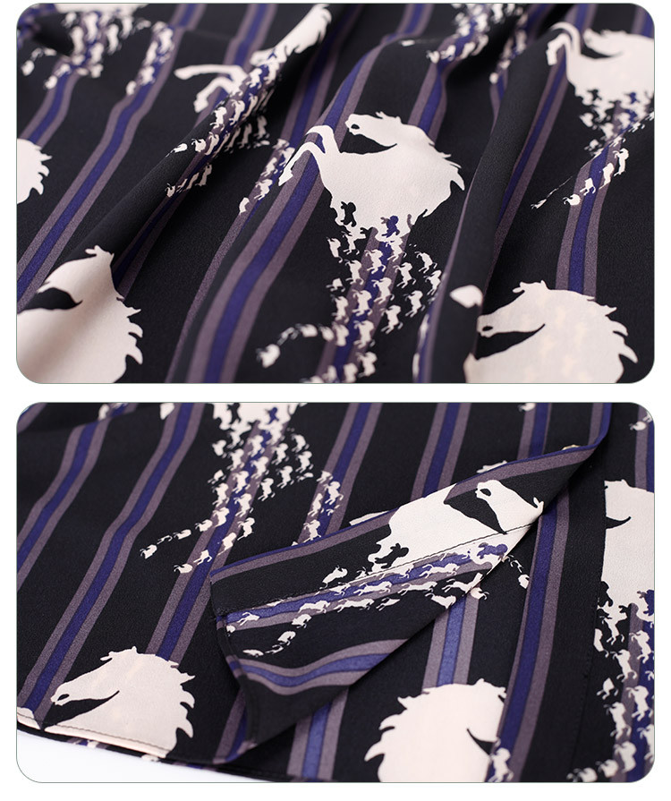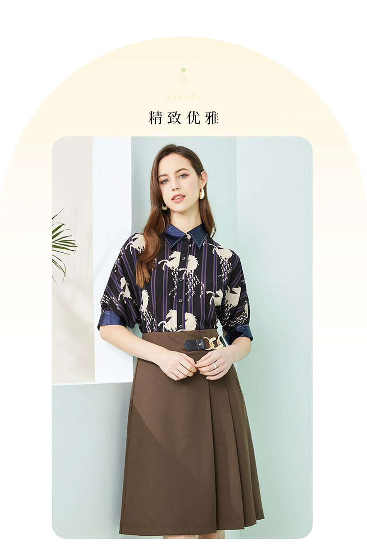 商品名称:商场同款秋季优雅飞马撞色印花气质翻领烫钻5分袖衬衣 213599