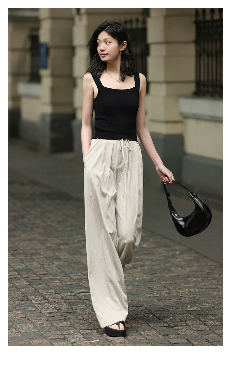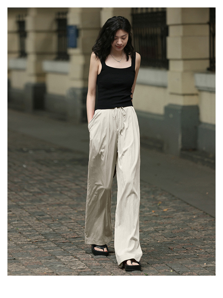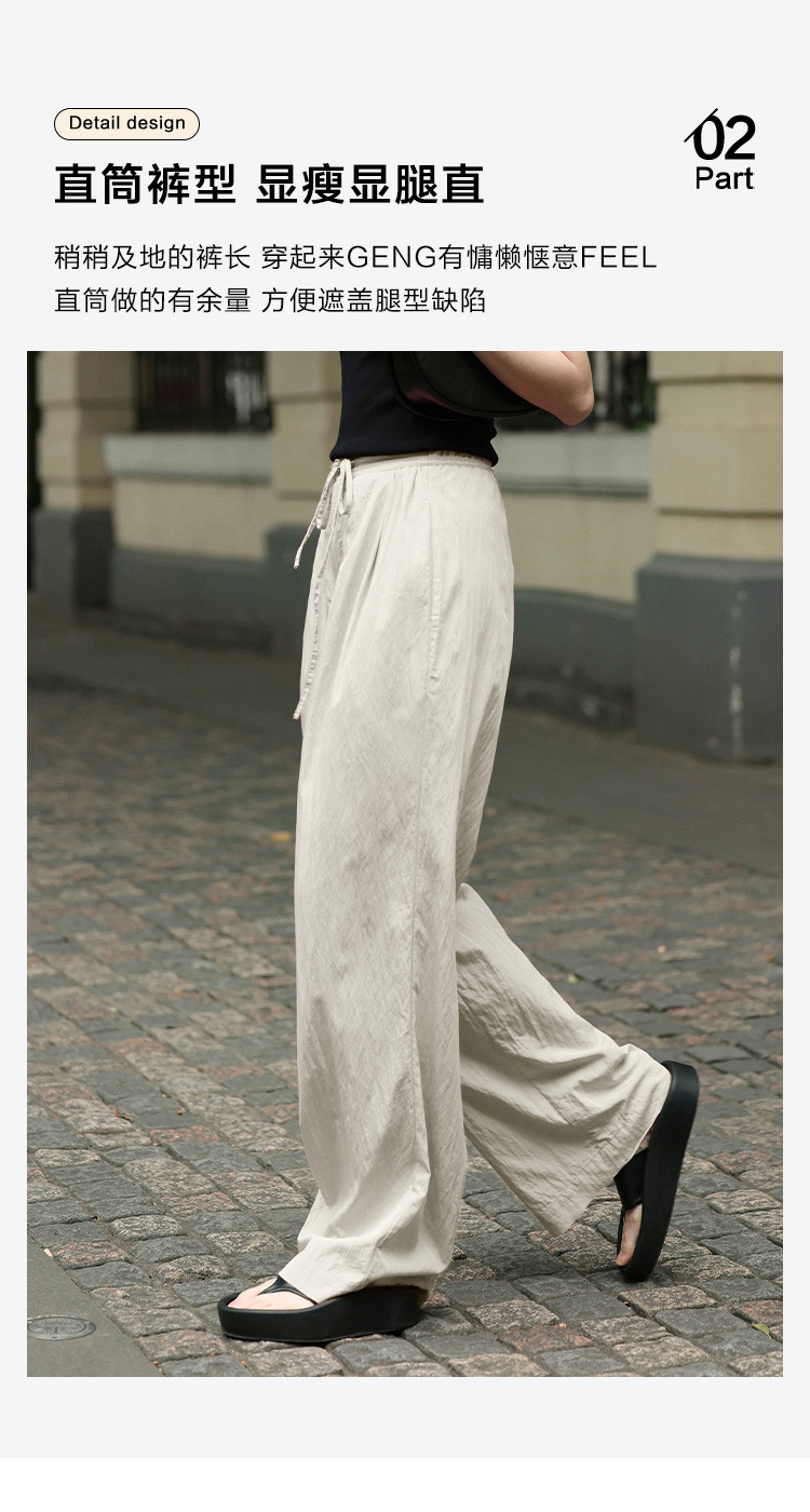 商品名称:【慵懒感山本裤】夏腰头装橡筋加腰绳装饰直筒休闲长裤女 169474