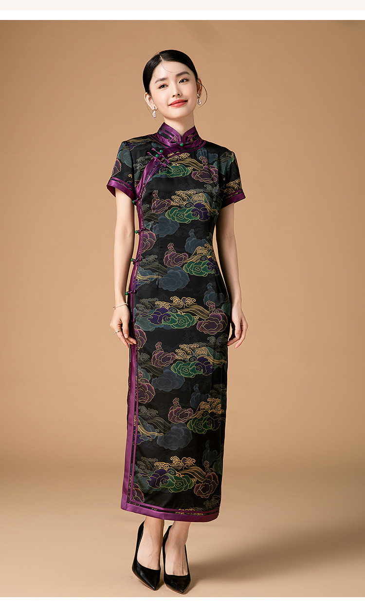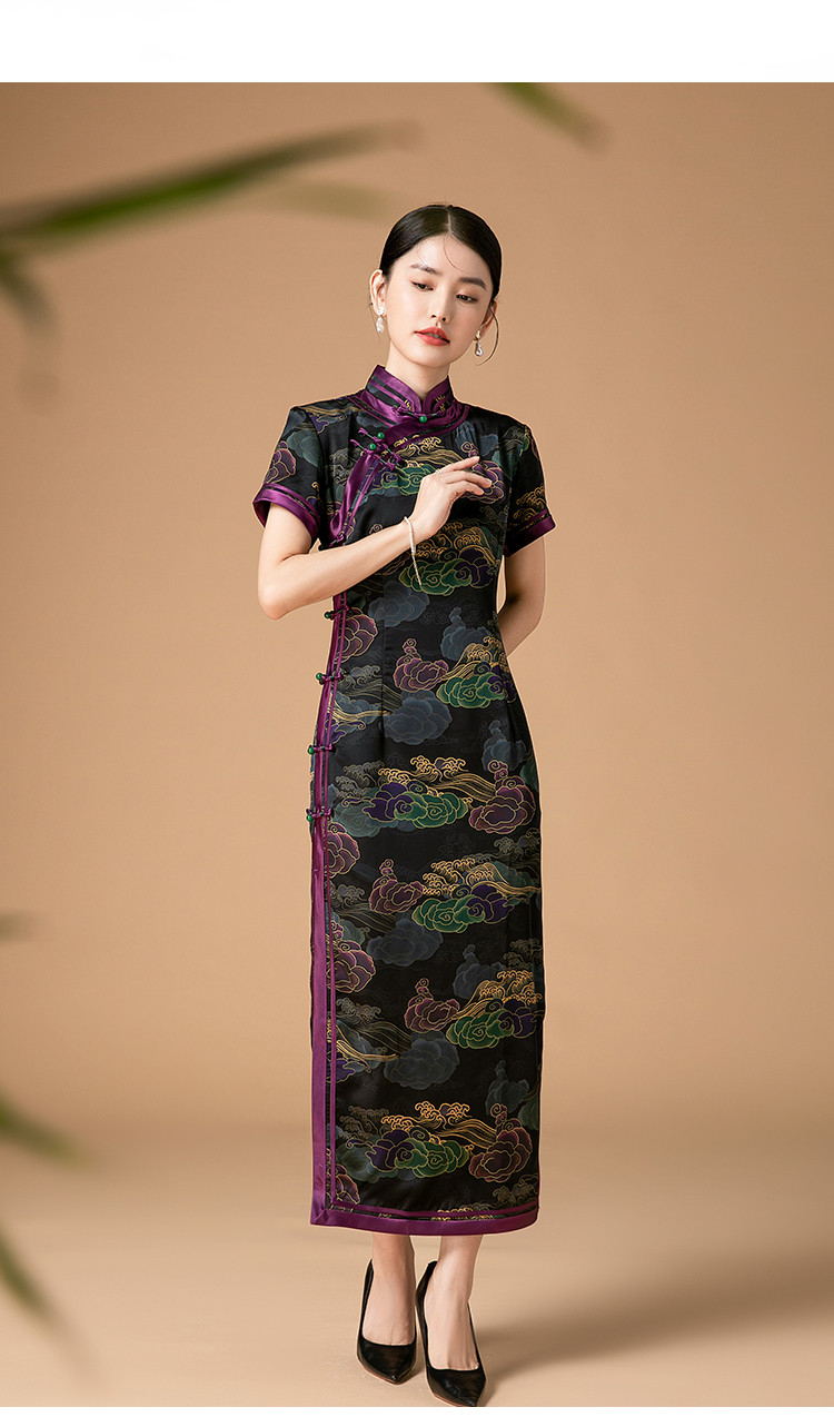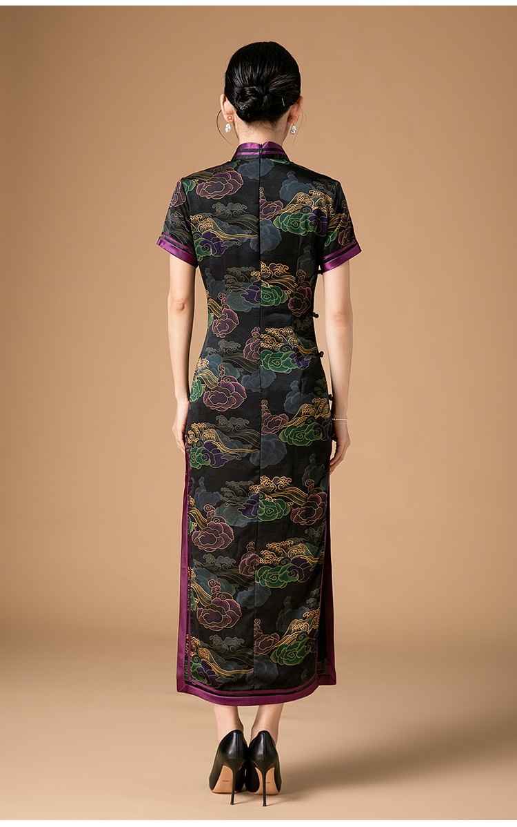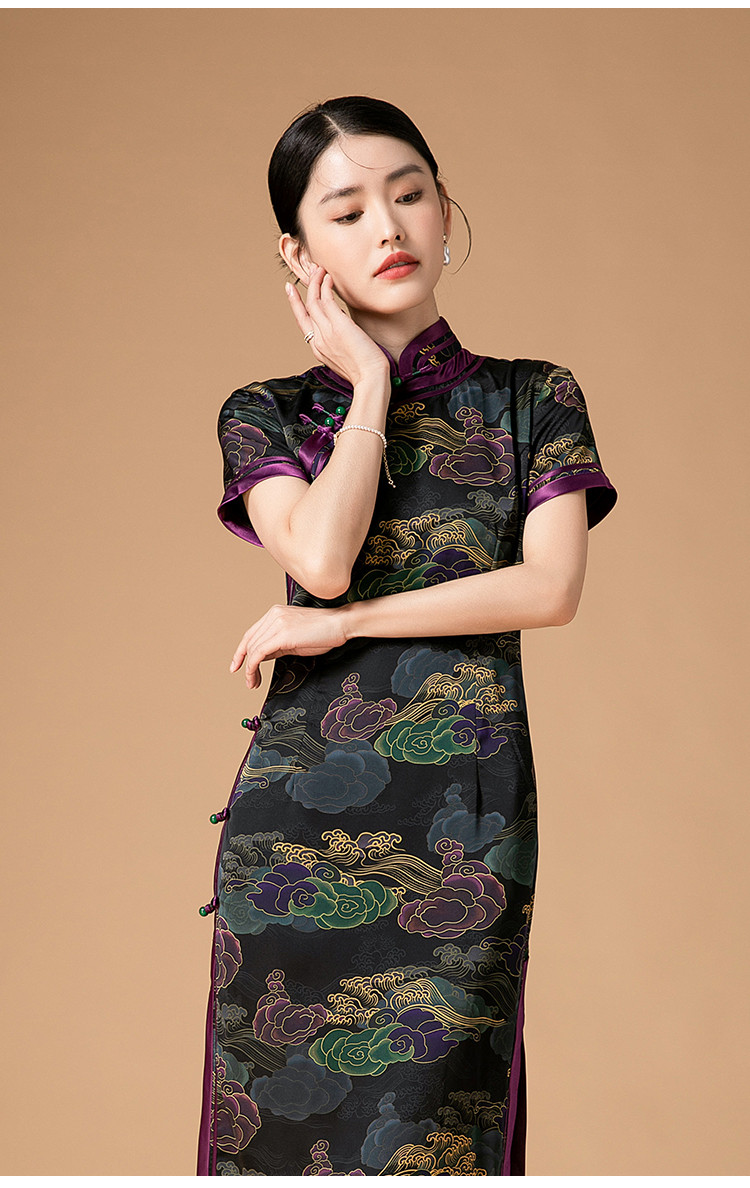 复古日常改良旗袍祥云气质优雅立领中长连衣裙女 186655